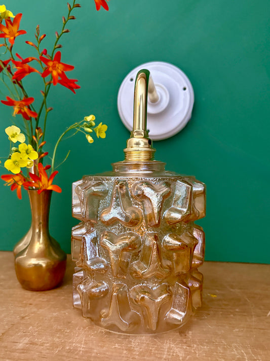Applique coudée abat-jour vintage en verre de clichy jaune