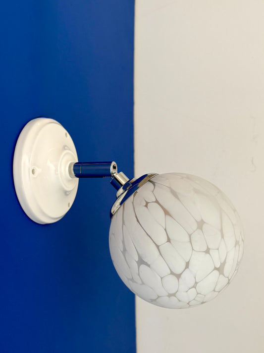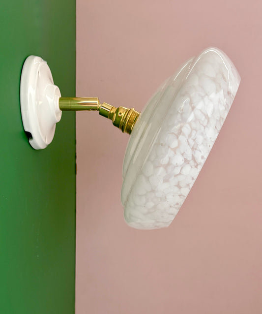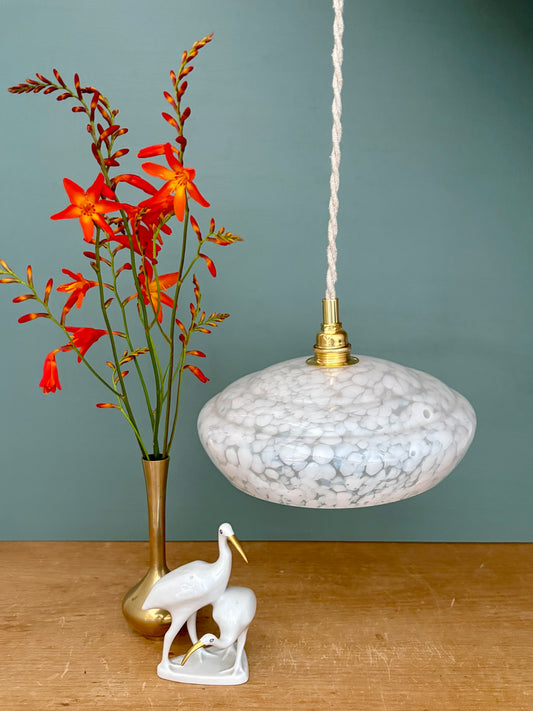 Suspension abat-jour vintage en verre dépoli blanc et doré