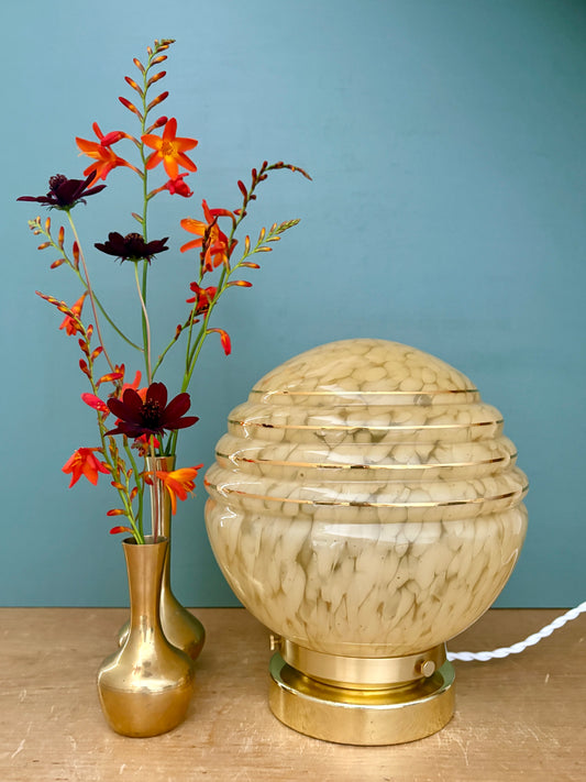 Lampe à poser globe vintage art déco en verre de Clichy jaune et or