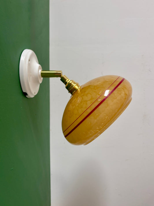 Applique abat-jour vintage en verre de clichy jaune avec liserés rouges