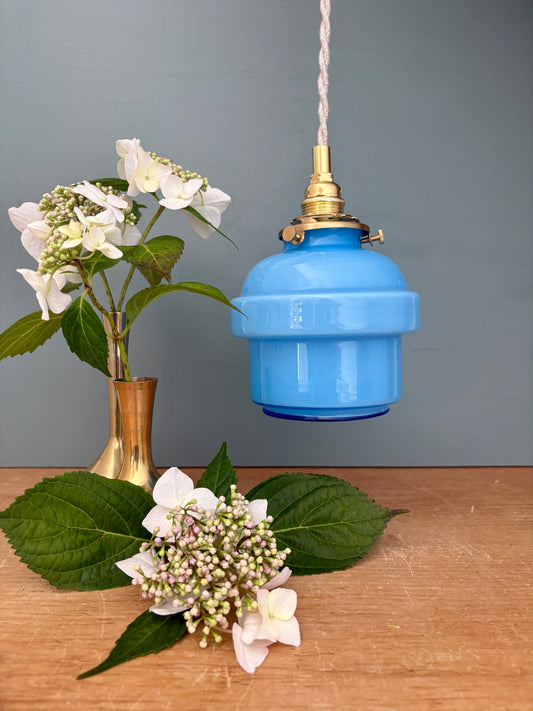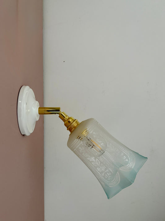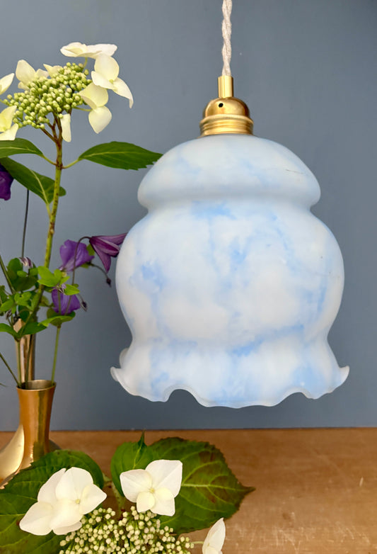 Applique tulipe vintage en verre dépoli blanc et bleu