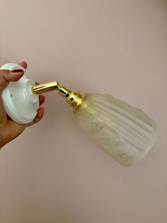 Applique tulipe vintage art déco en verre dépoli, décors de roses