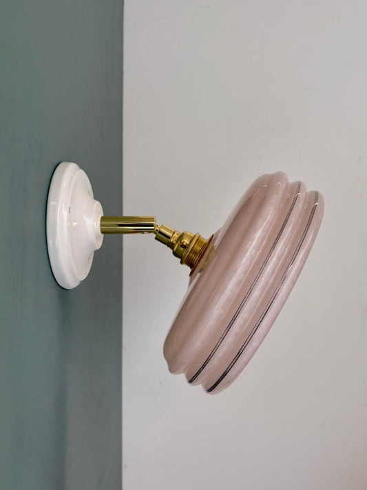 Applique abat-jour vintage en verre de Clichy rose liserés argents