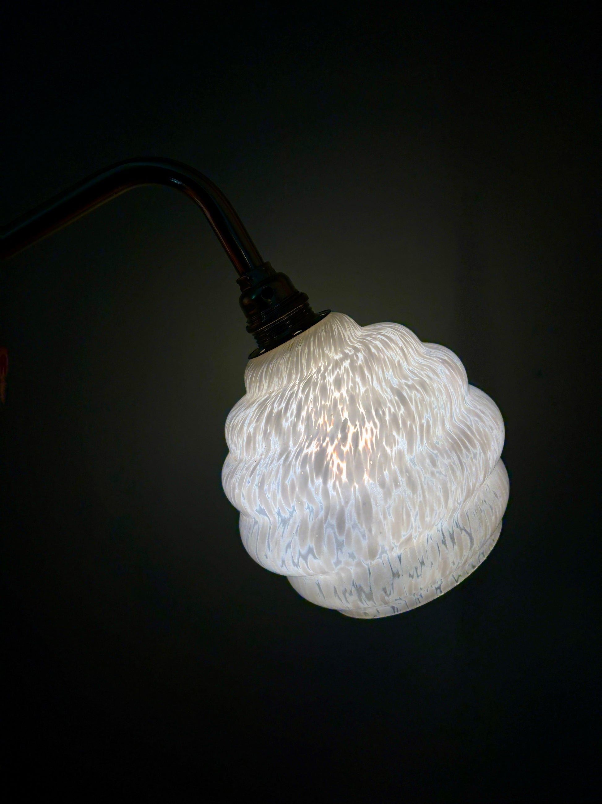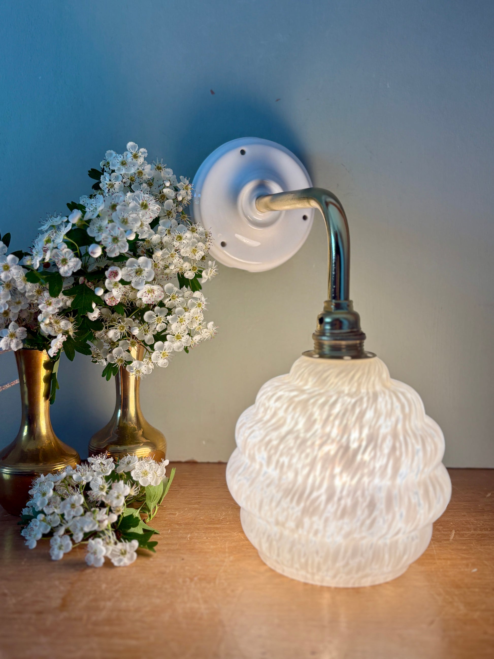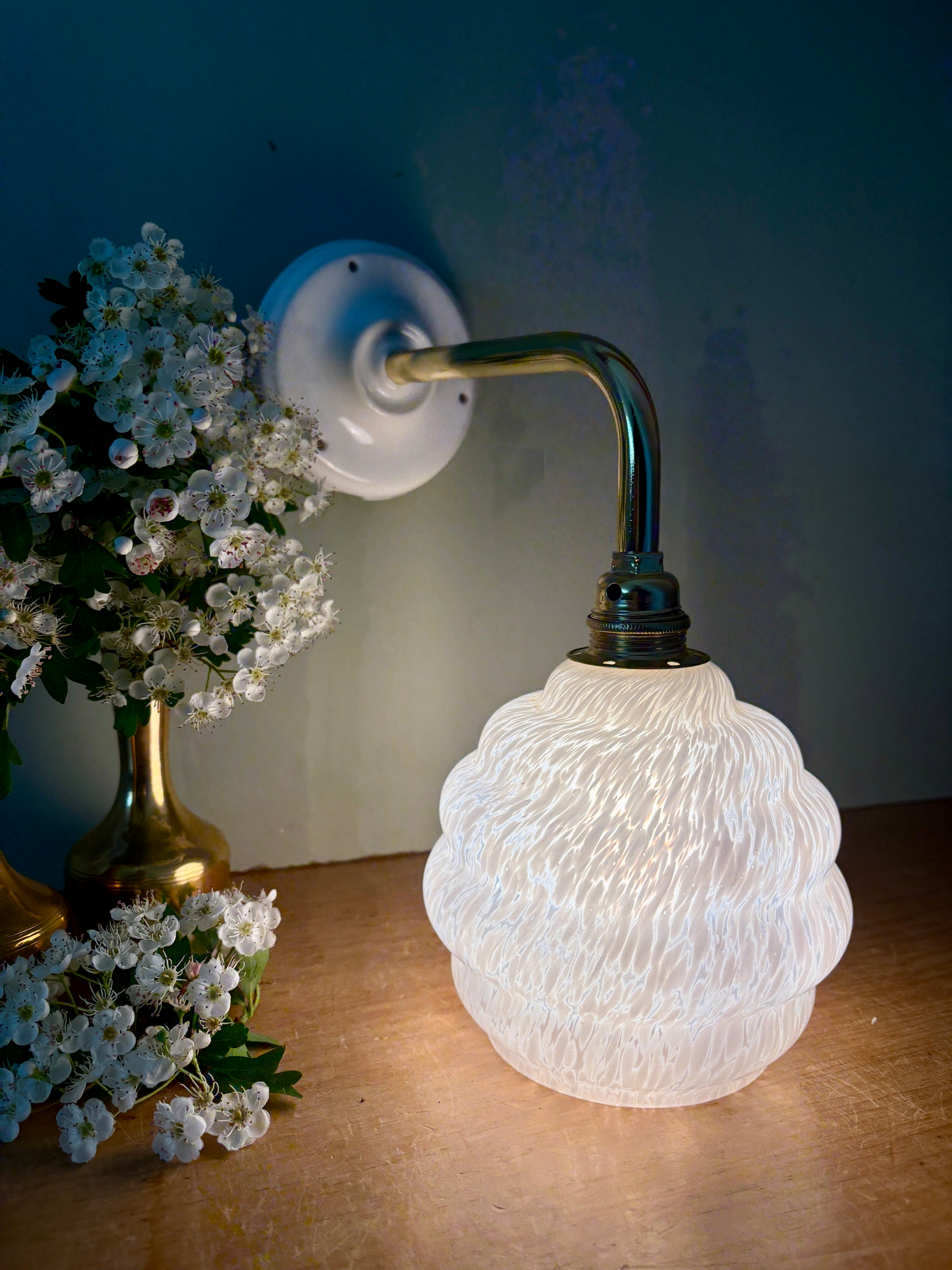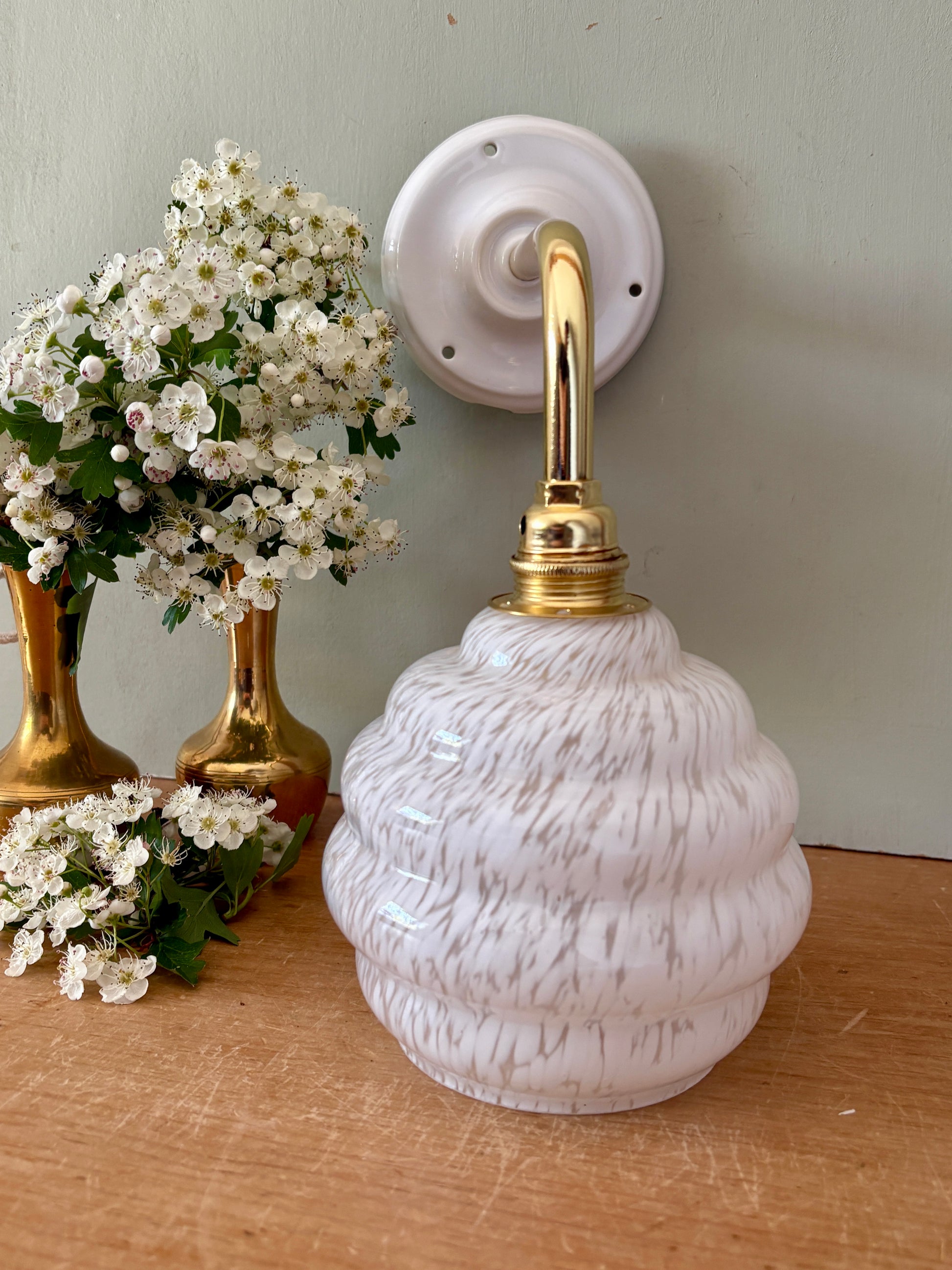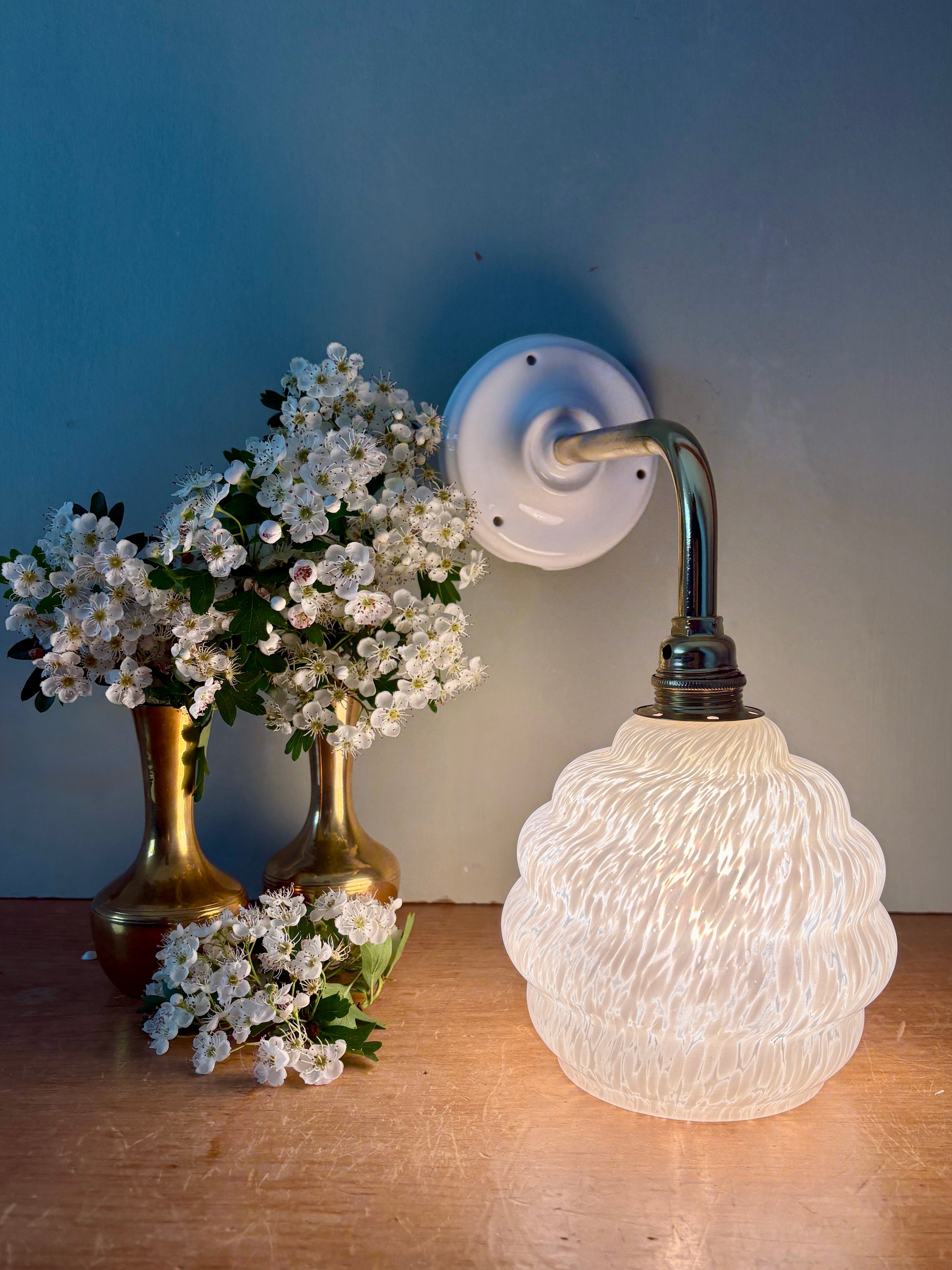 Jolie applique composée d'un socle neuf et d'un globe vintage en verre de Clichy blanc.