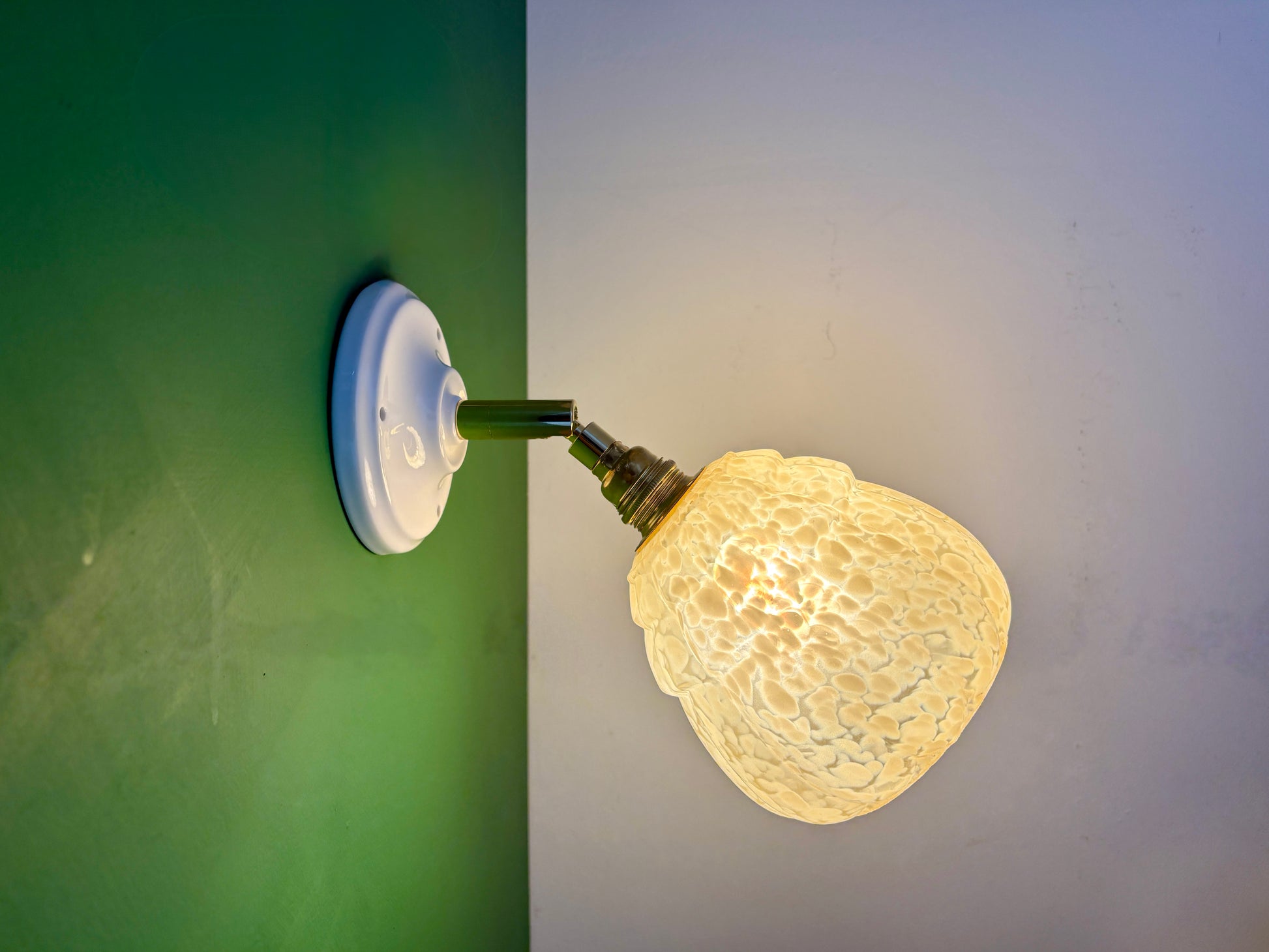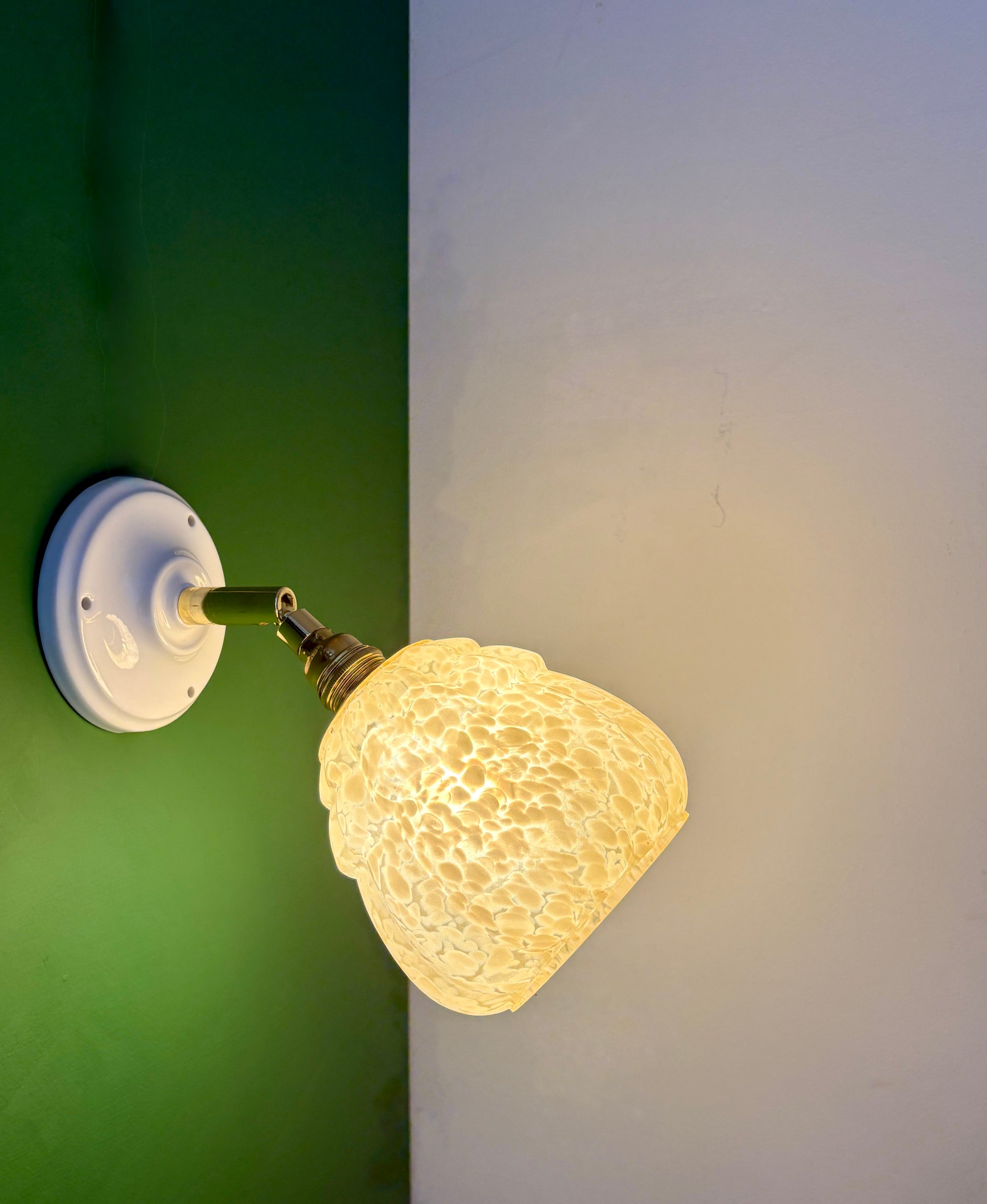 Belle applique avec globe vintage en verre de Clichy jaune pâle