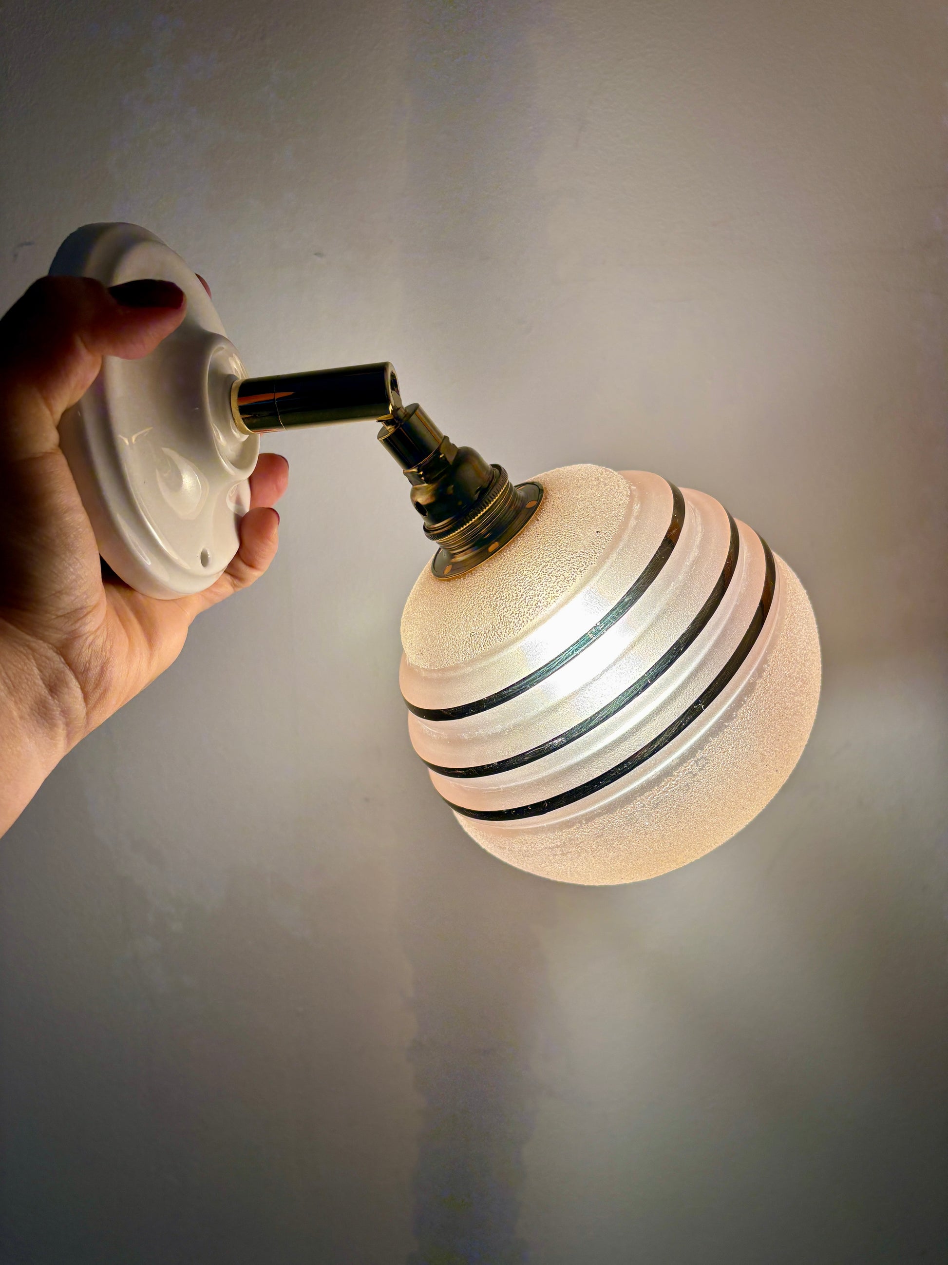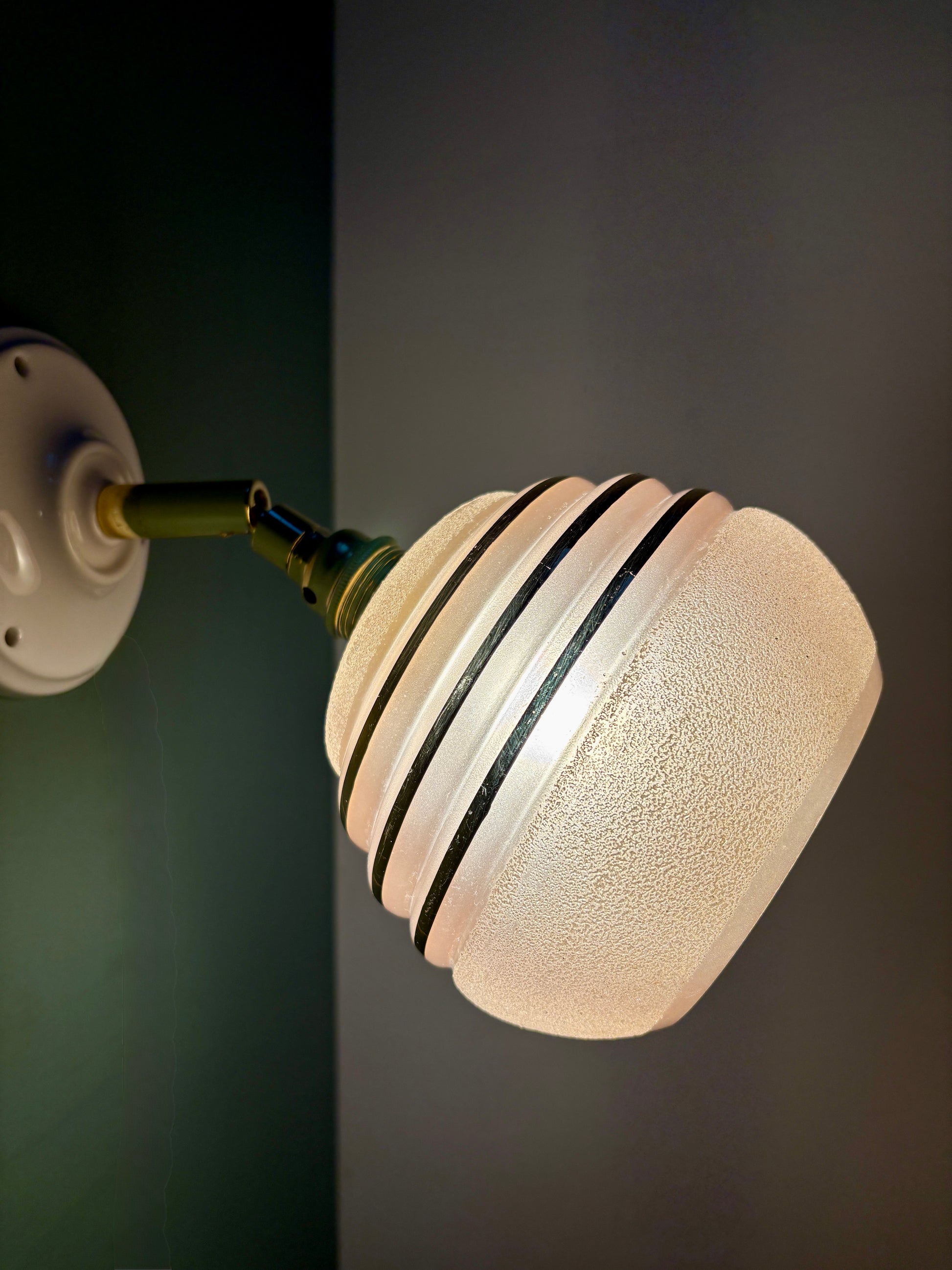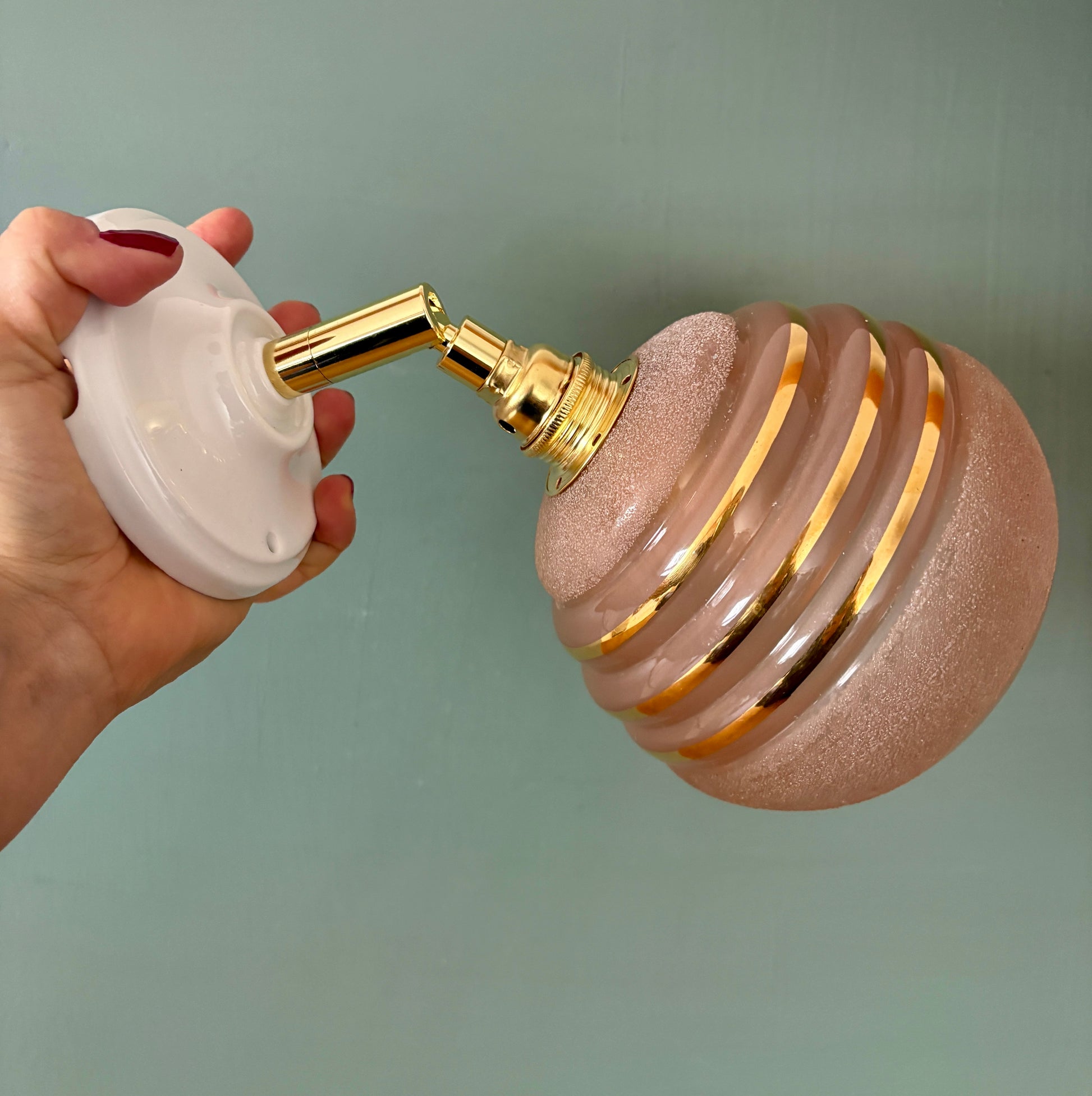Applique globe vintage en verre granité rose et doré