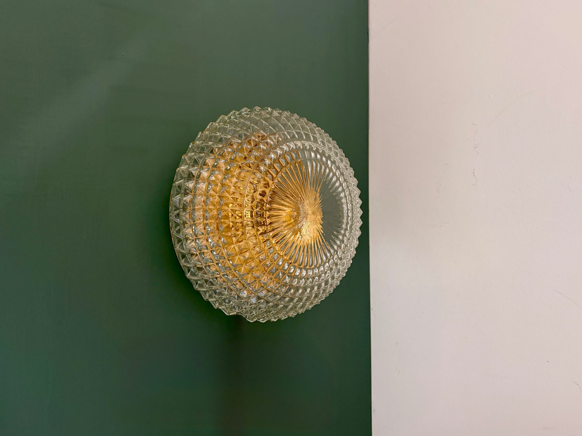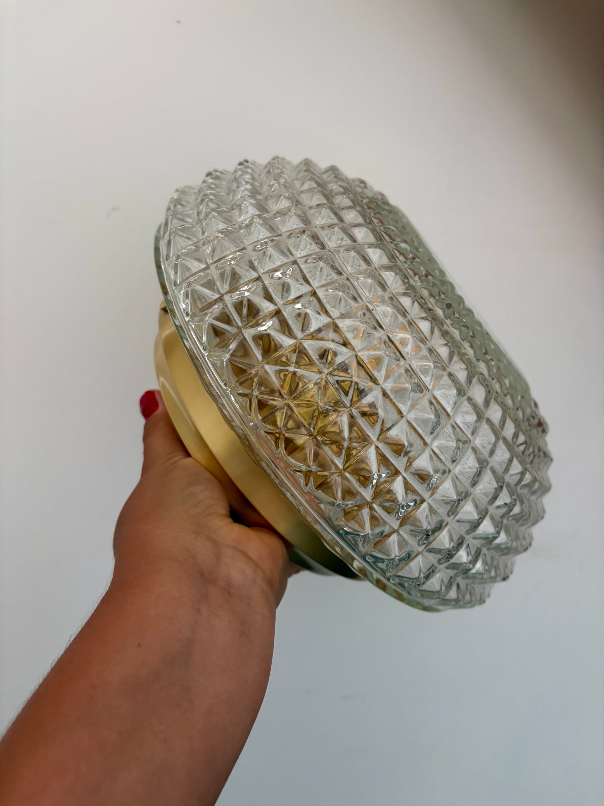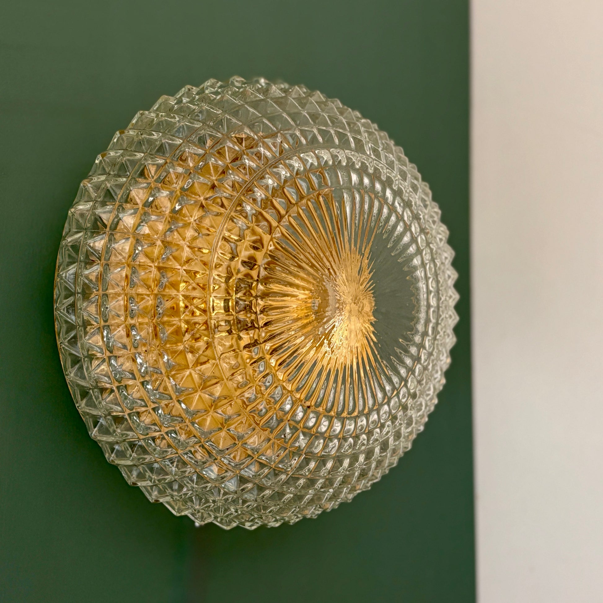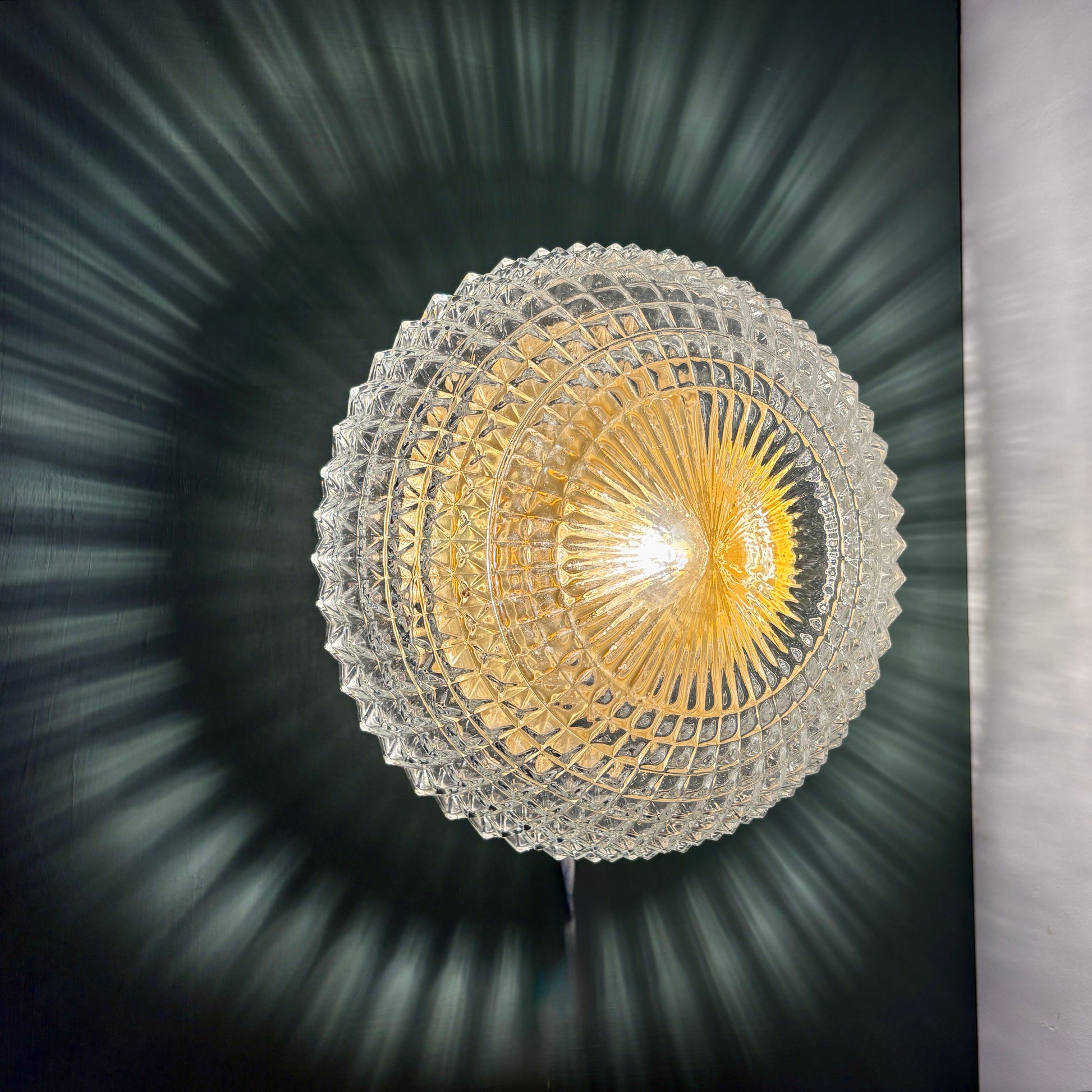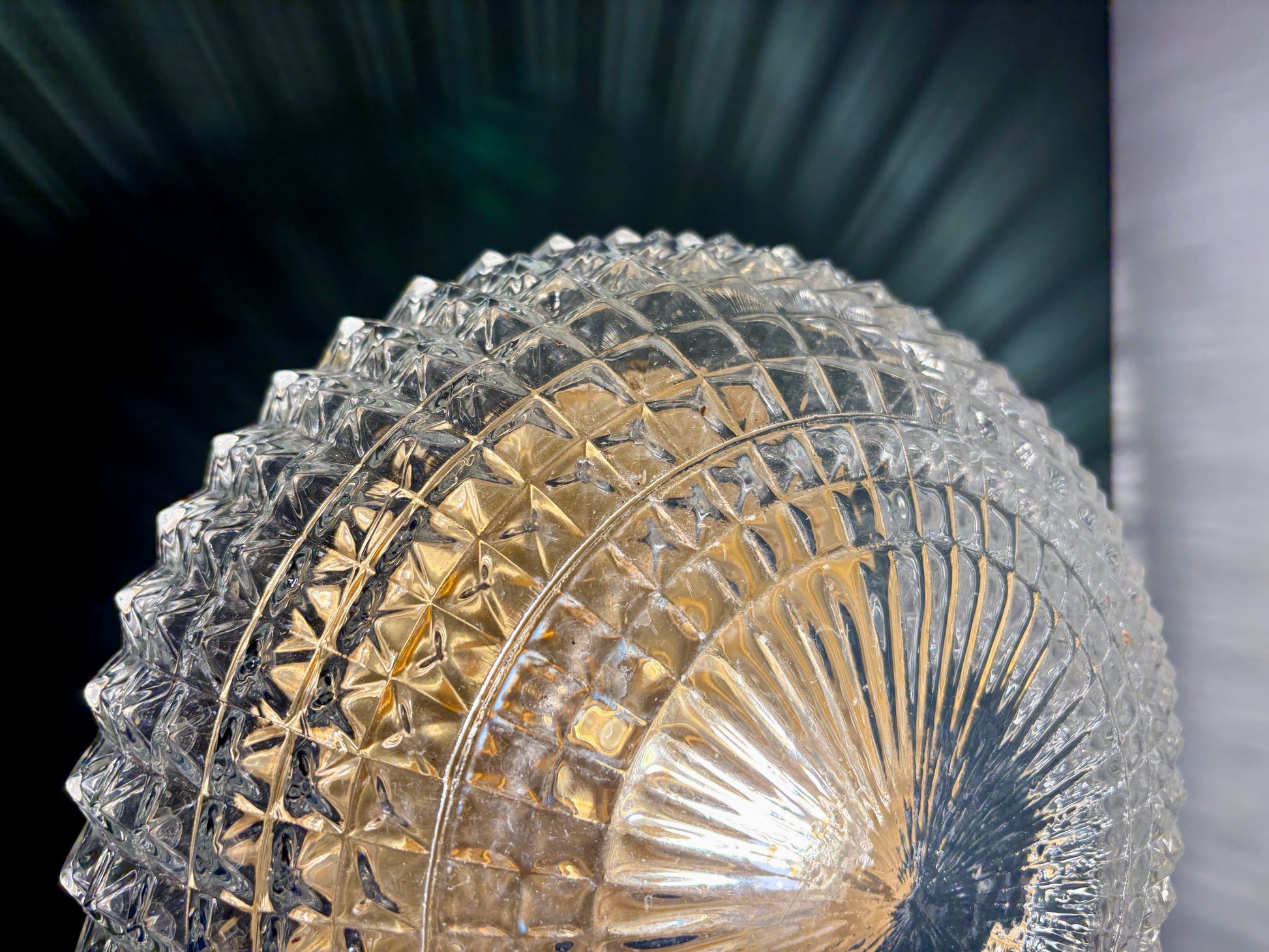 Applique ou plafonnier globe vintage en verre moulé pointe de diamant