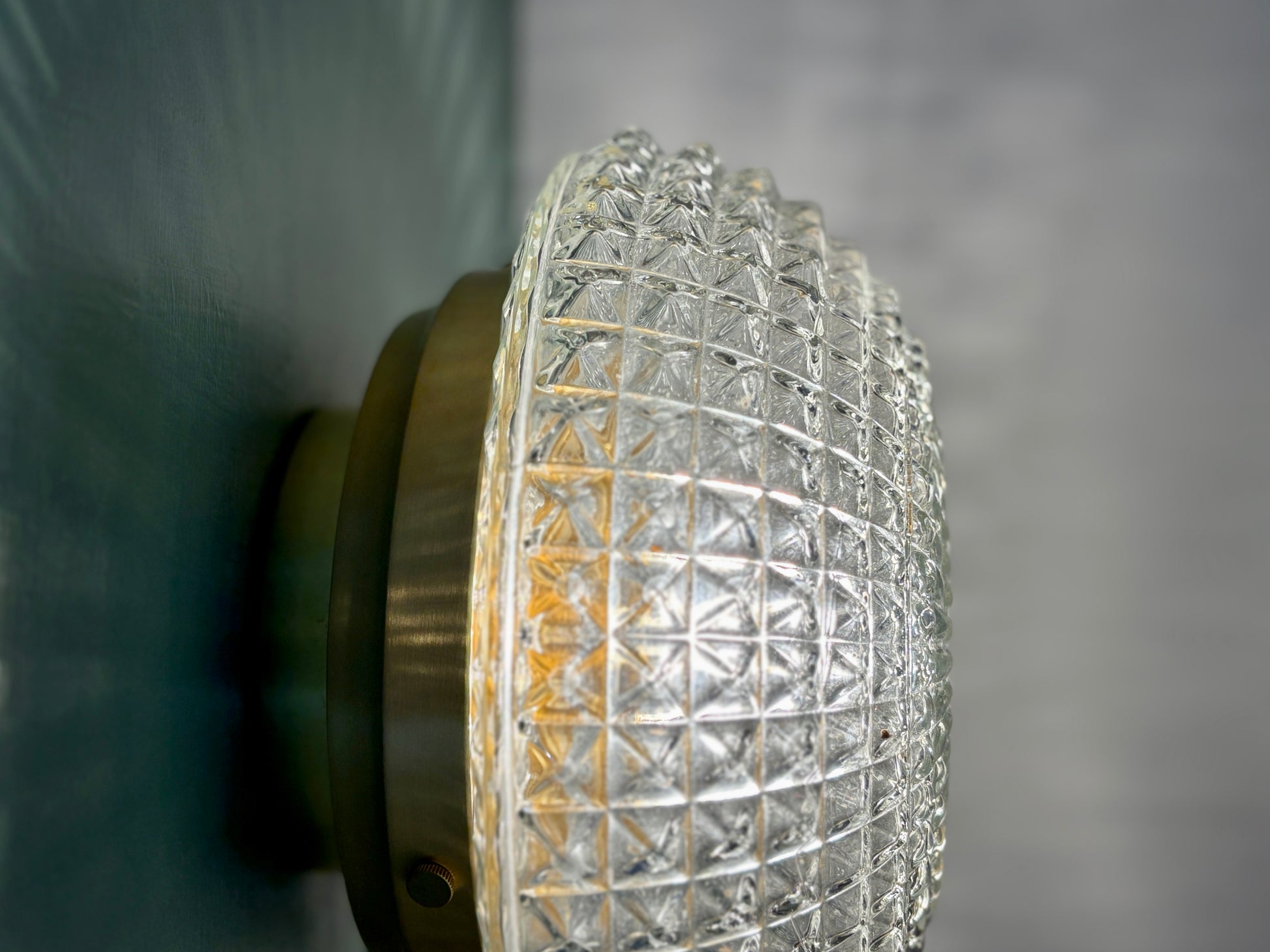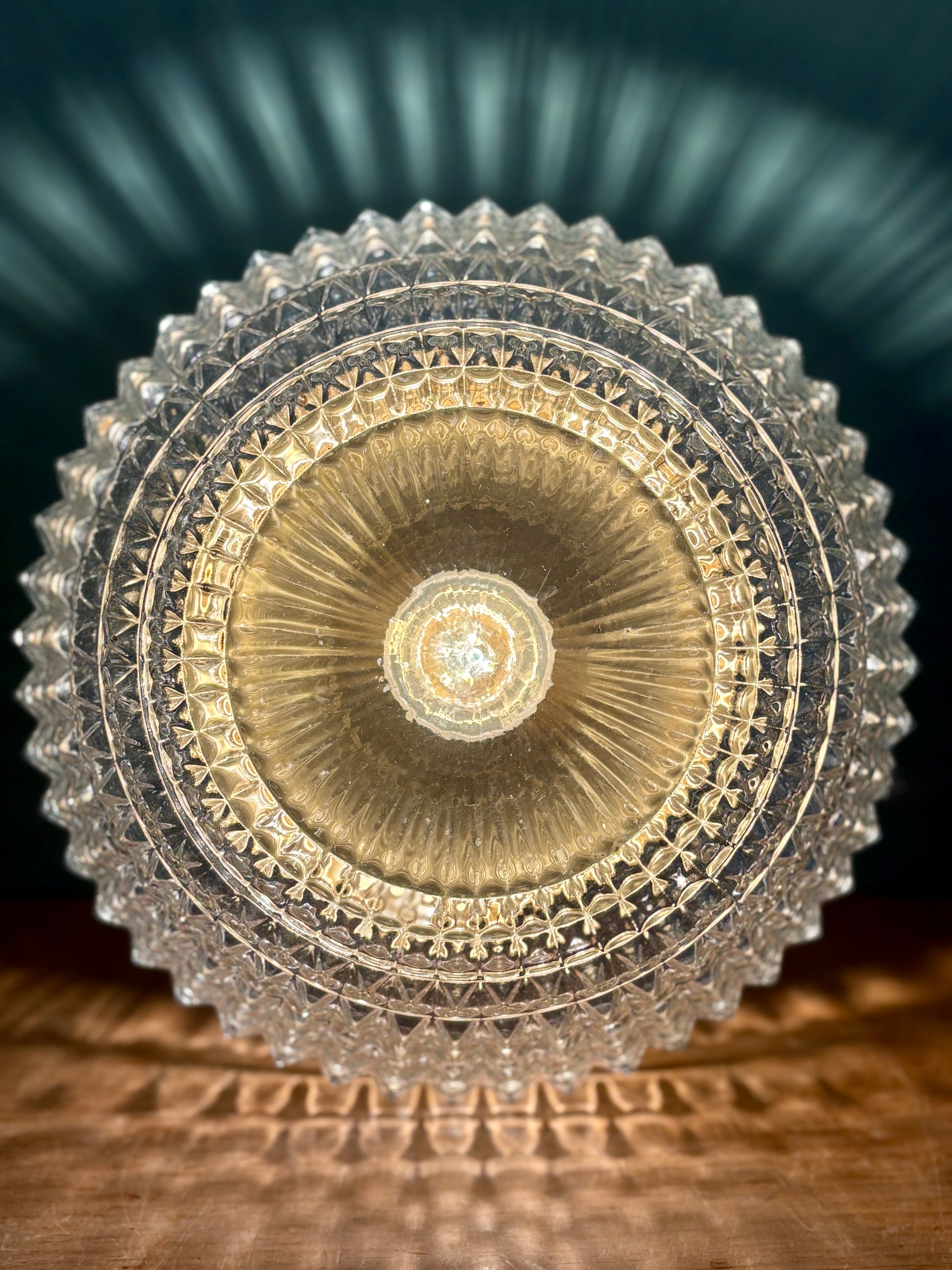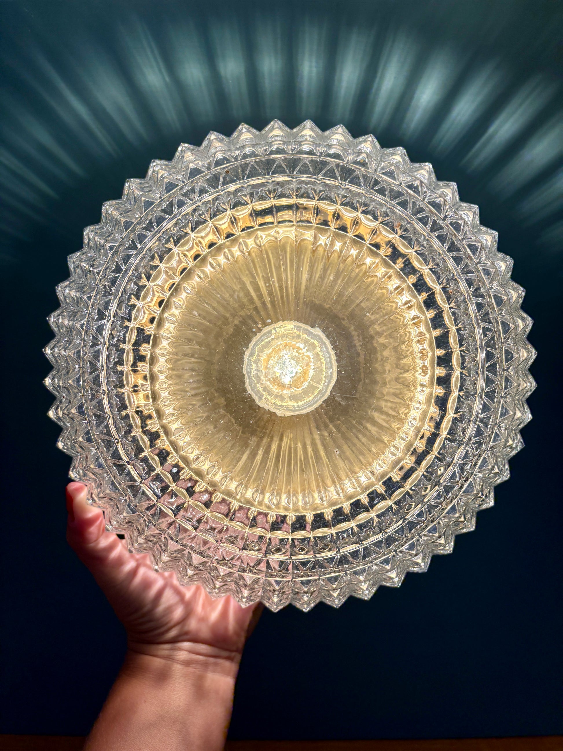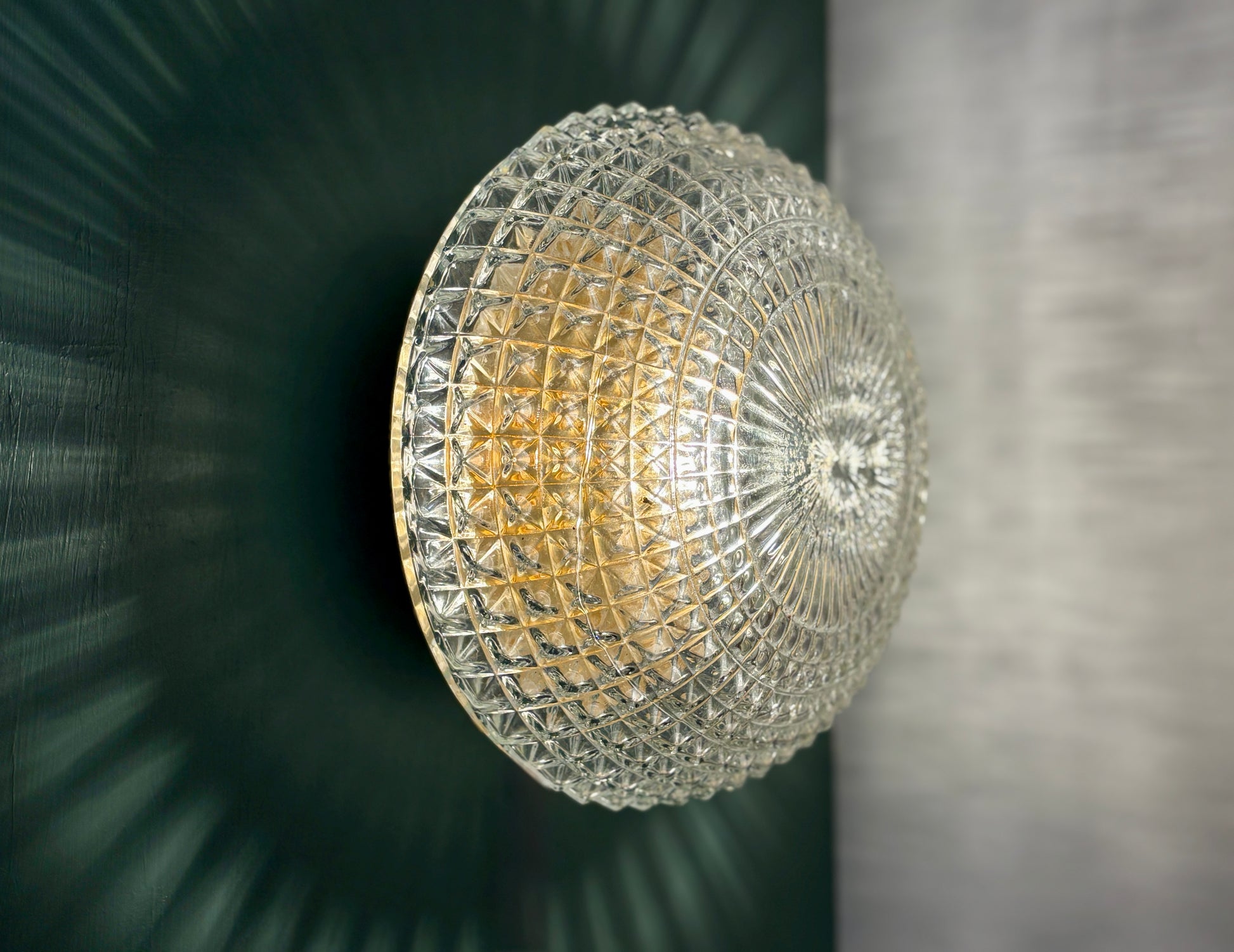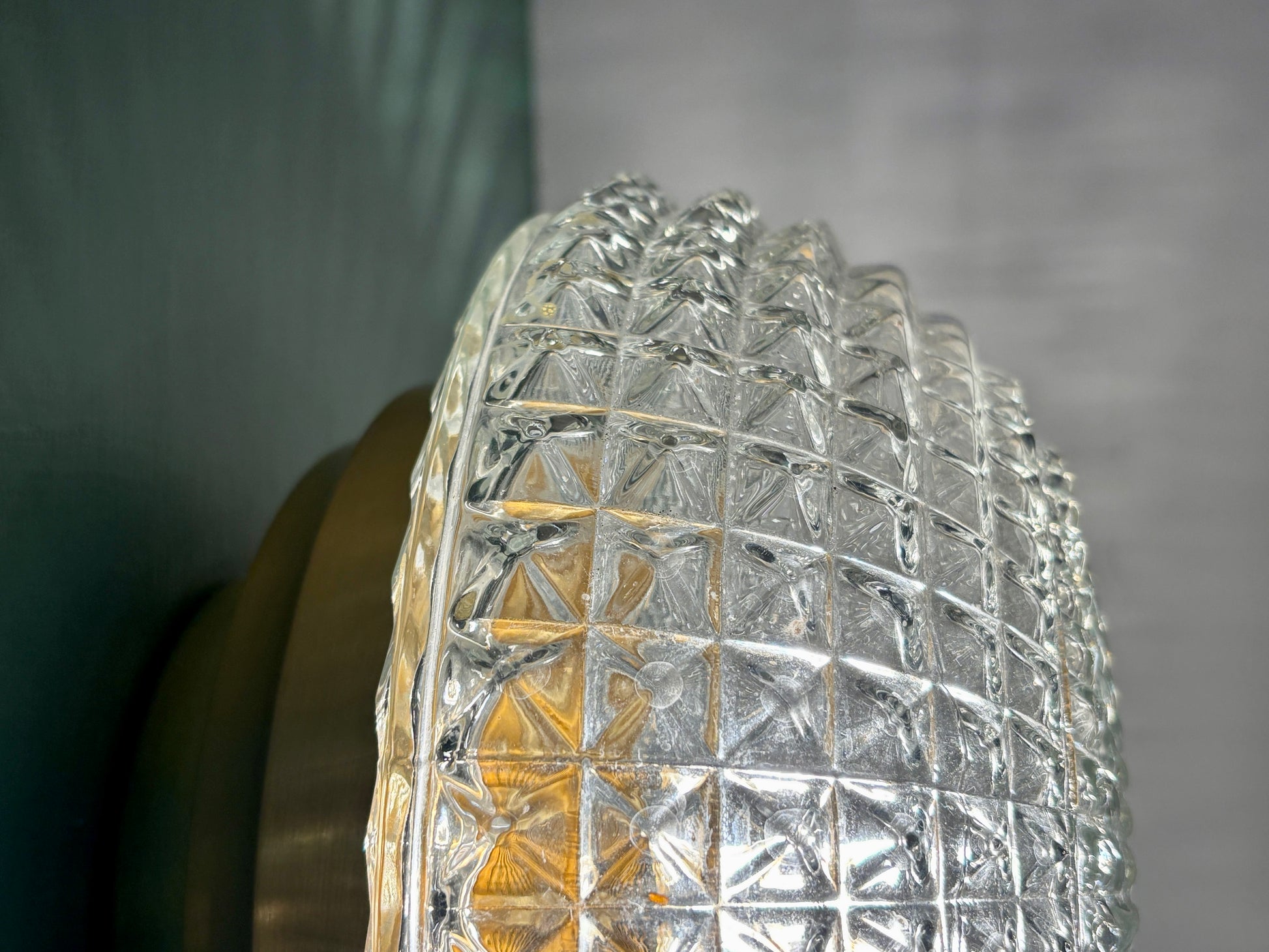 Applique ou plafonnier globe vintage en verre moulé pointe de diamant