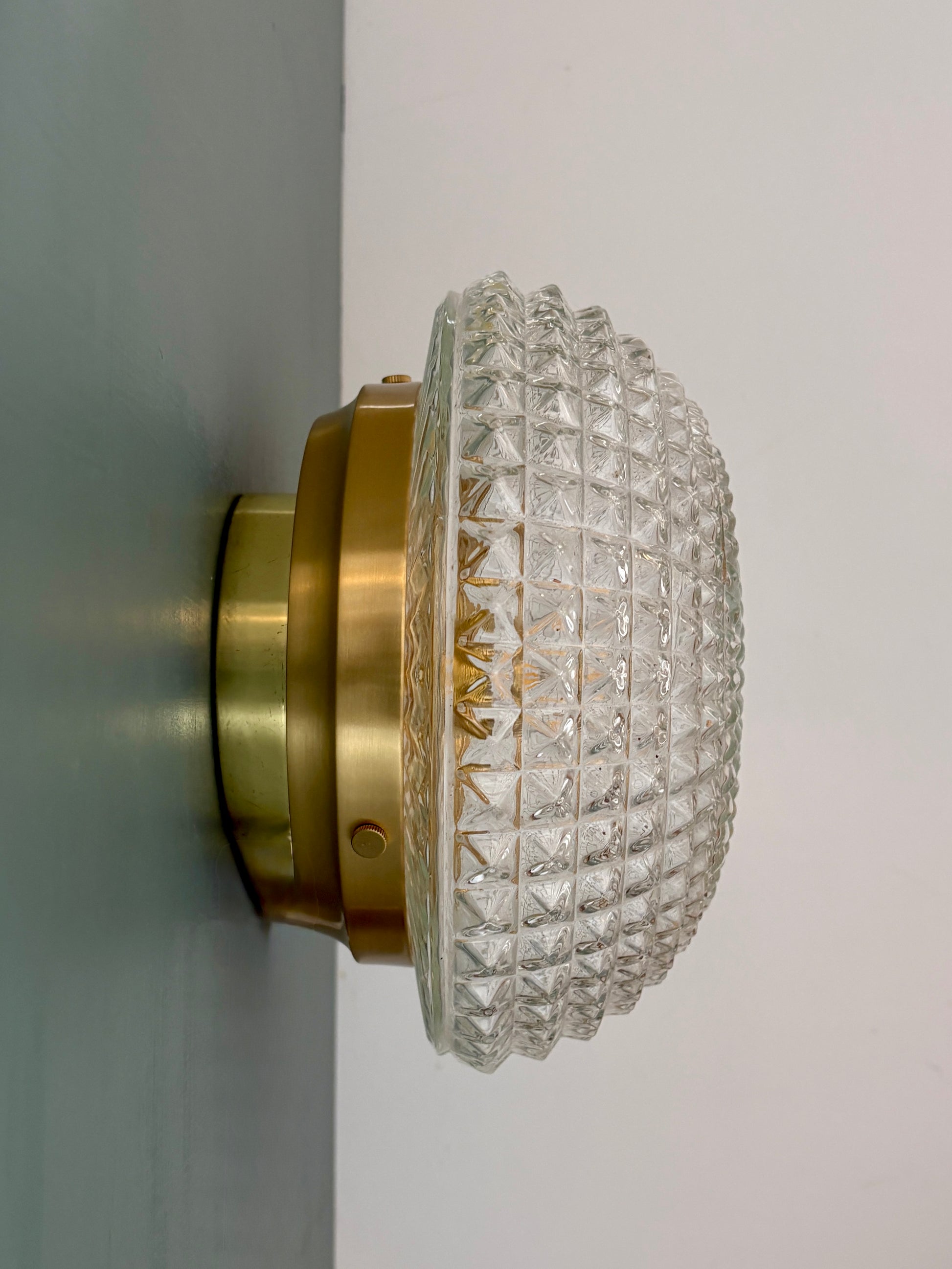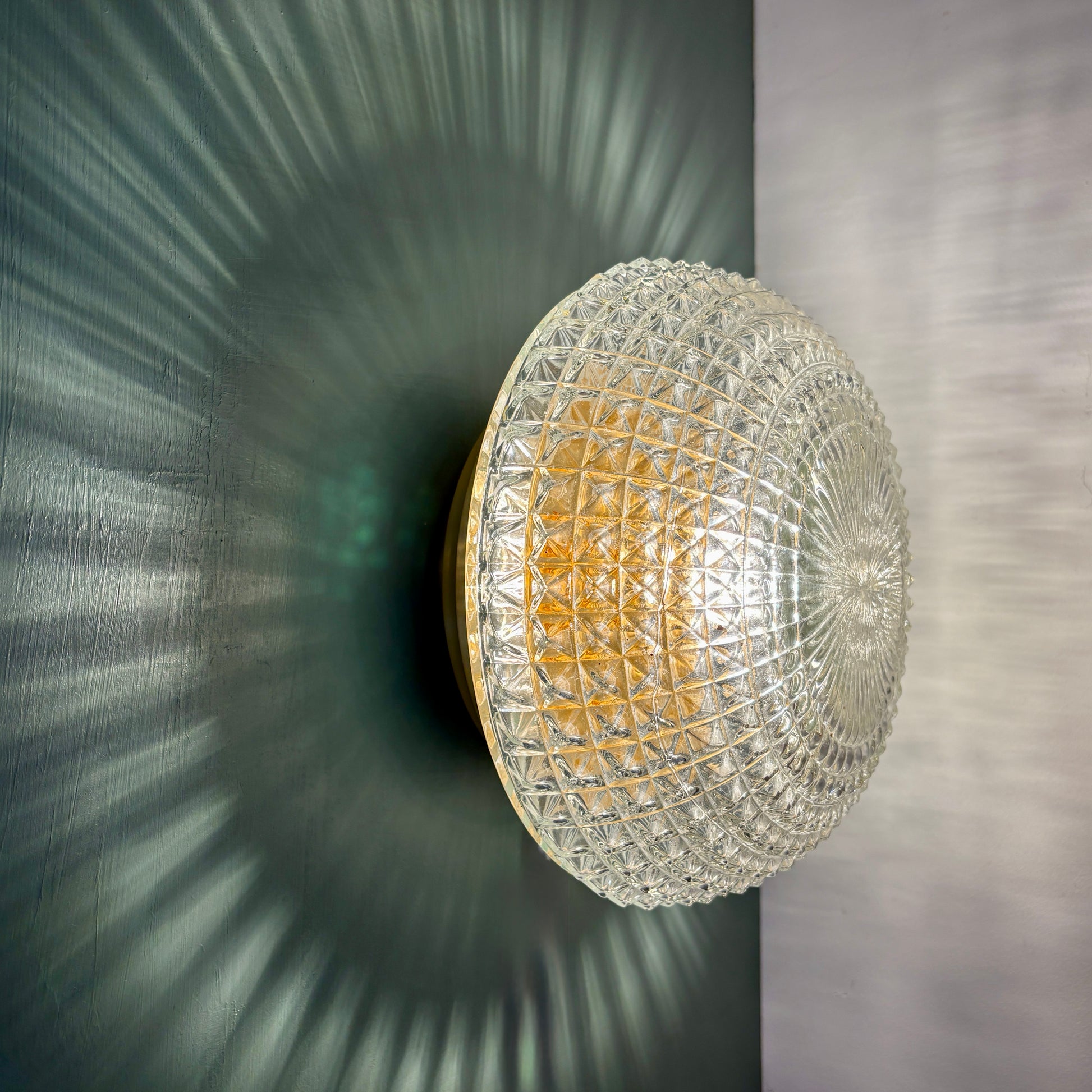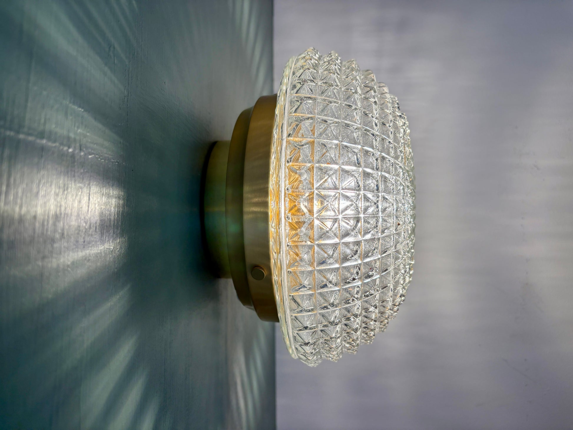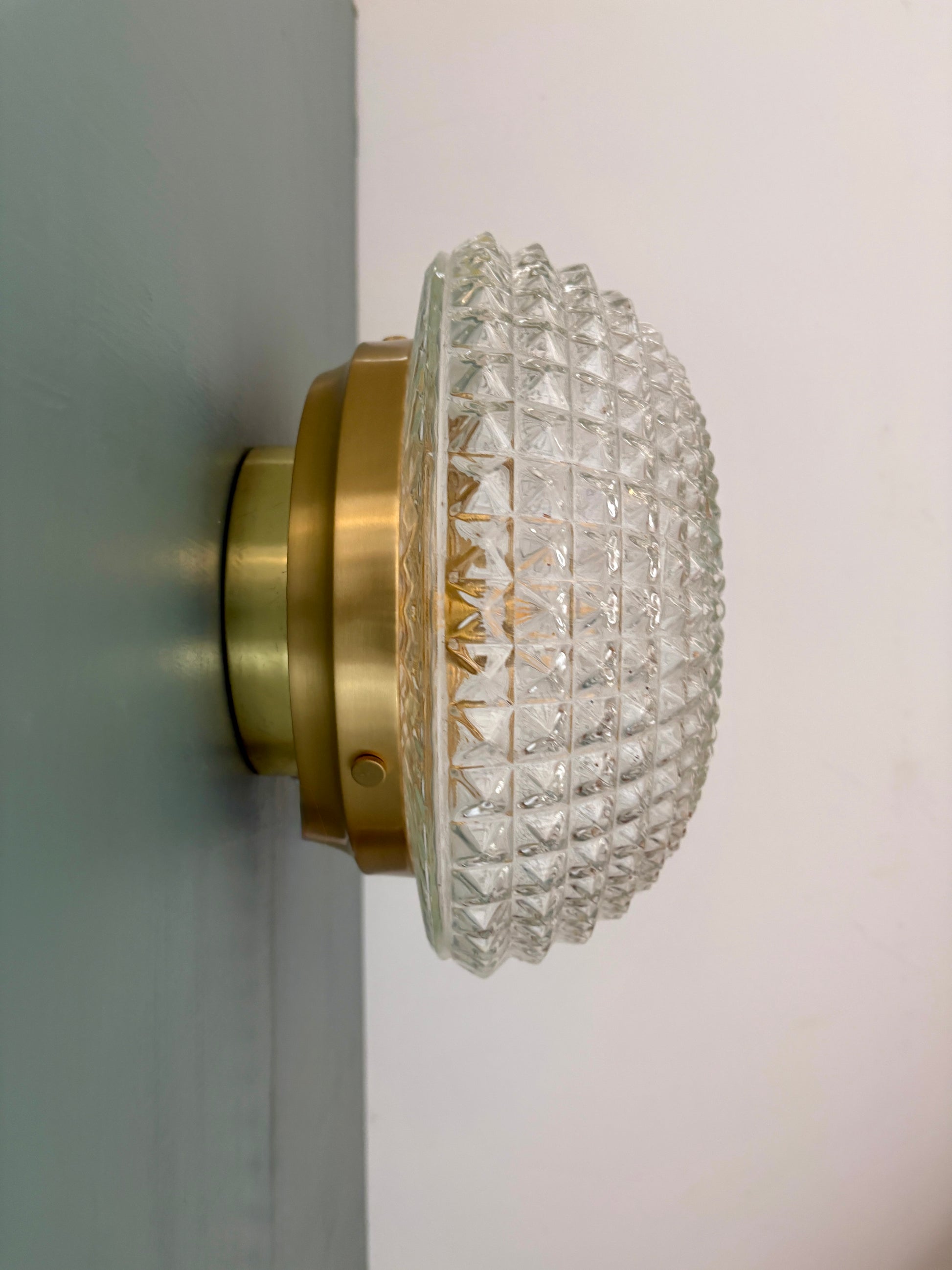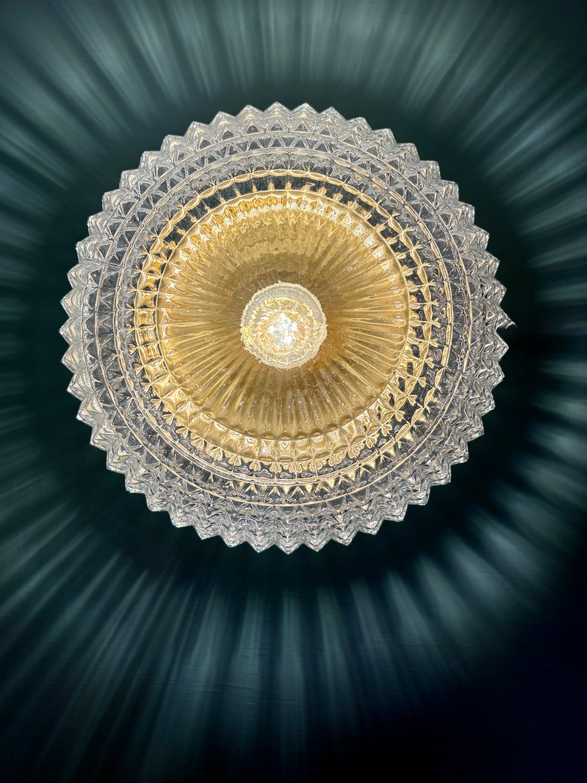 Applique ou plafonnier globe vintage en verre moulé pointe de diamant