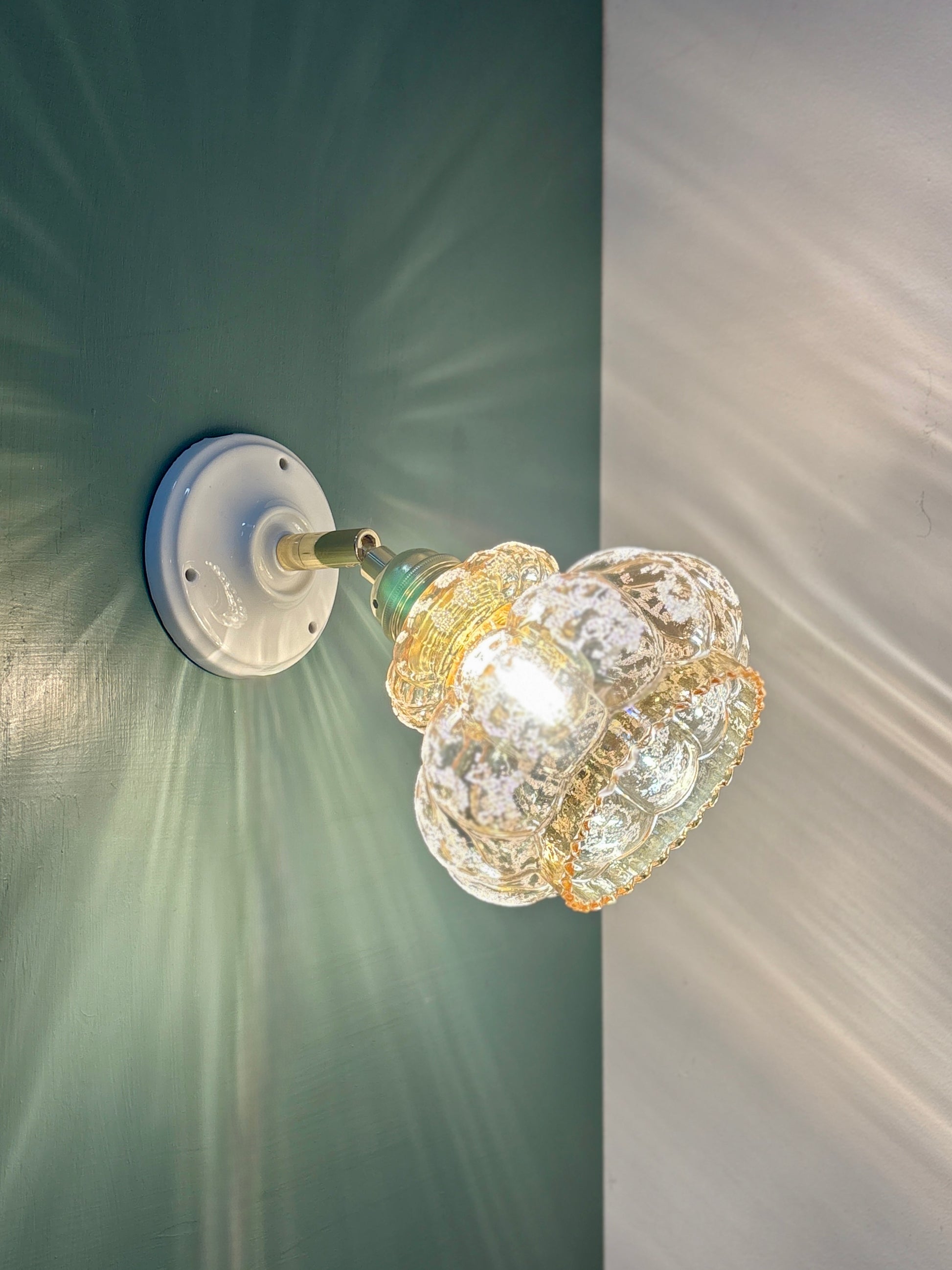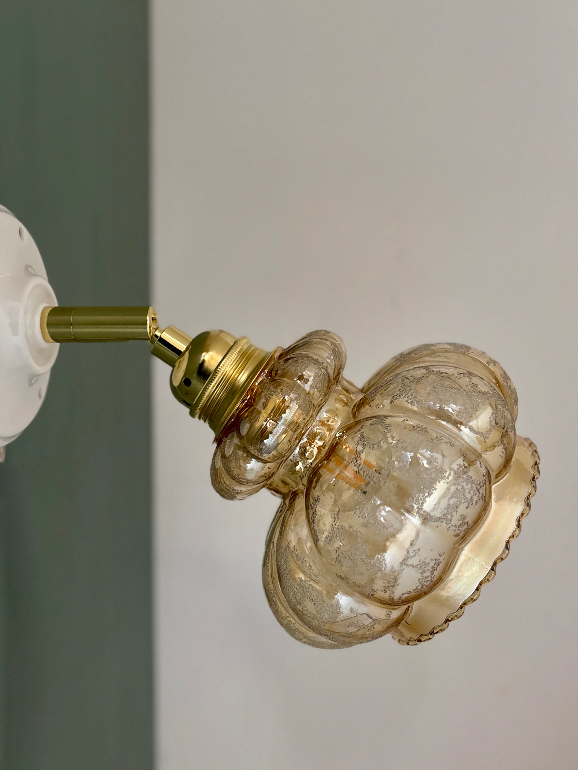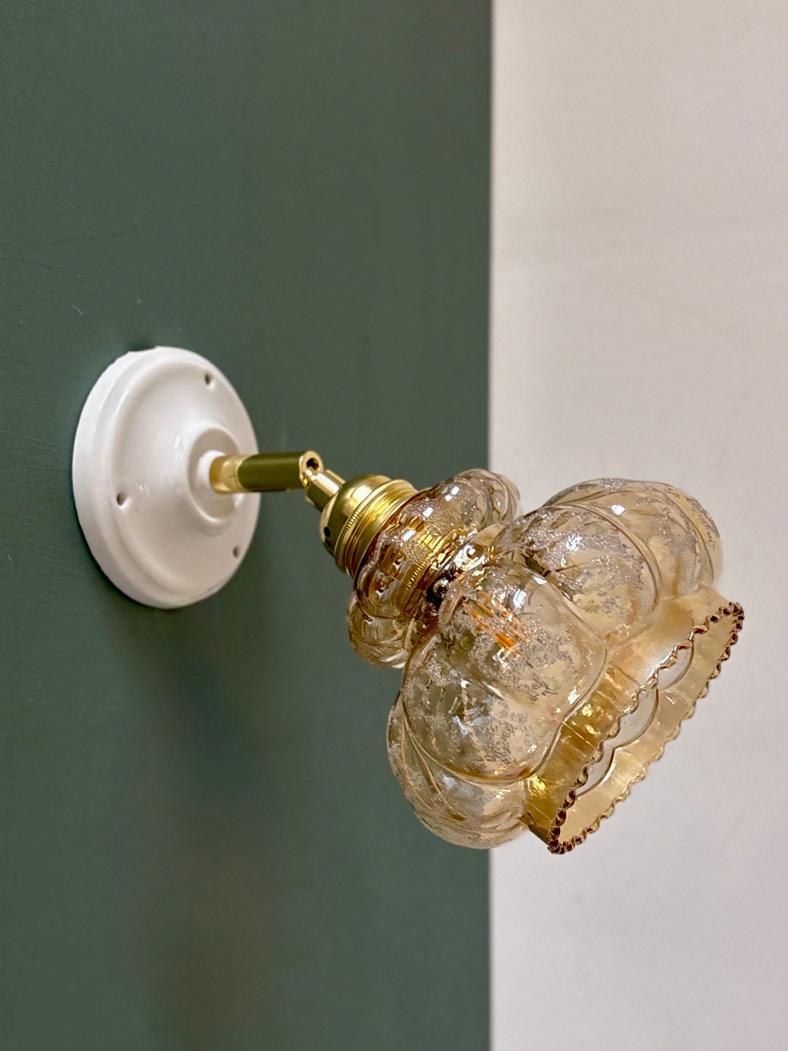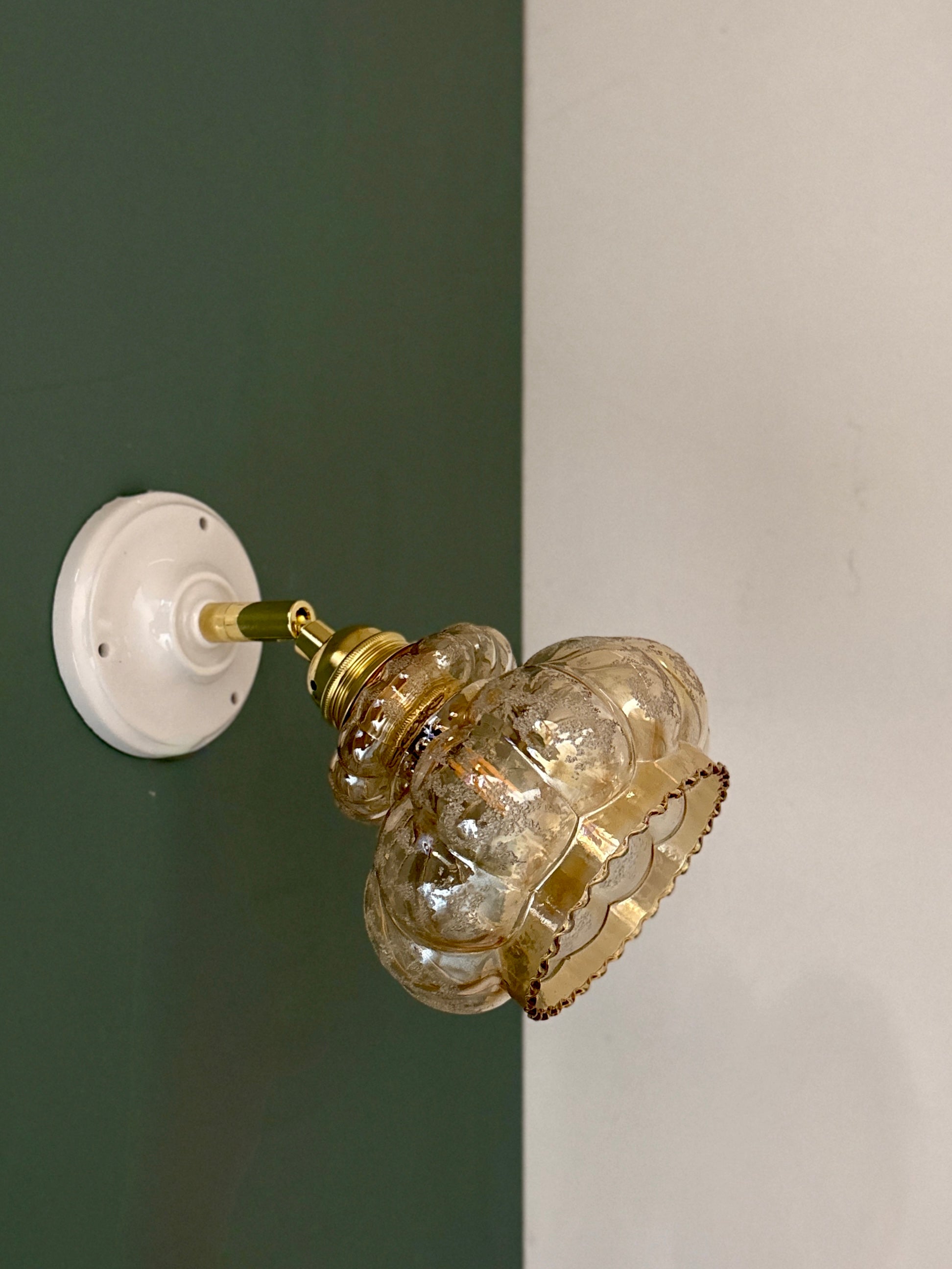 Très belle applique avec tulipe vintage en verre ambré légèrement granité.
