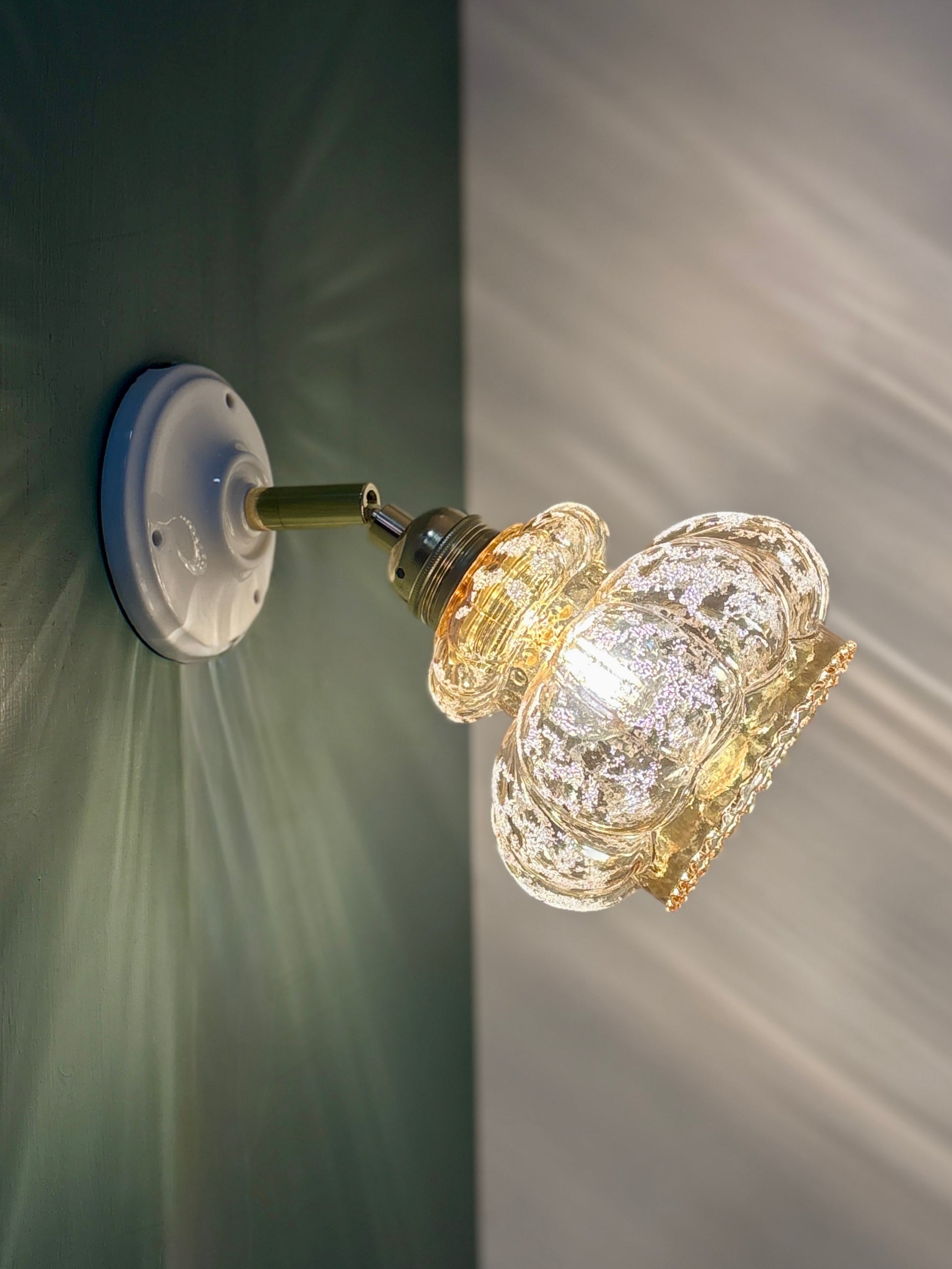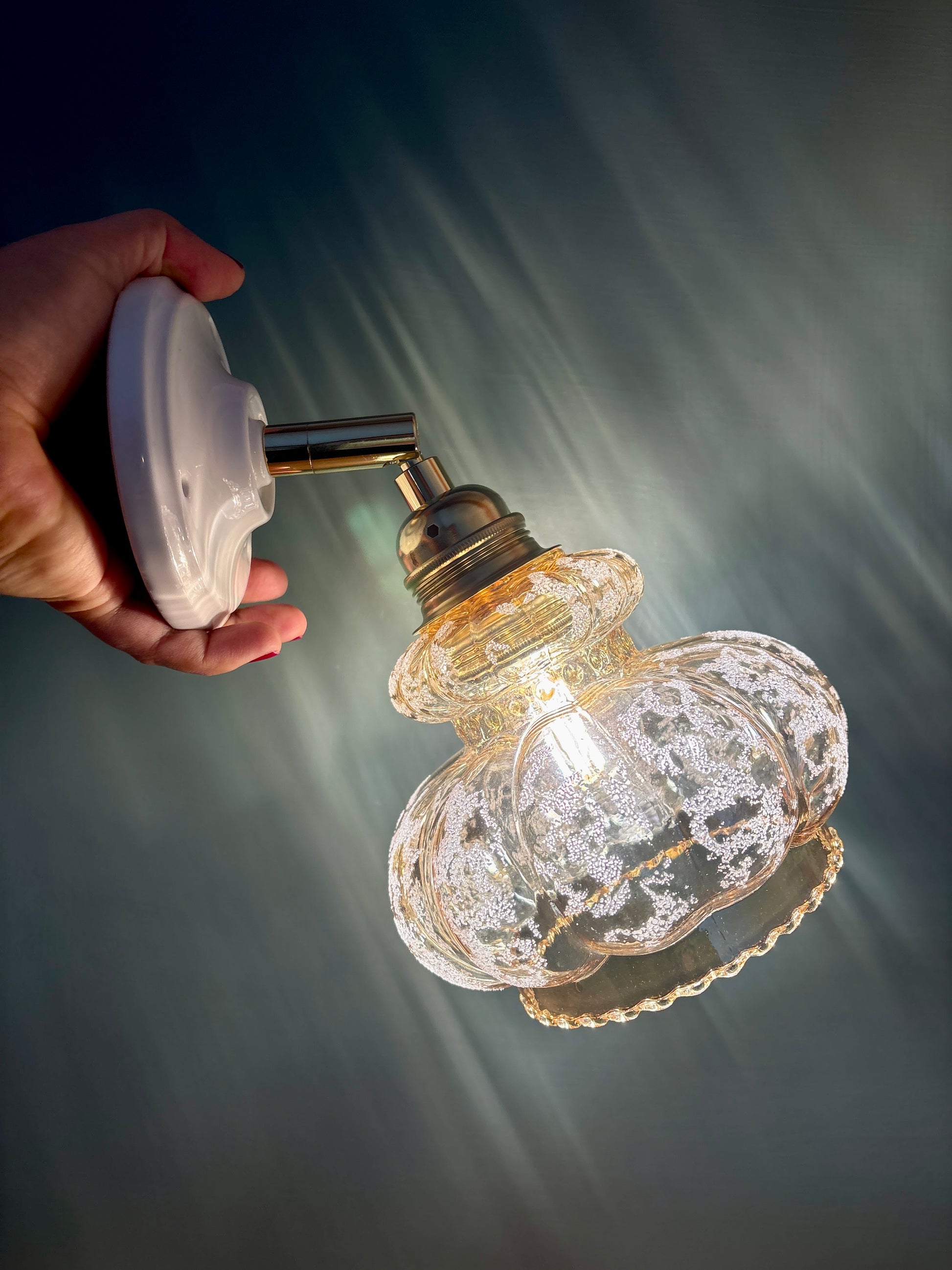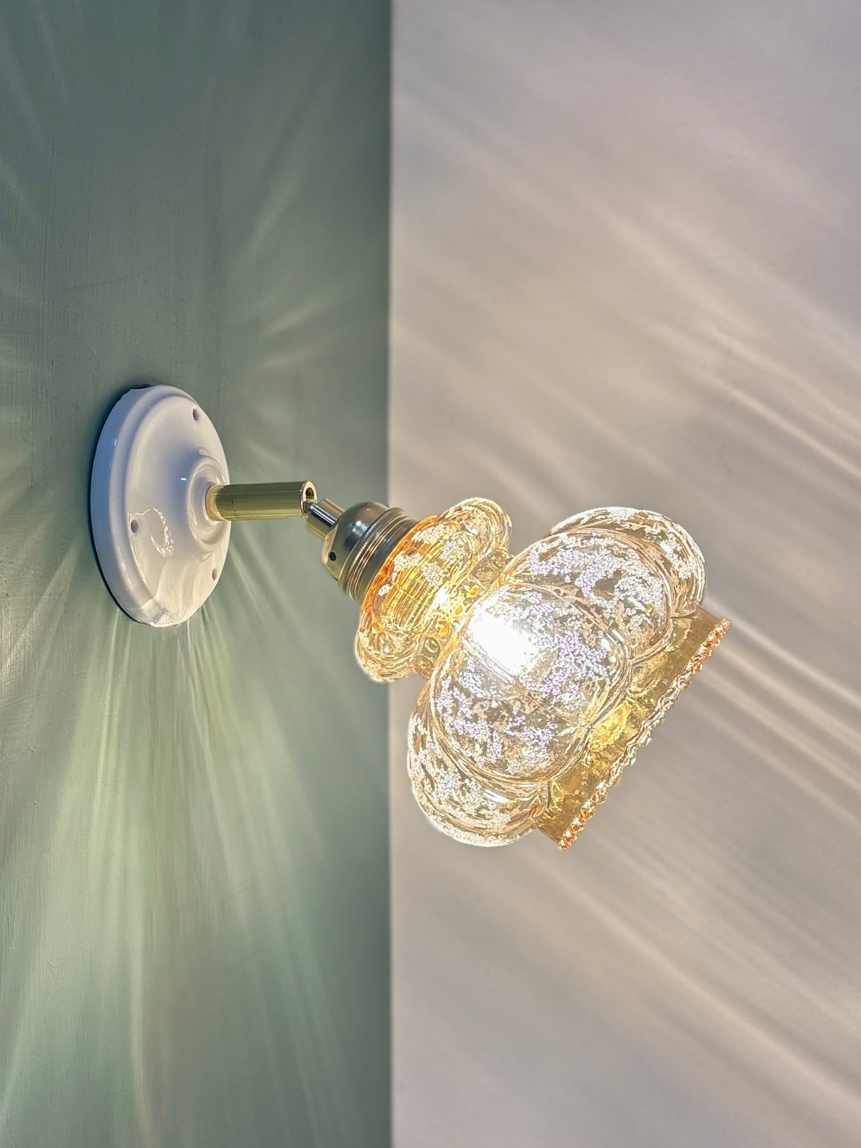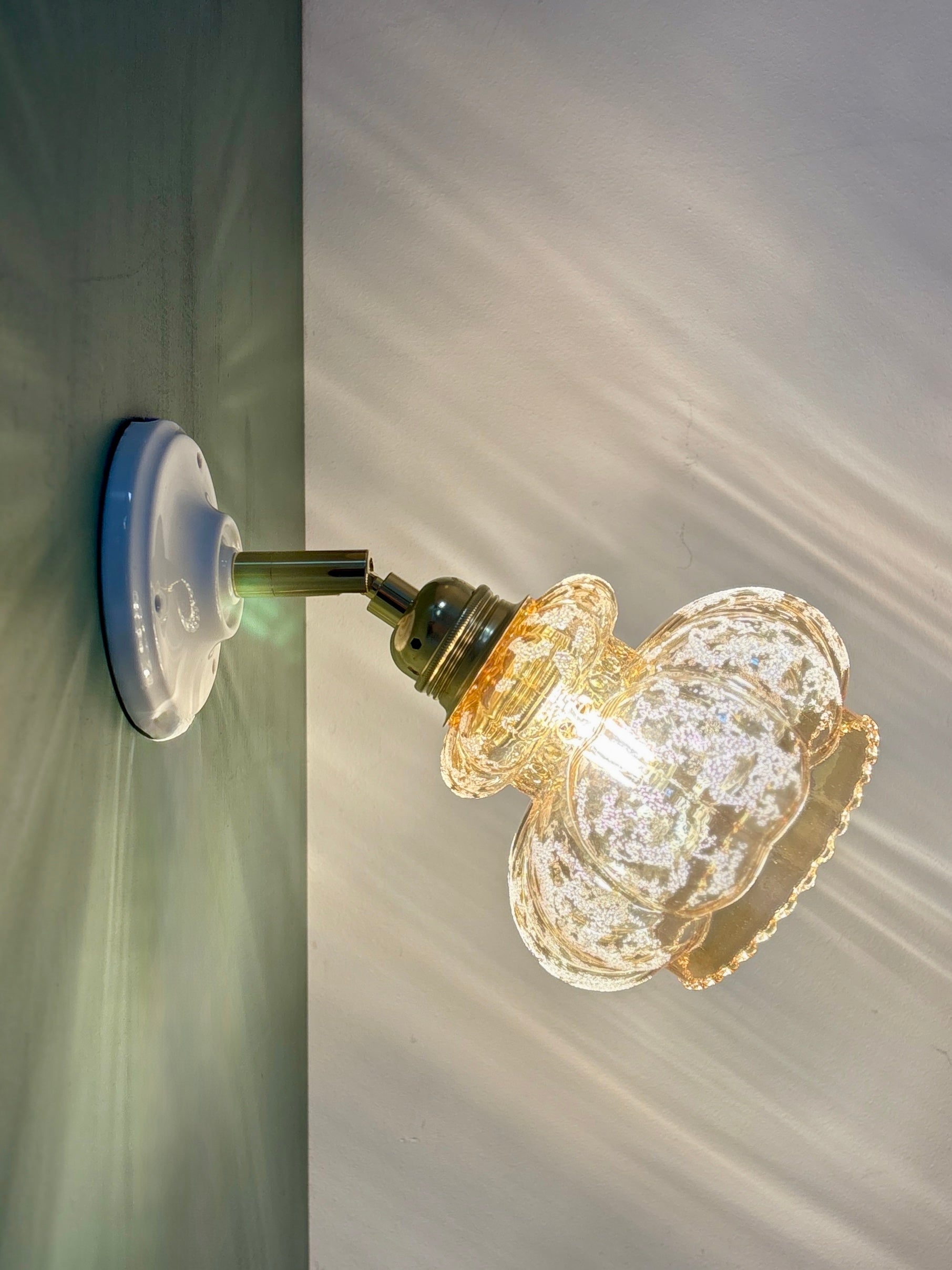 Très belle applique avec tulipe vintage en verre ambré légèrement granité.