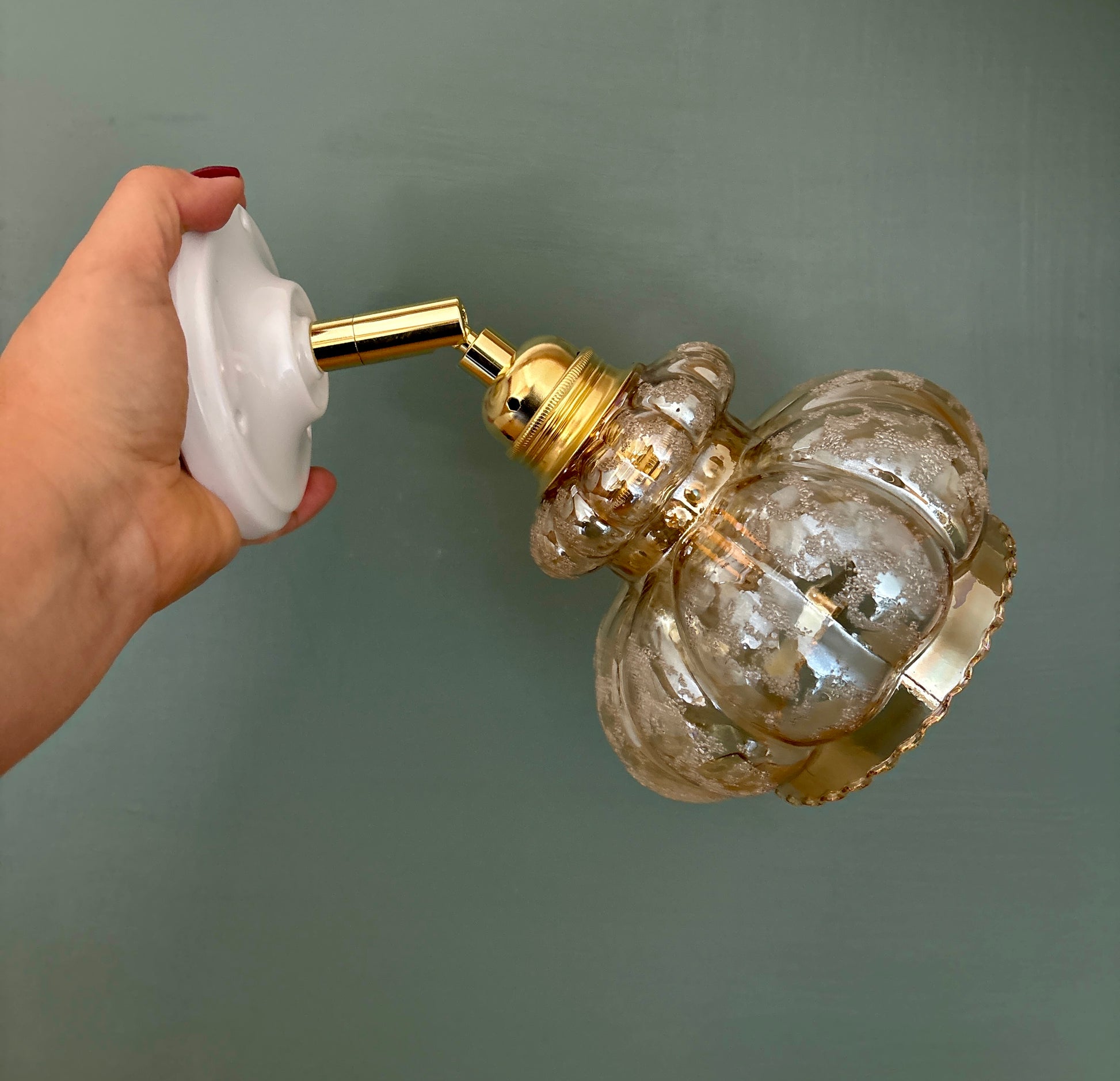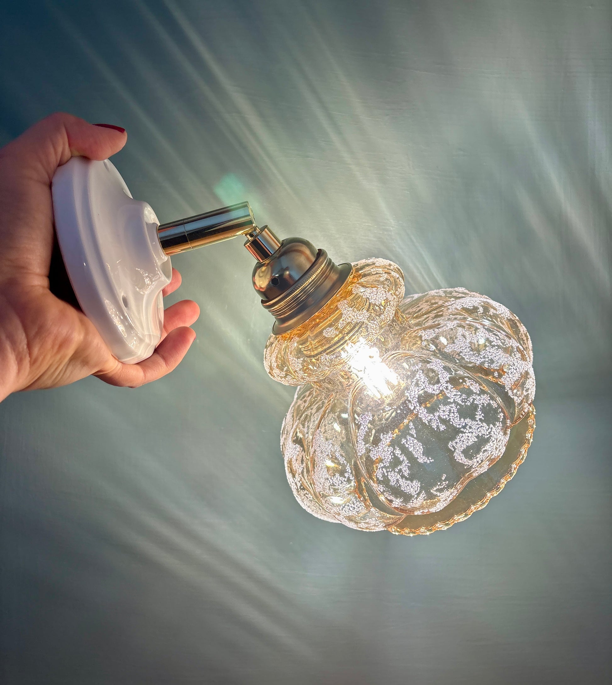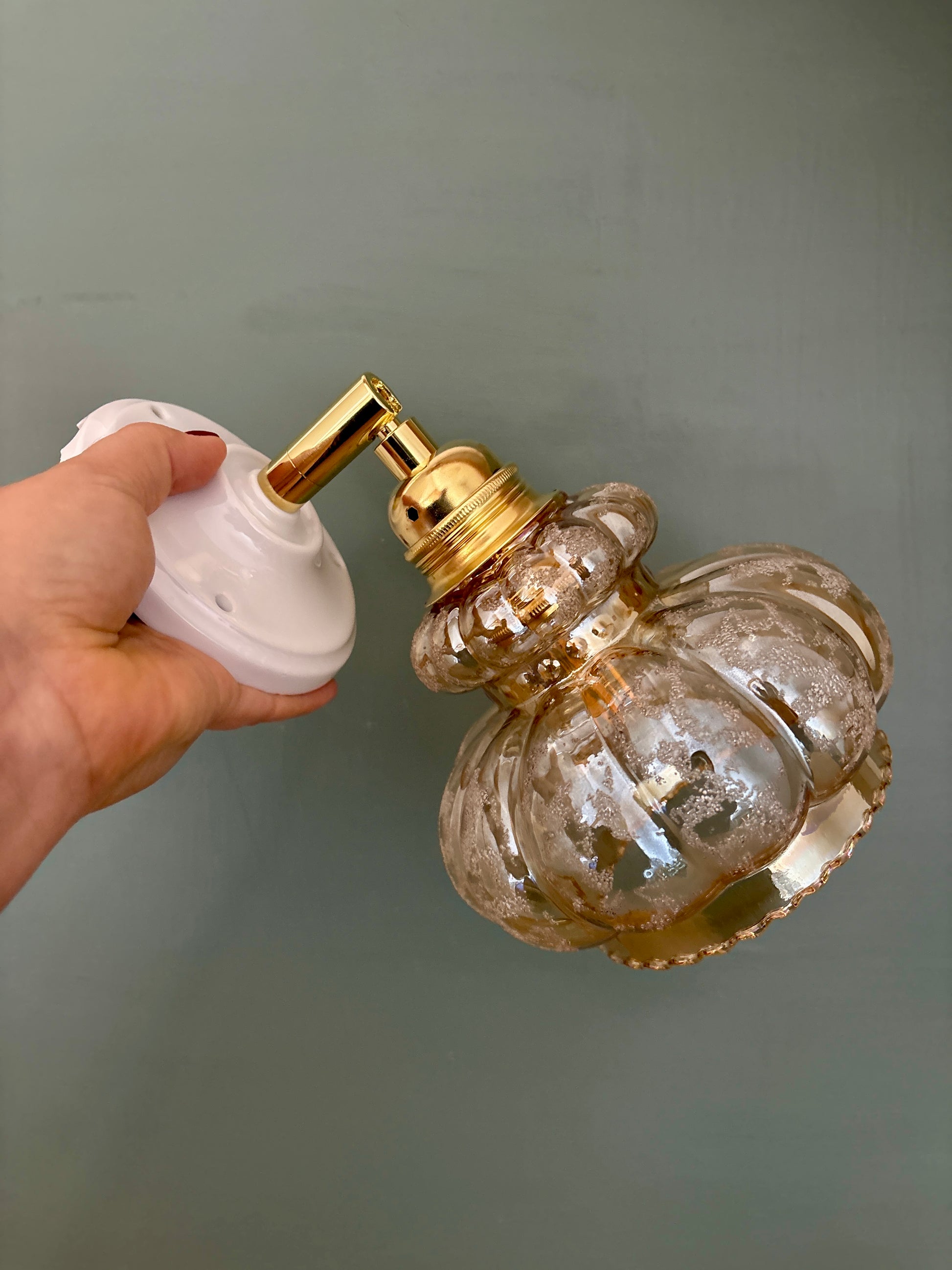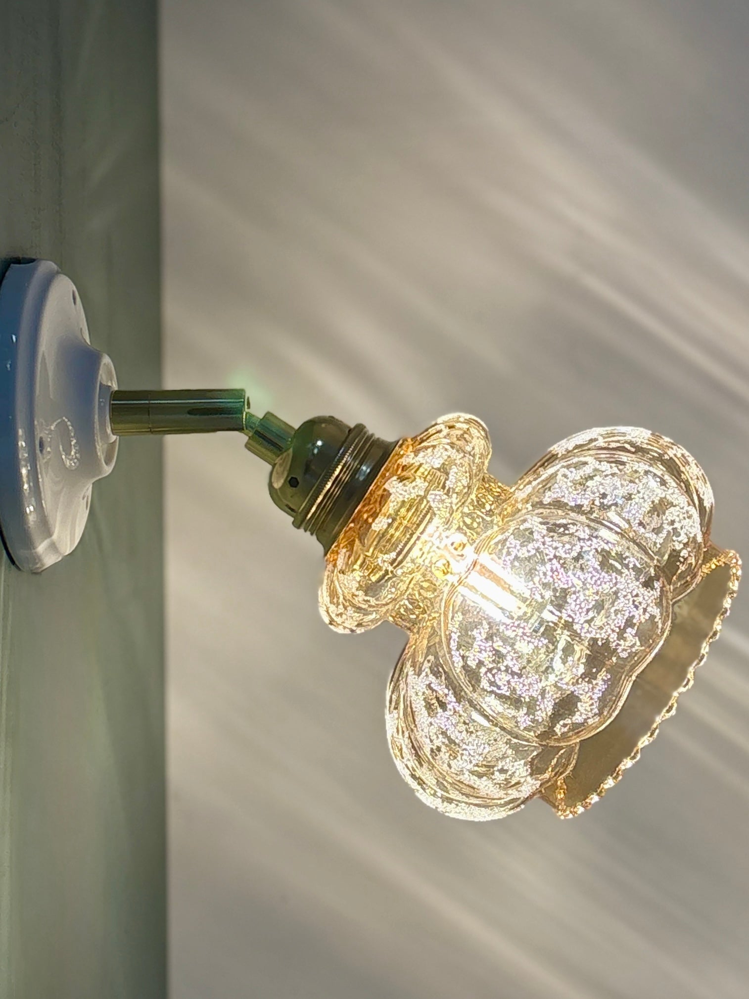 Très belle applique avec tulipe vintage en verre ambré légèrement granité.
