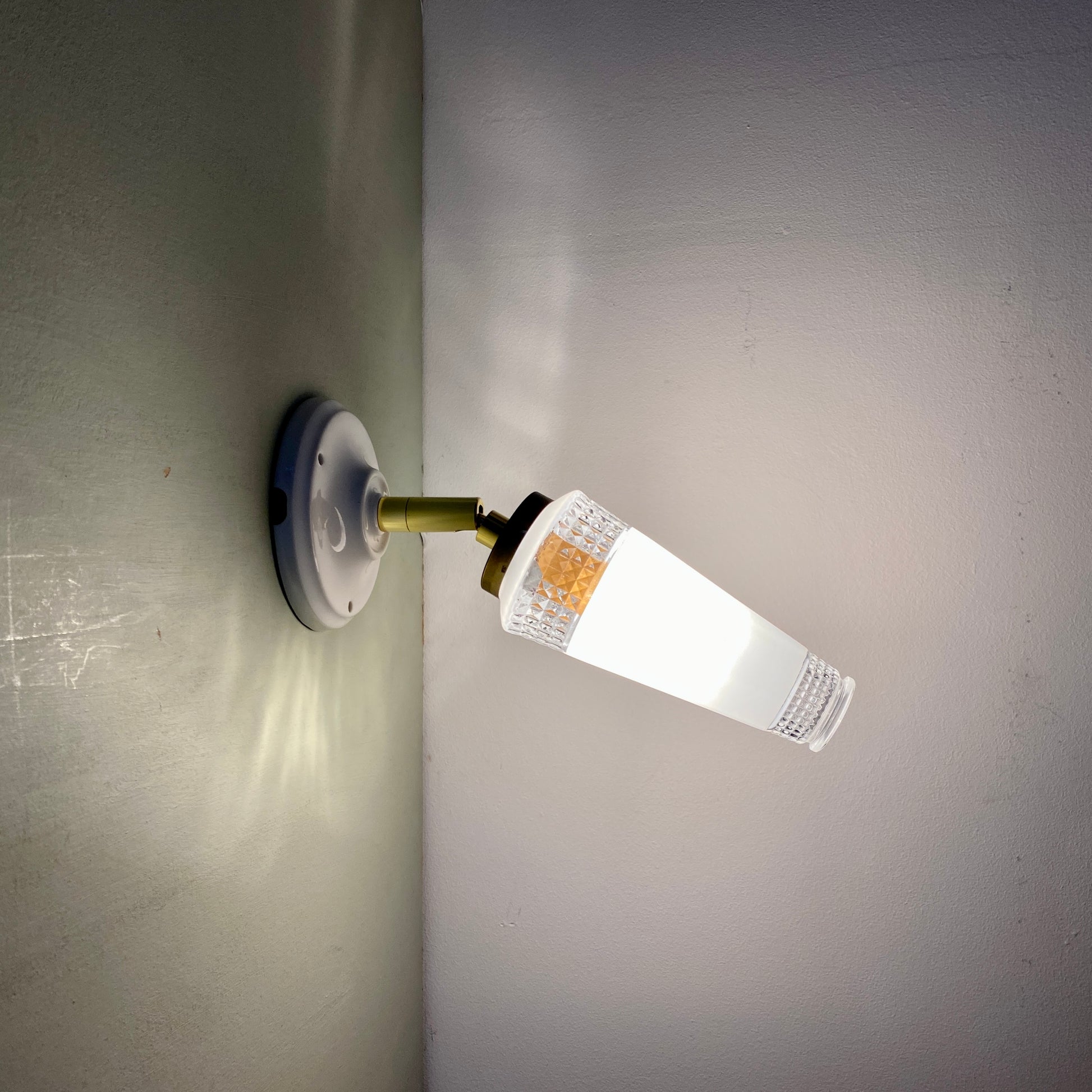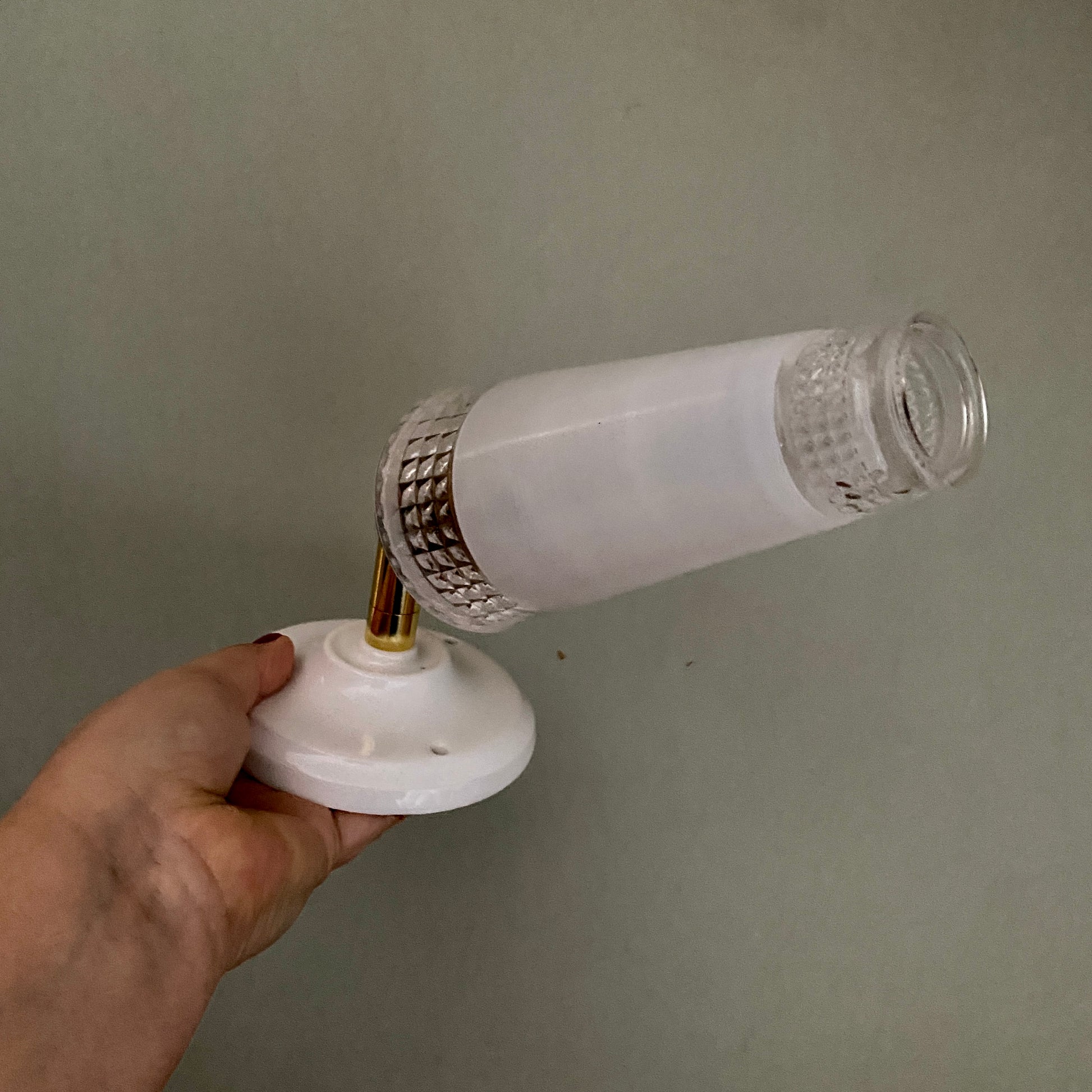 Très jolie applique avec tulipe vintage en verre blanc et transparent en  forme d'épis.