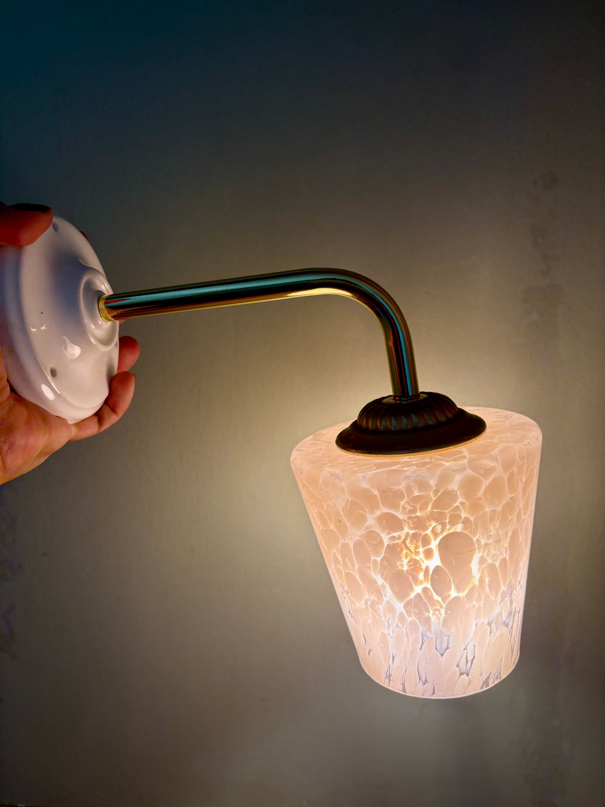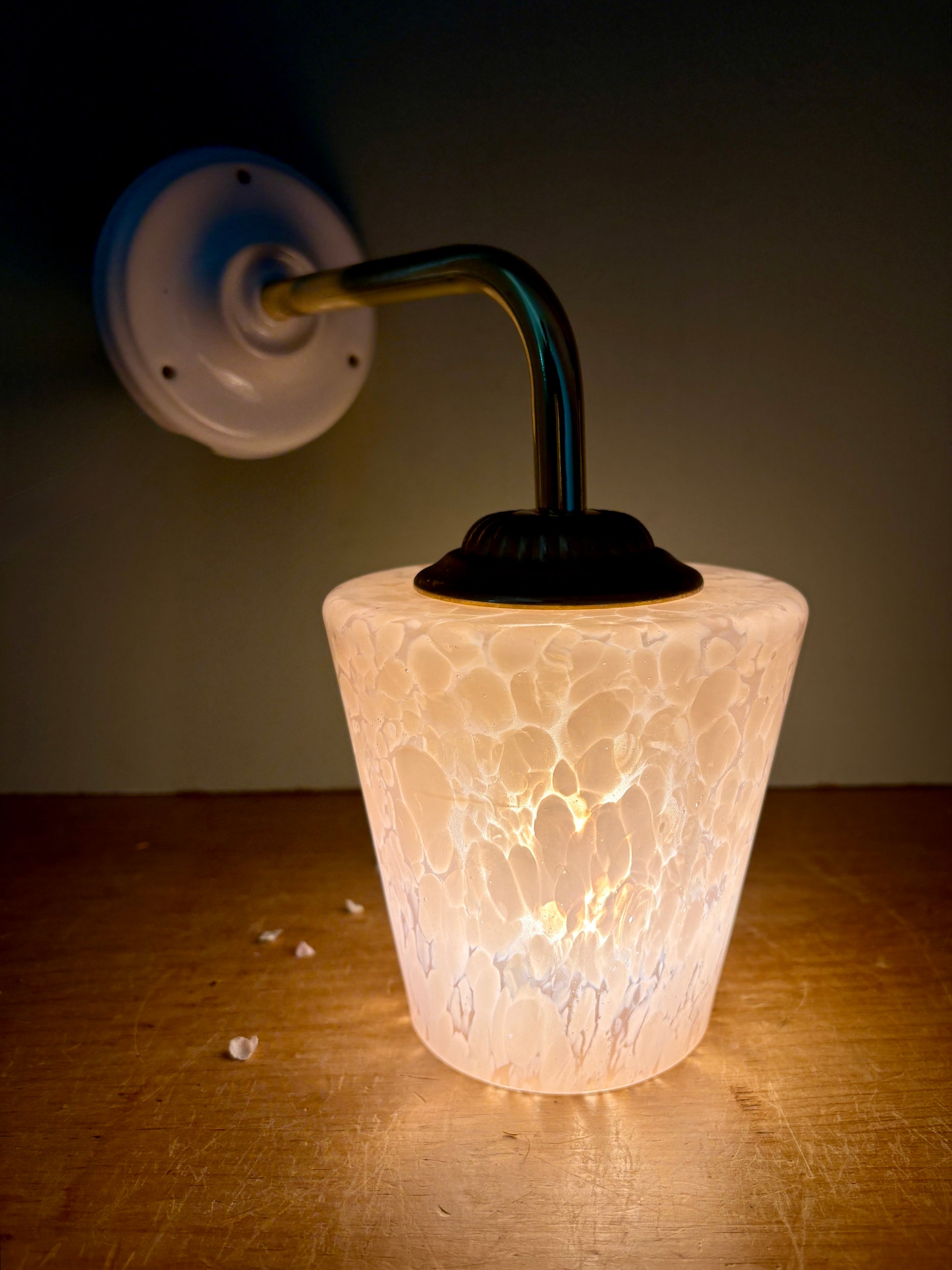 Jolie applique composée d'un socle neuf et d'un tulipe vintage en verre de Clichy rose.