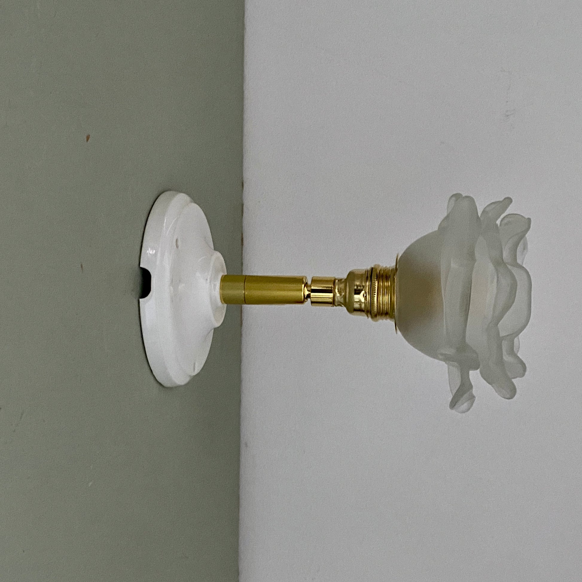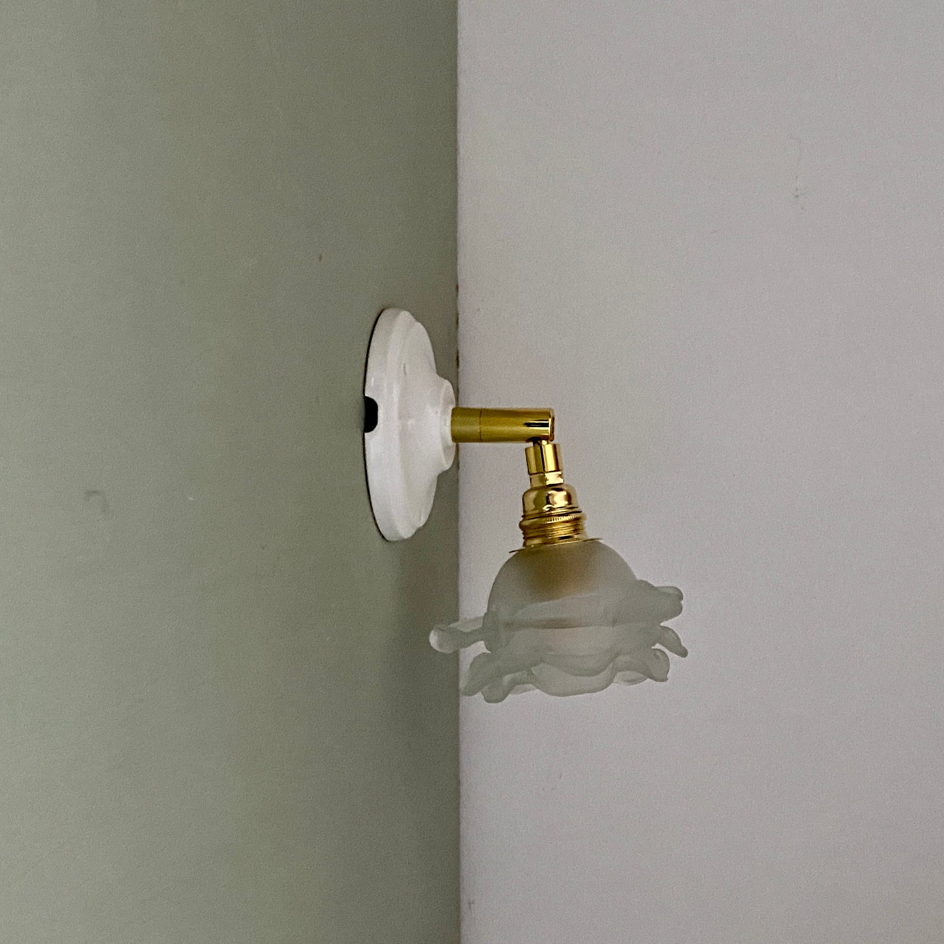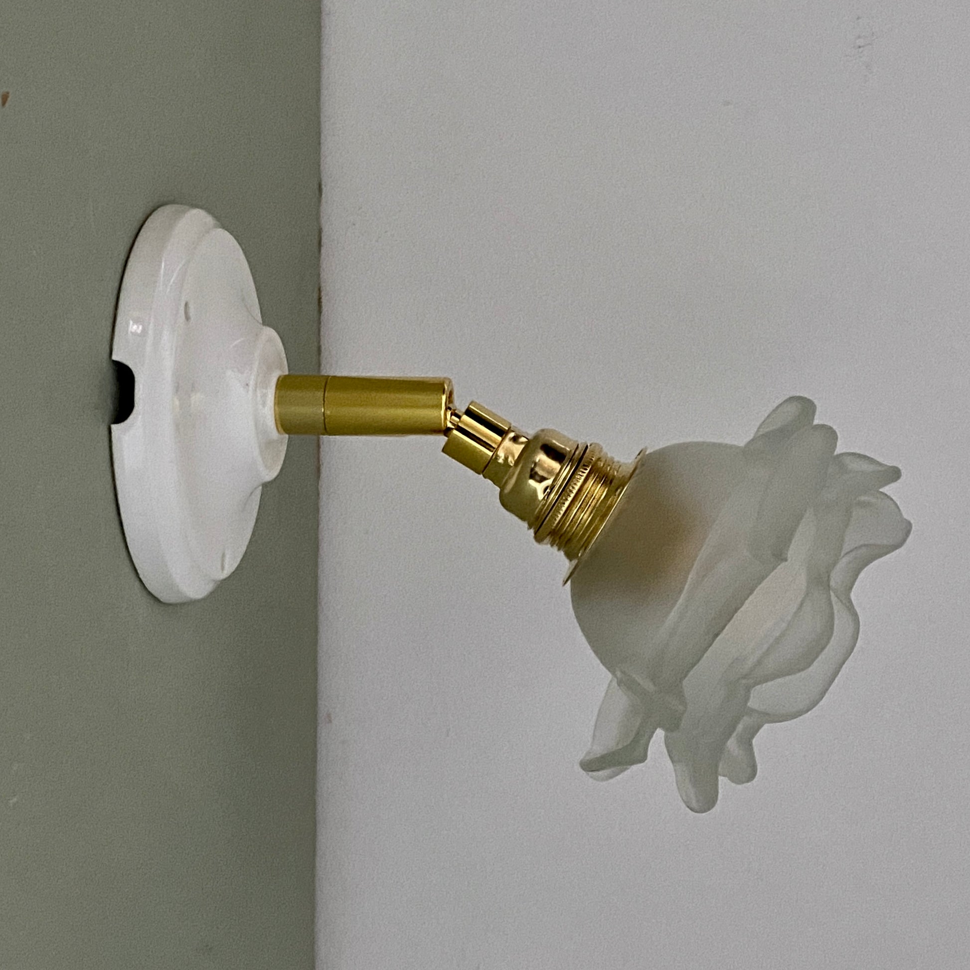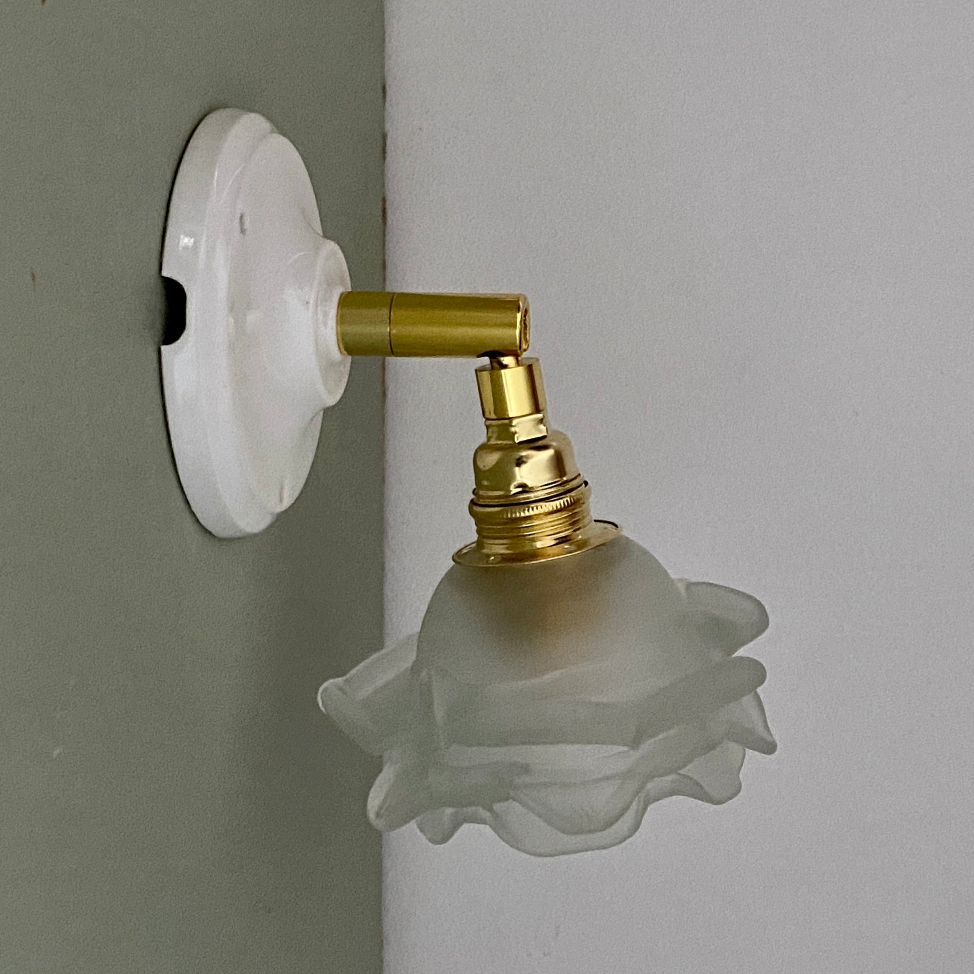 Très belle applique avec globe vintage en verre dépoli en forme de rose.