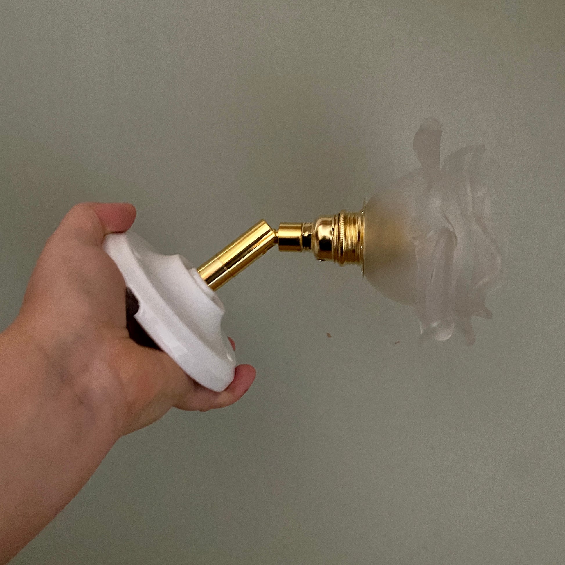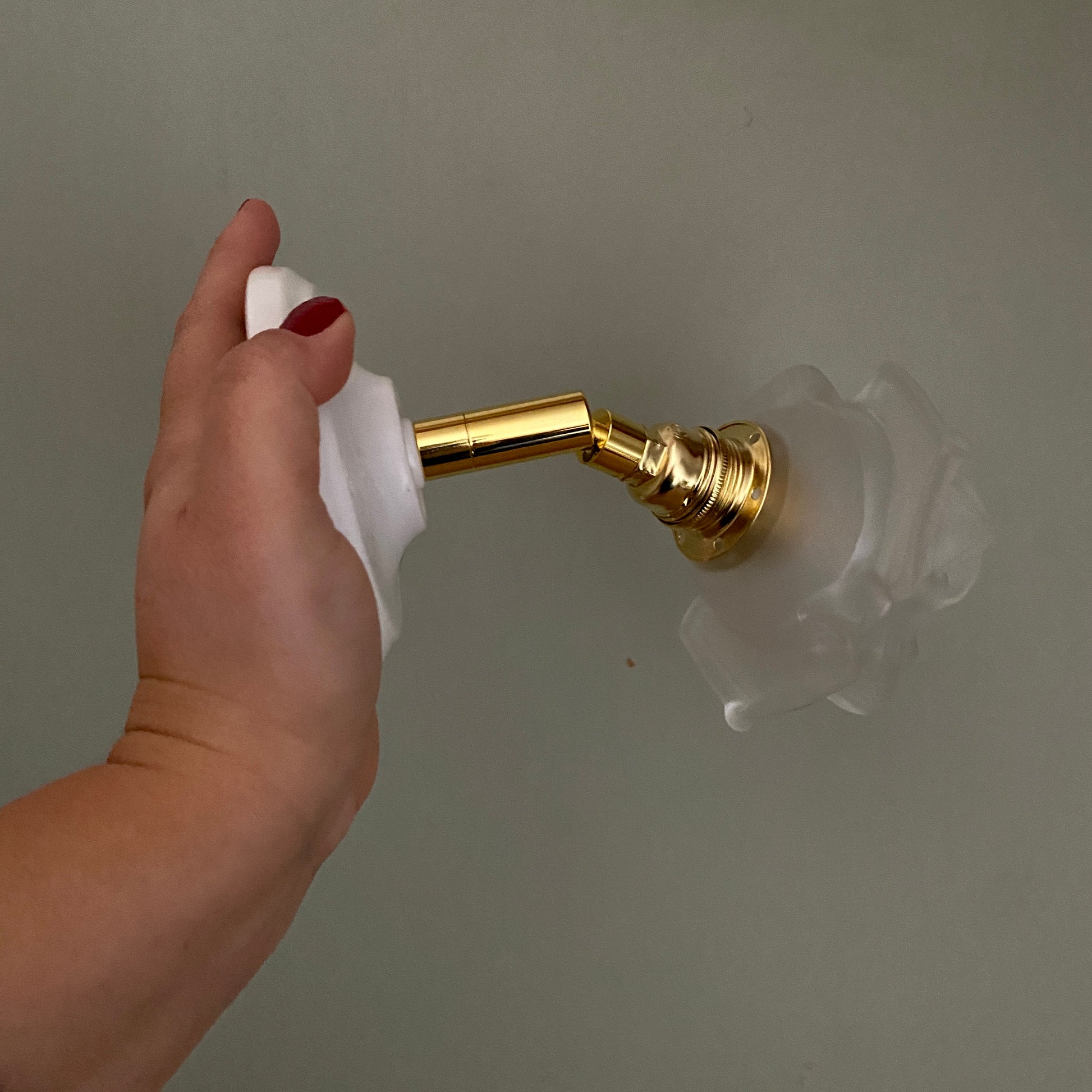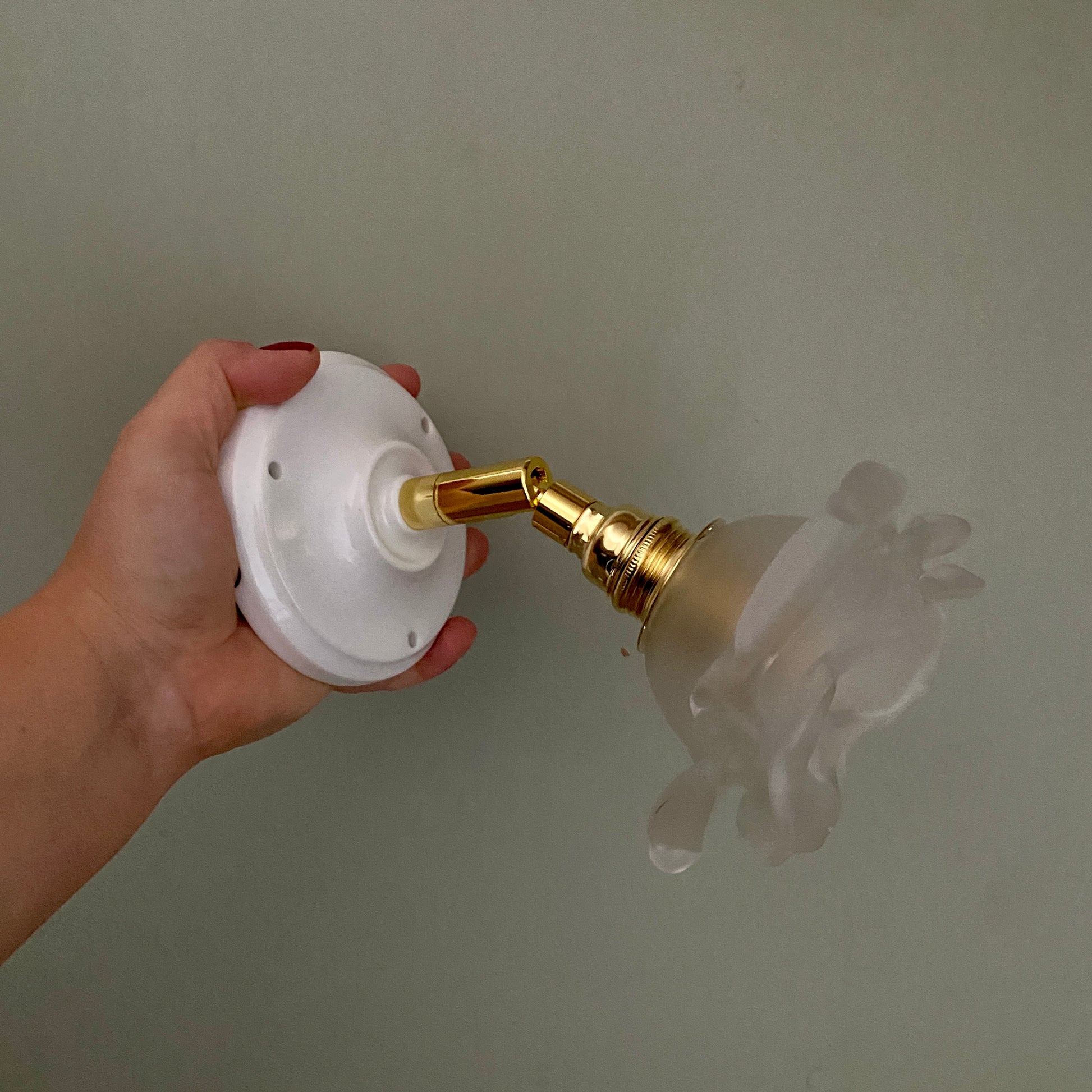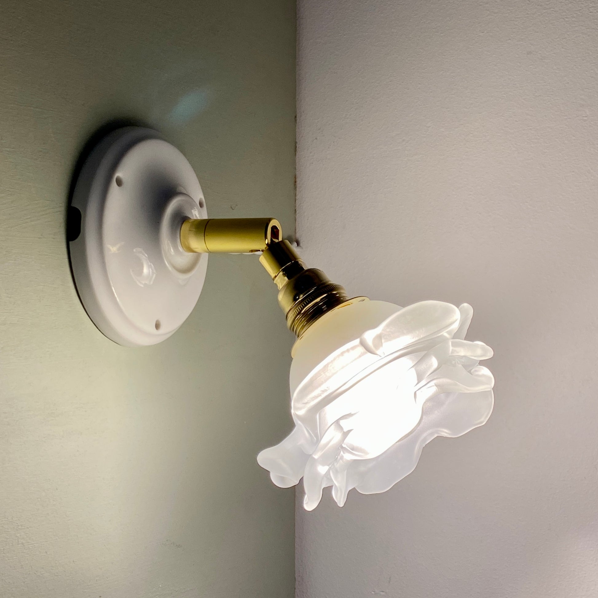 Très belle applique avec globe vintage en verre dépoli en forme de rose.