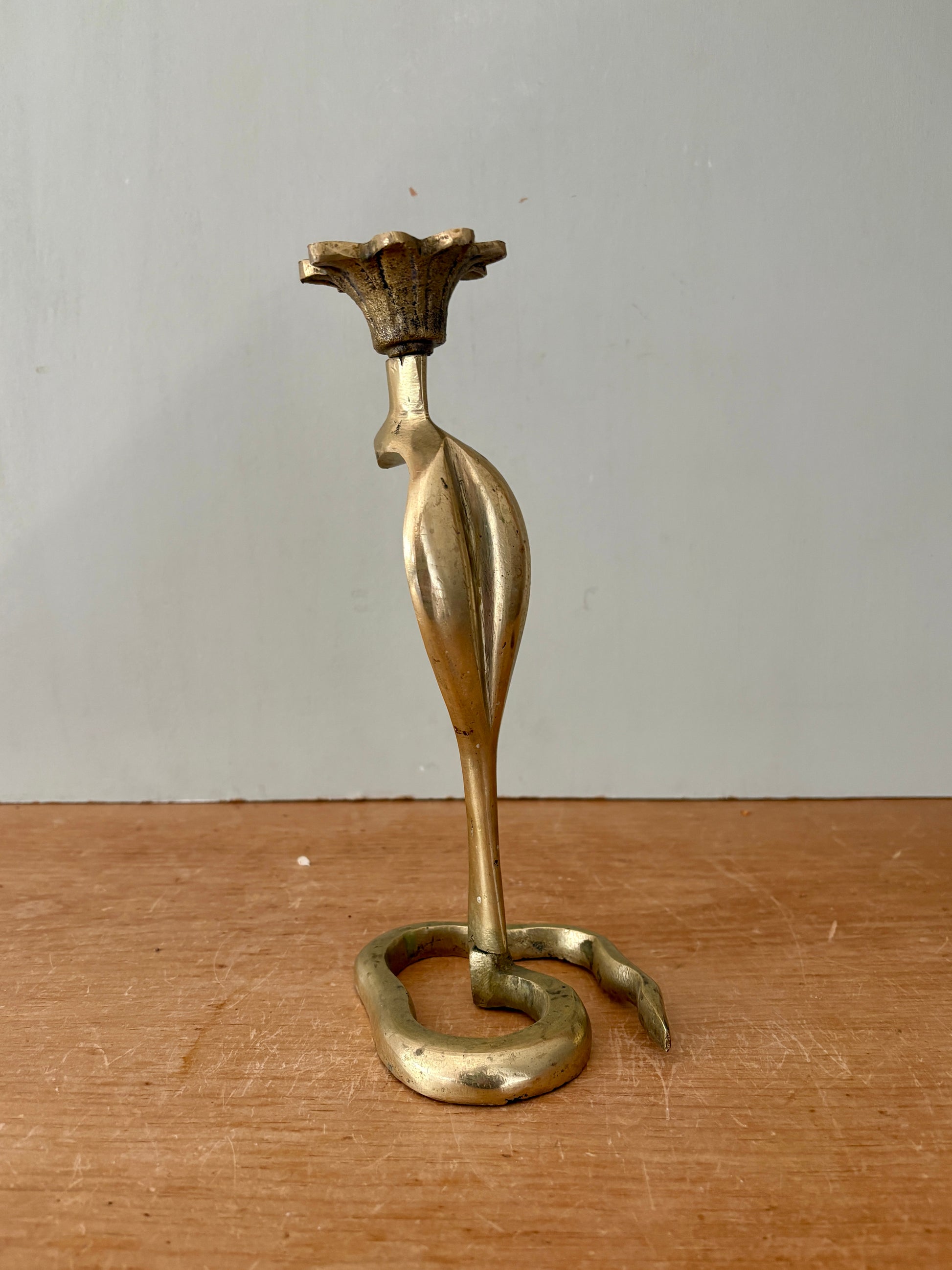 Très joli bougeoir vintage en laiton en forme de cobra.