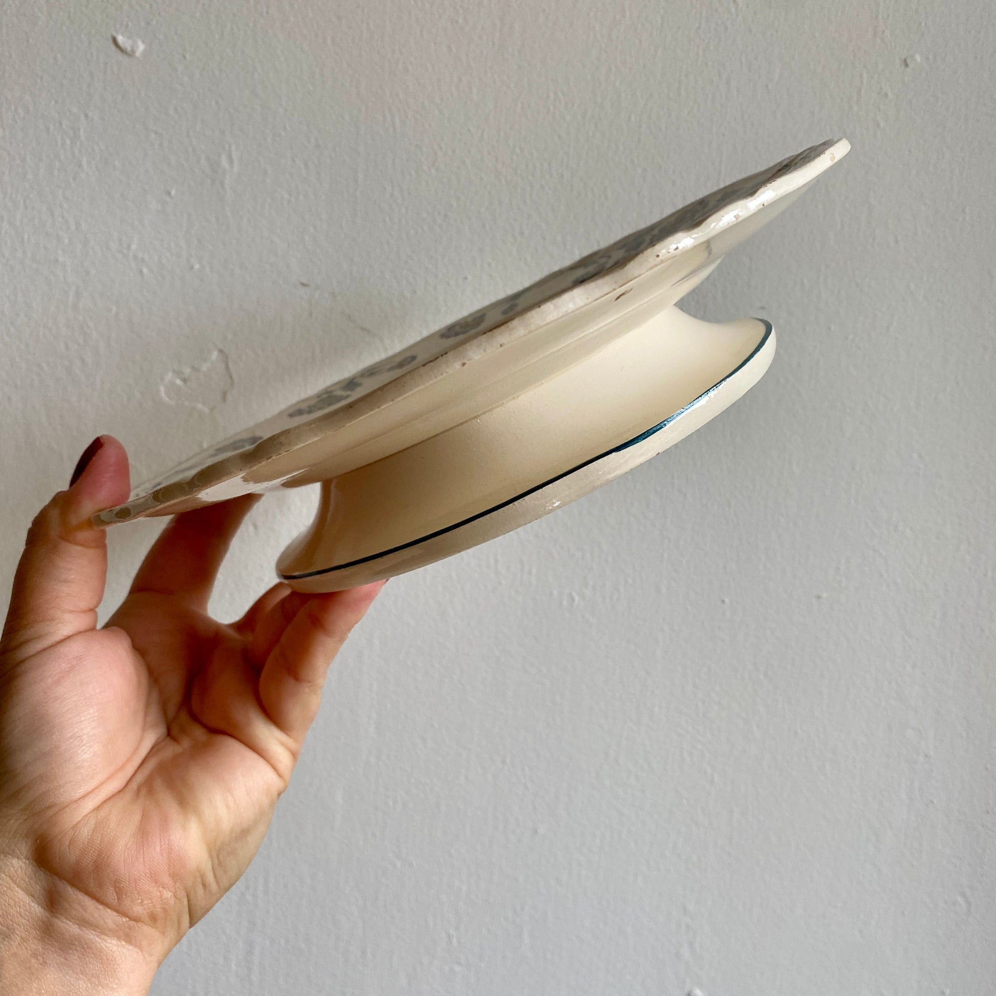 Belle et rare assiette sur pied en terre de fer. Compotier ou présentoir à gâteaux.