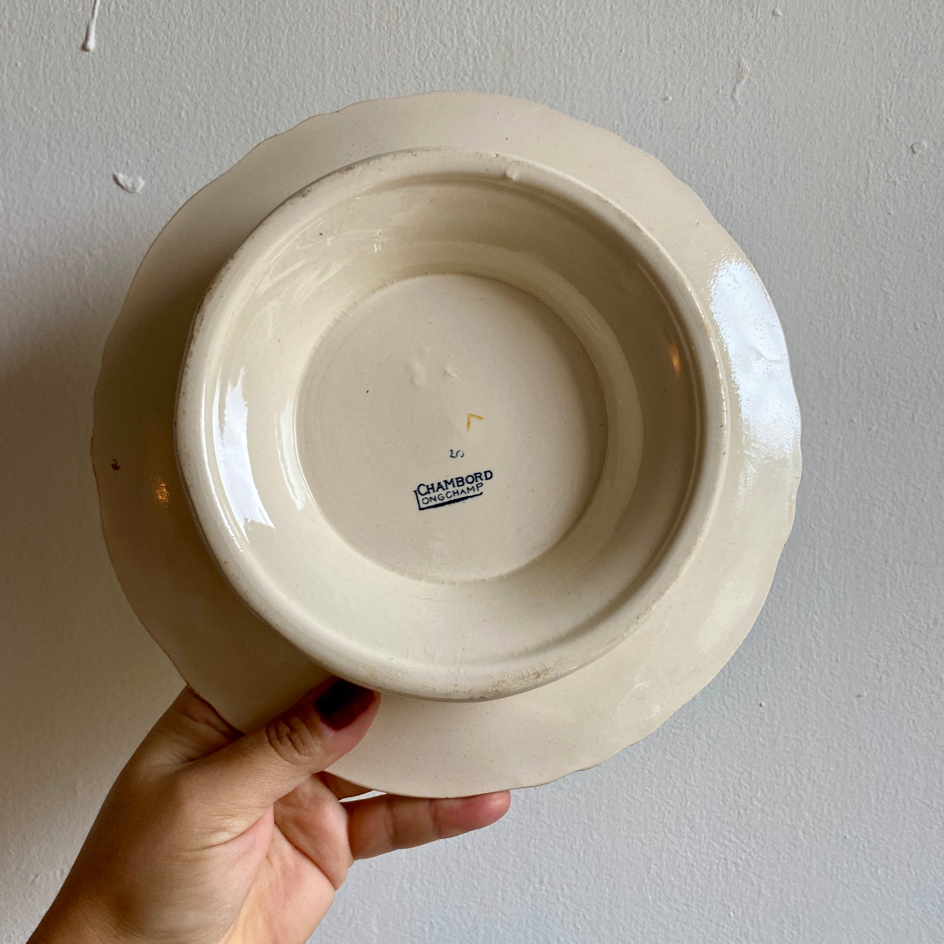 Compotier ou assiette sur pied ancienne en terre de fer - Chambord de Longchamp
