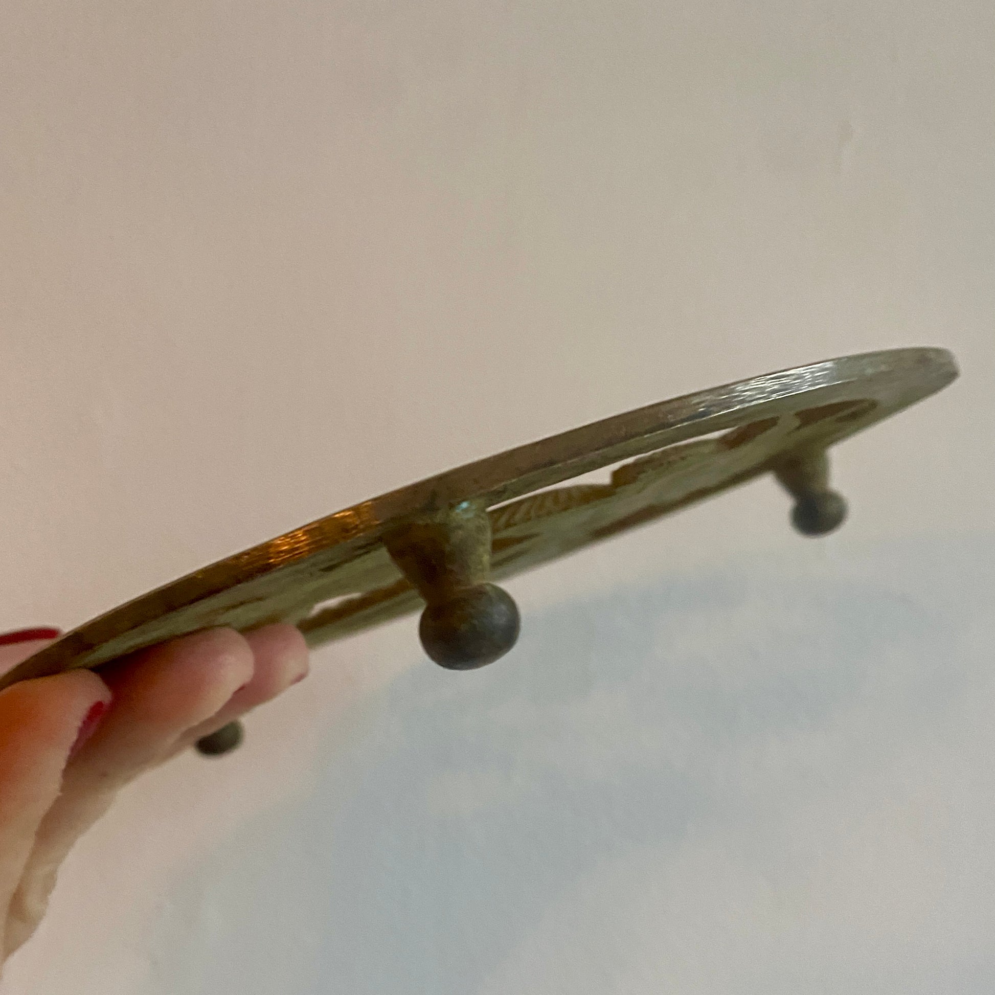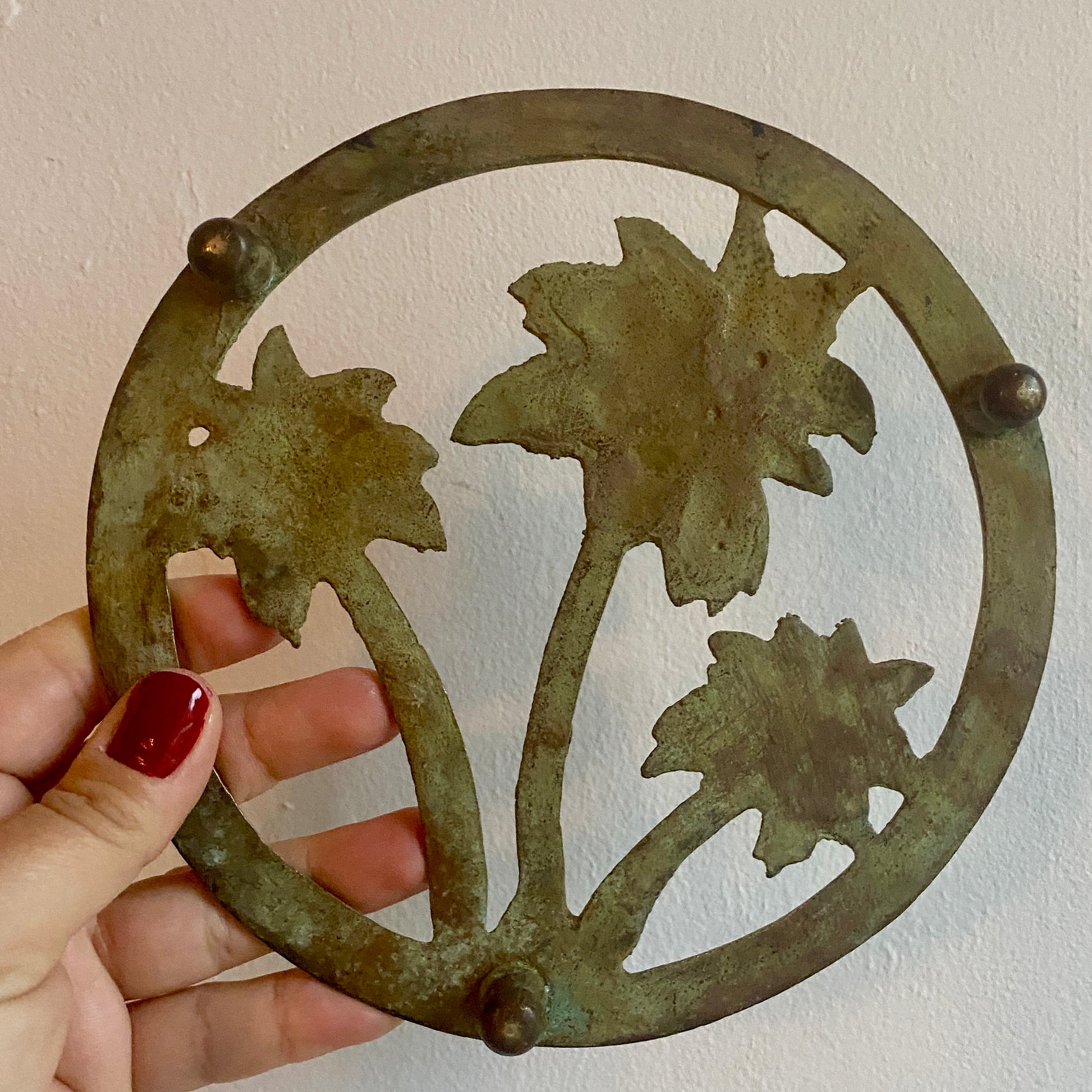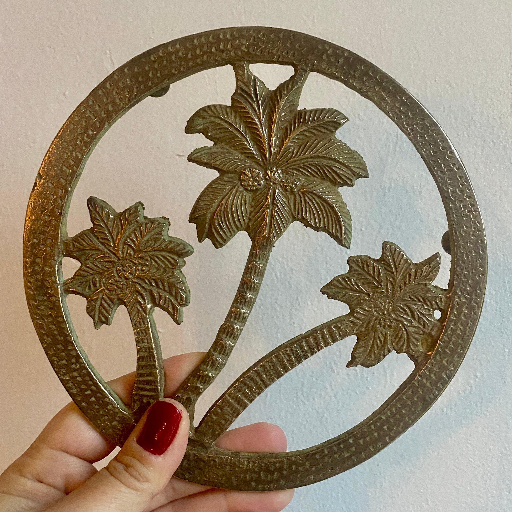 Très joli dessous de plat ancien en laiton doré avec décors de palmier.