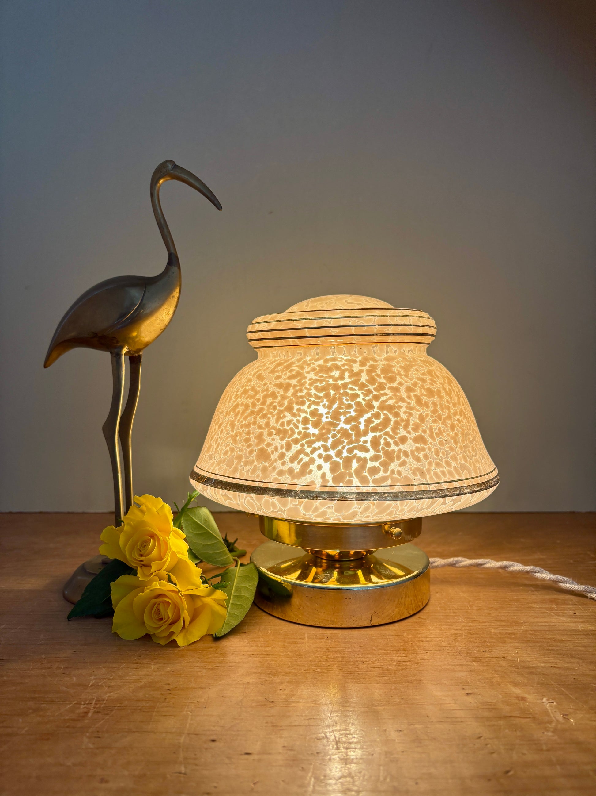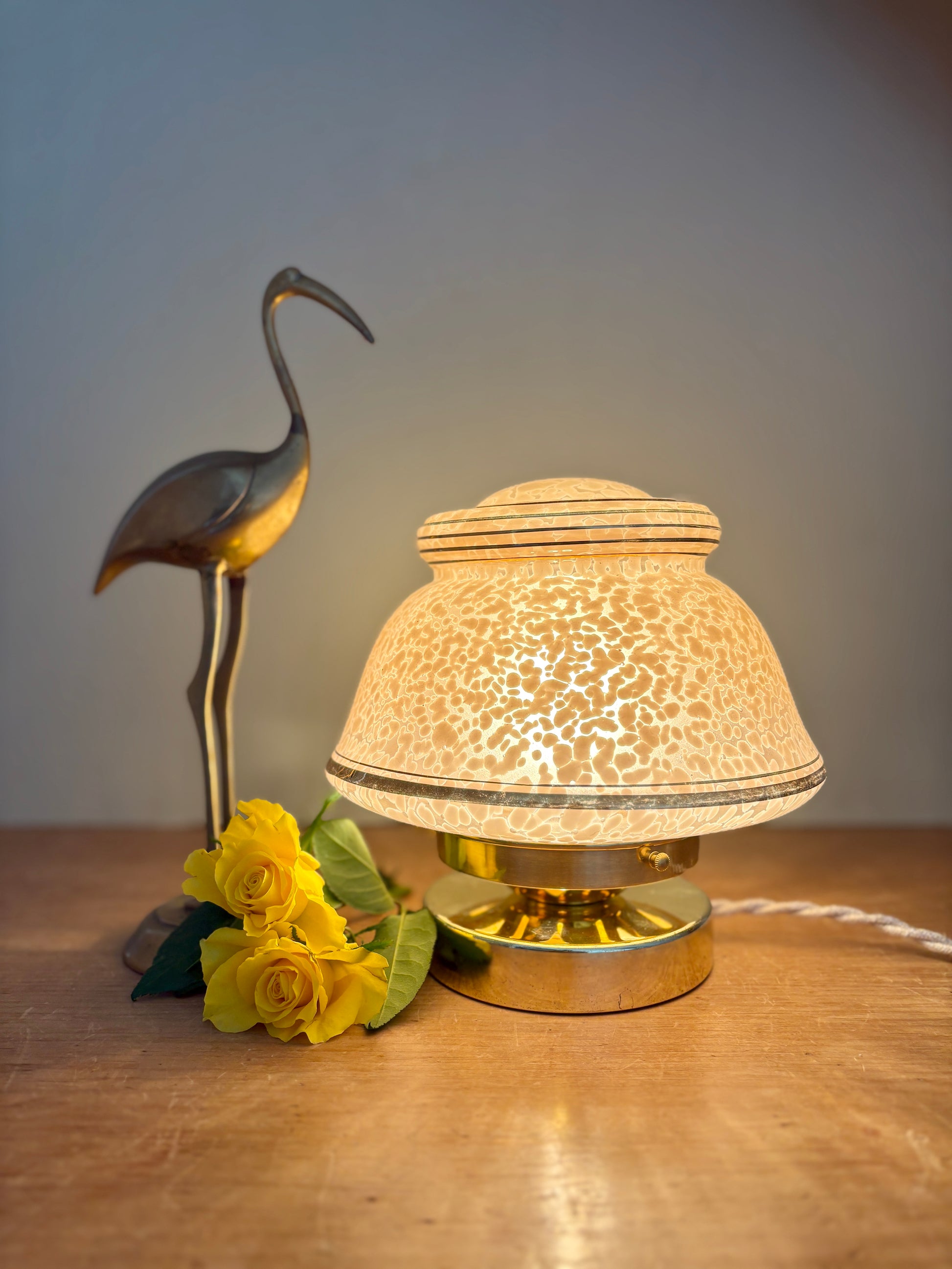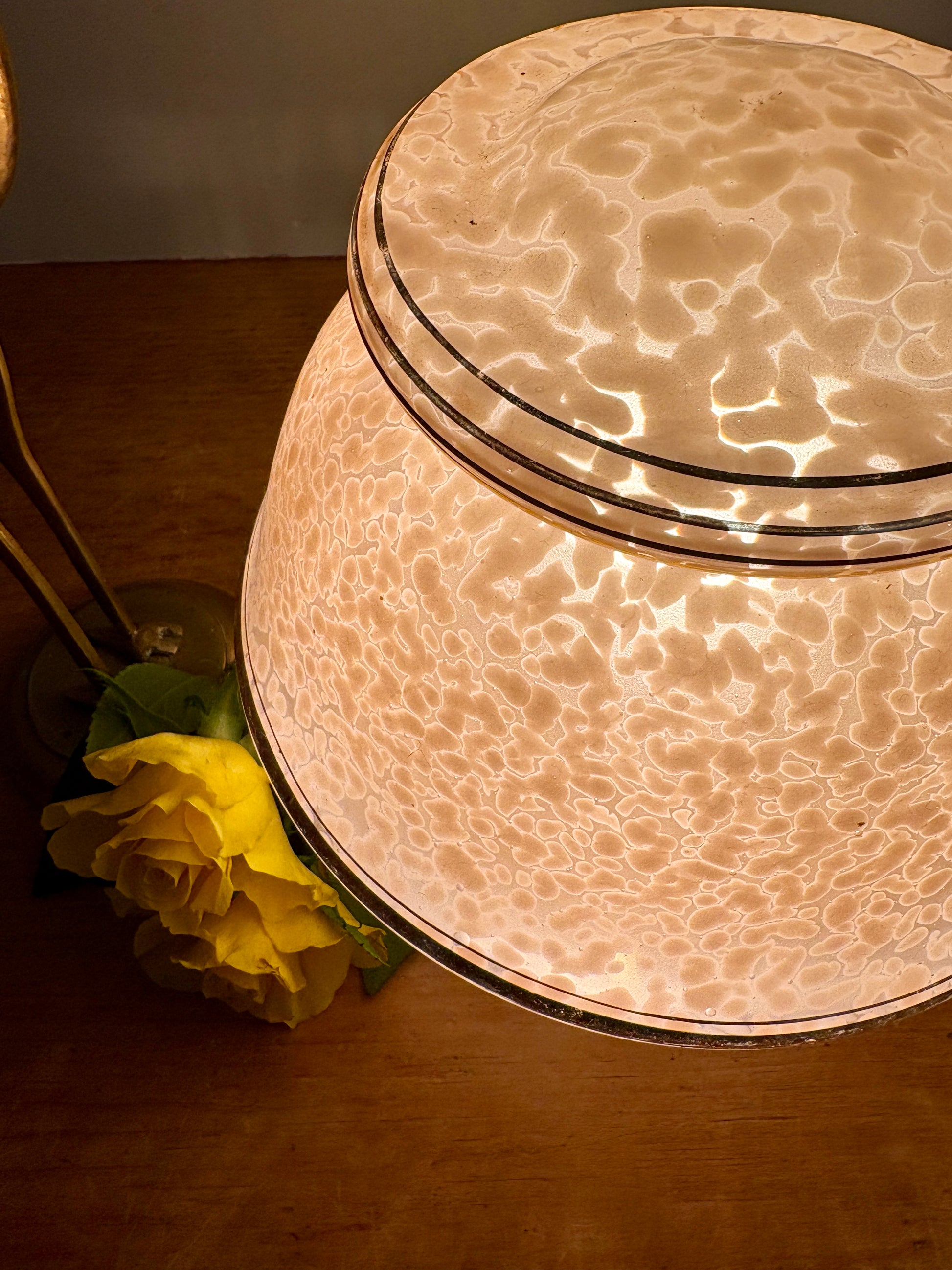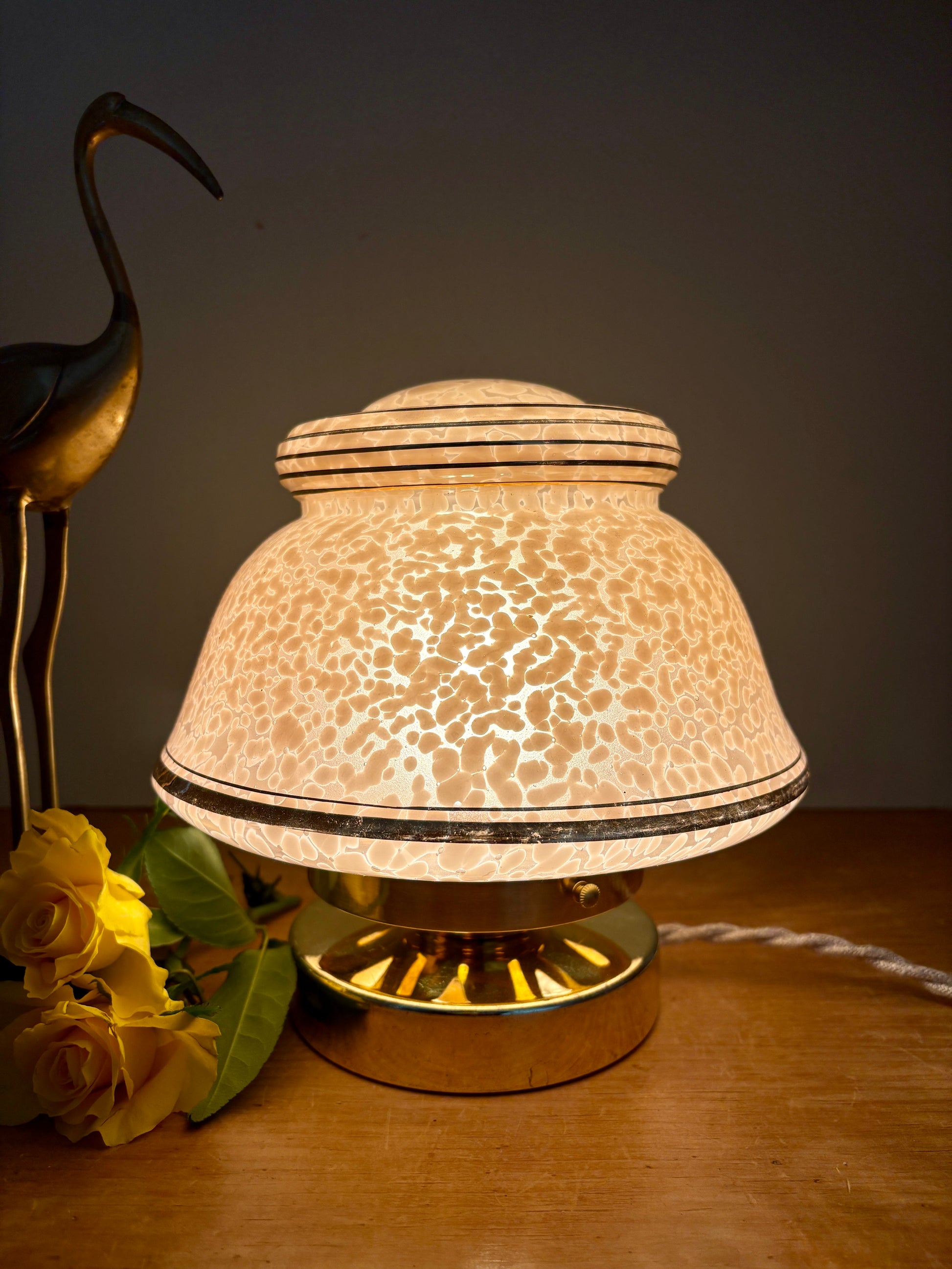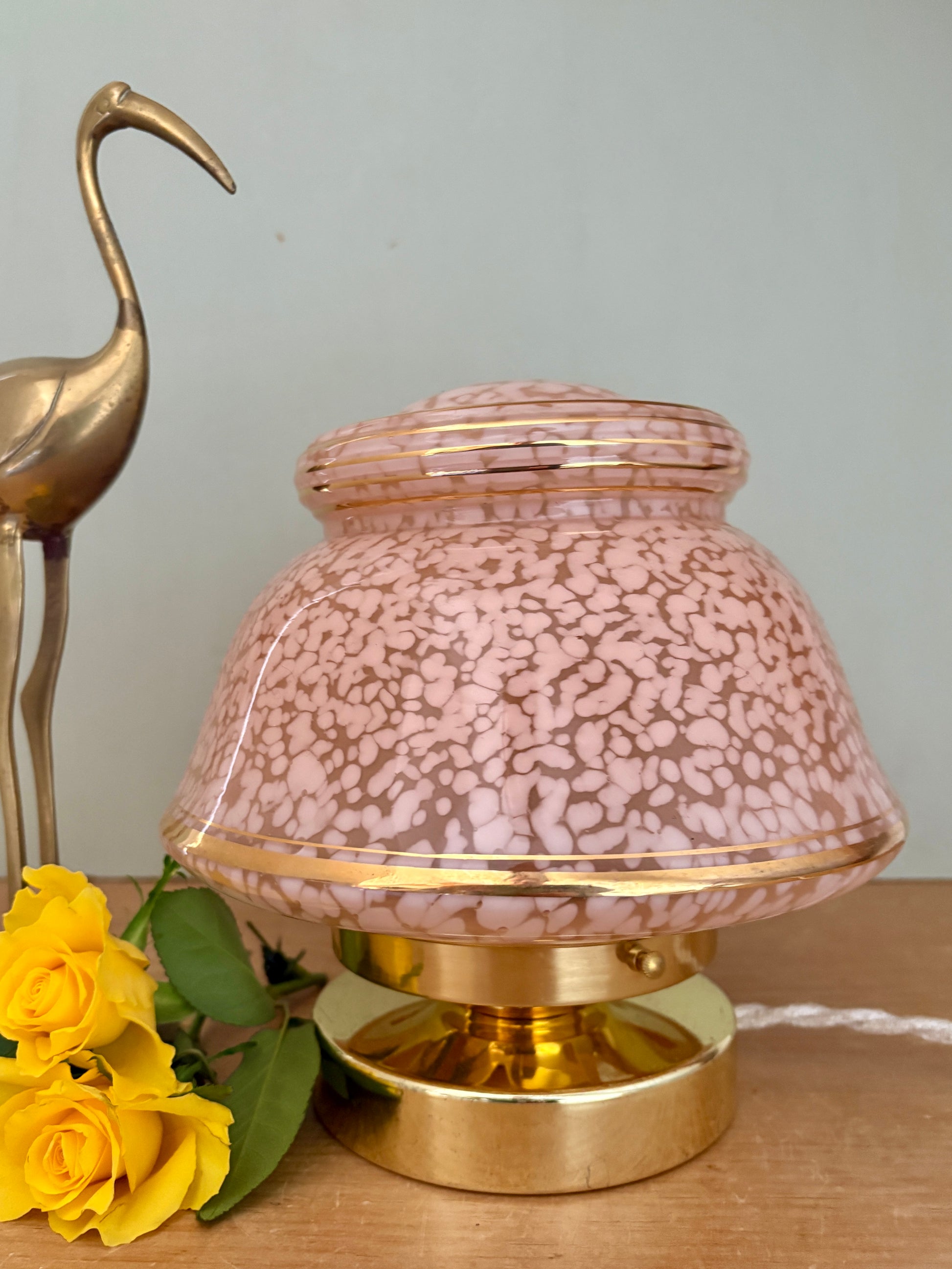 Lampe à poser globe ancien art déco en verre de Clichy rose et or
