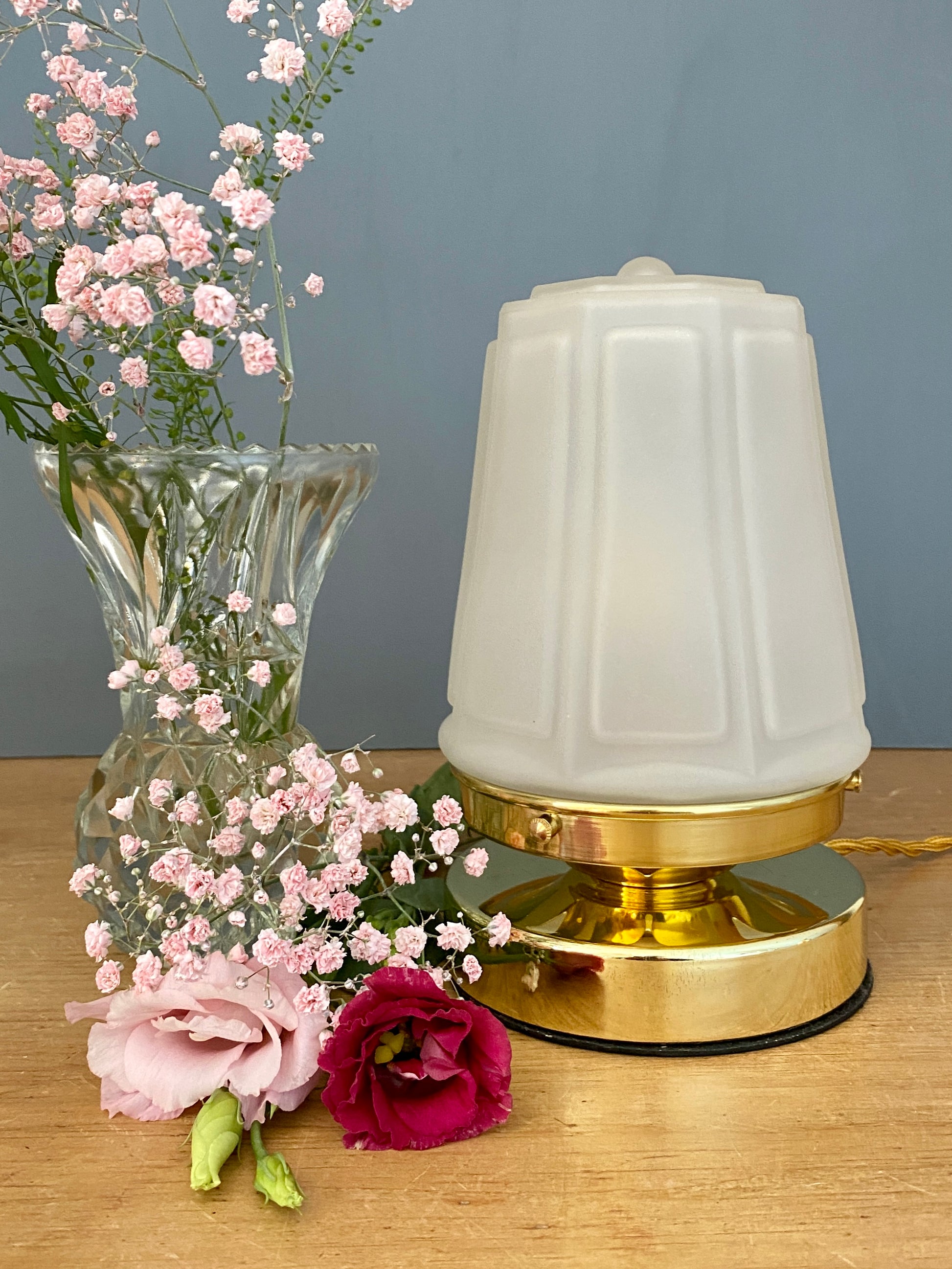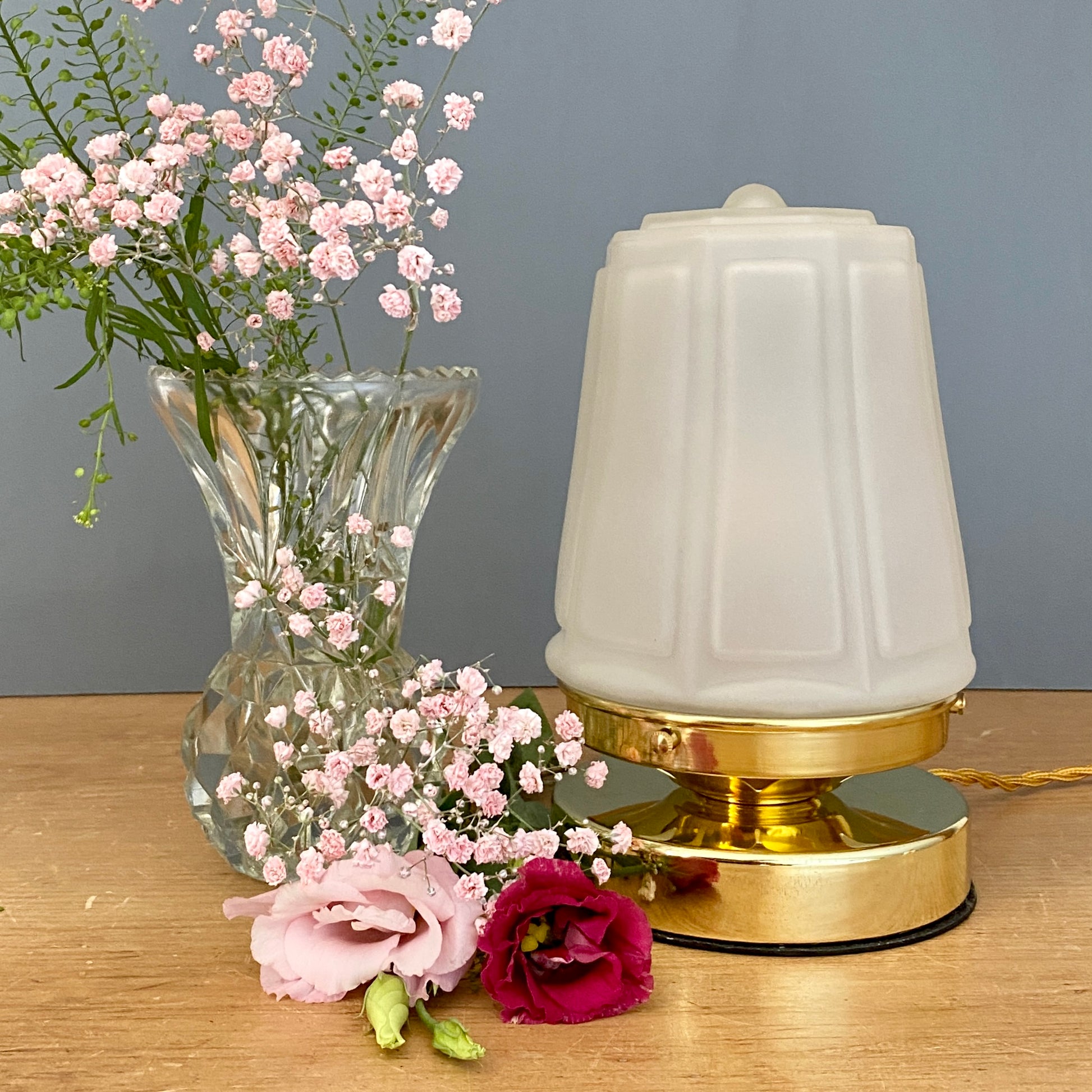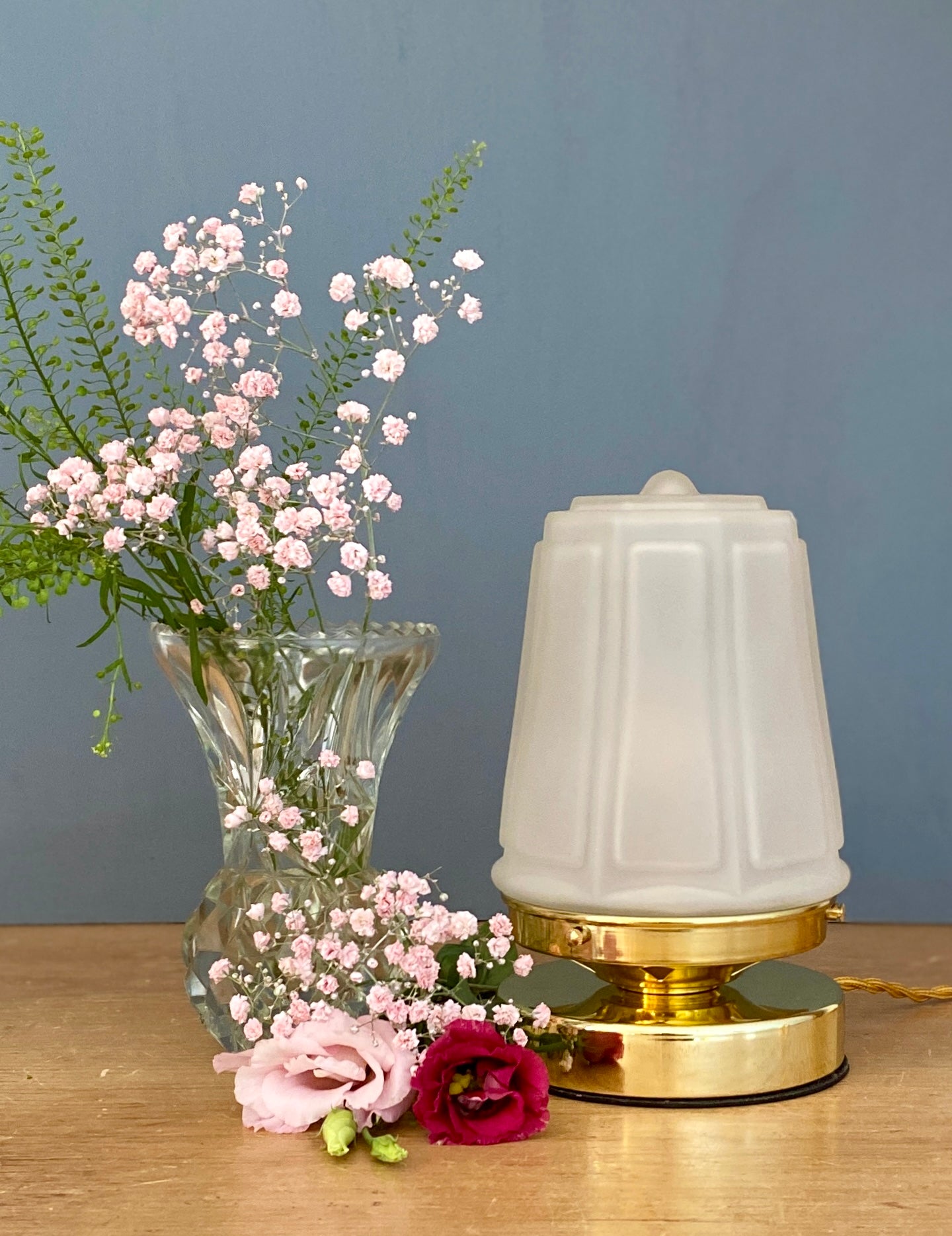 Belle lampe à poser avec globe vintage art déco en verre dépoli.