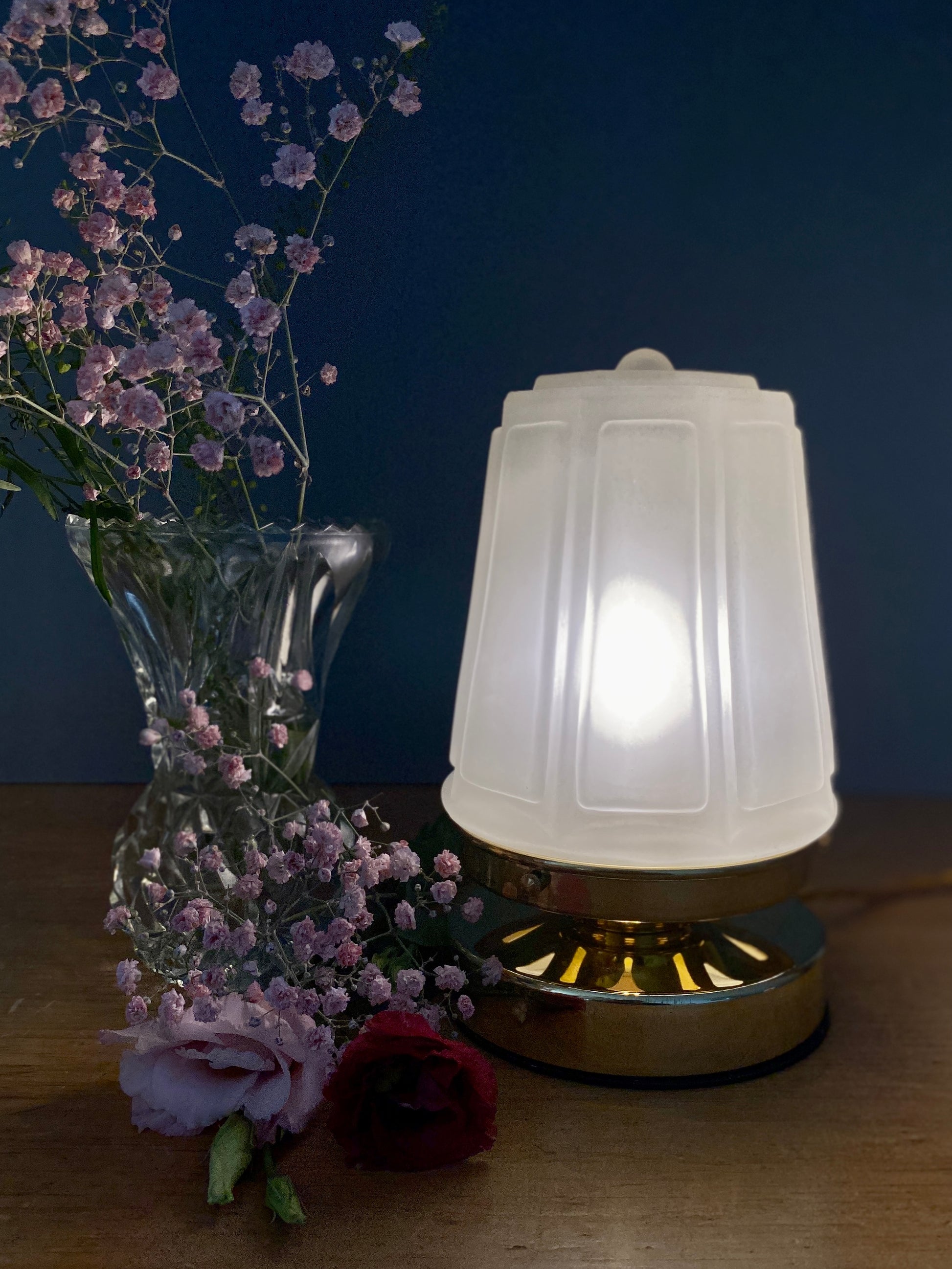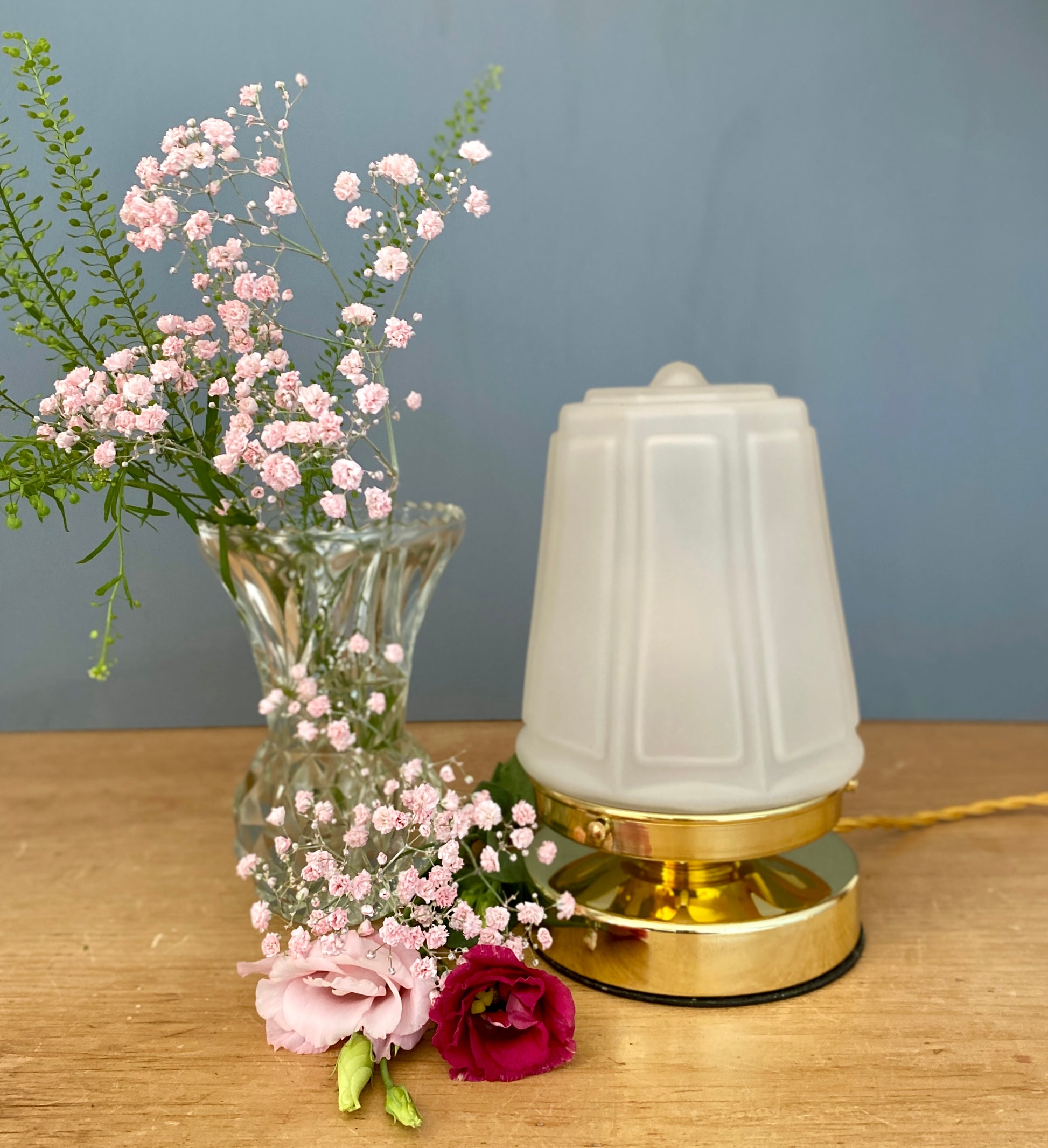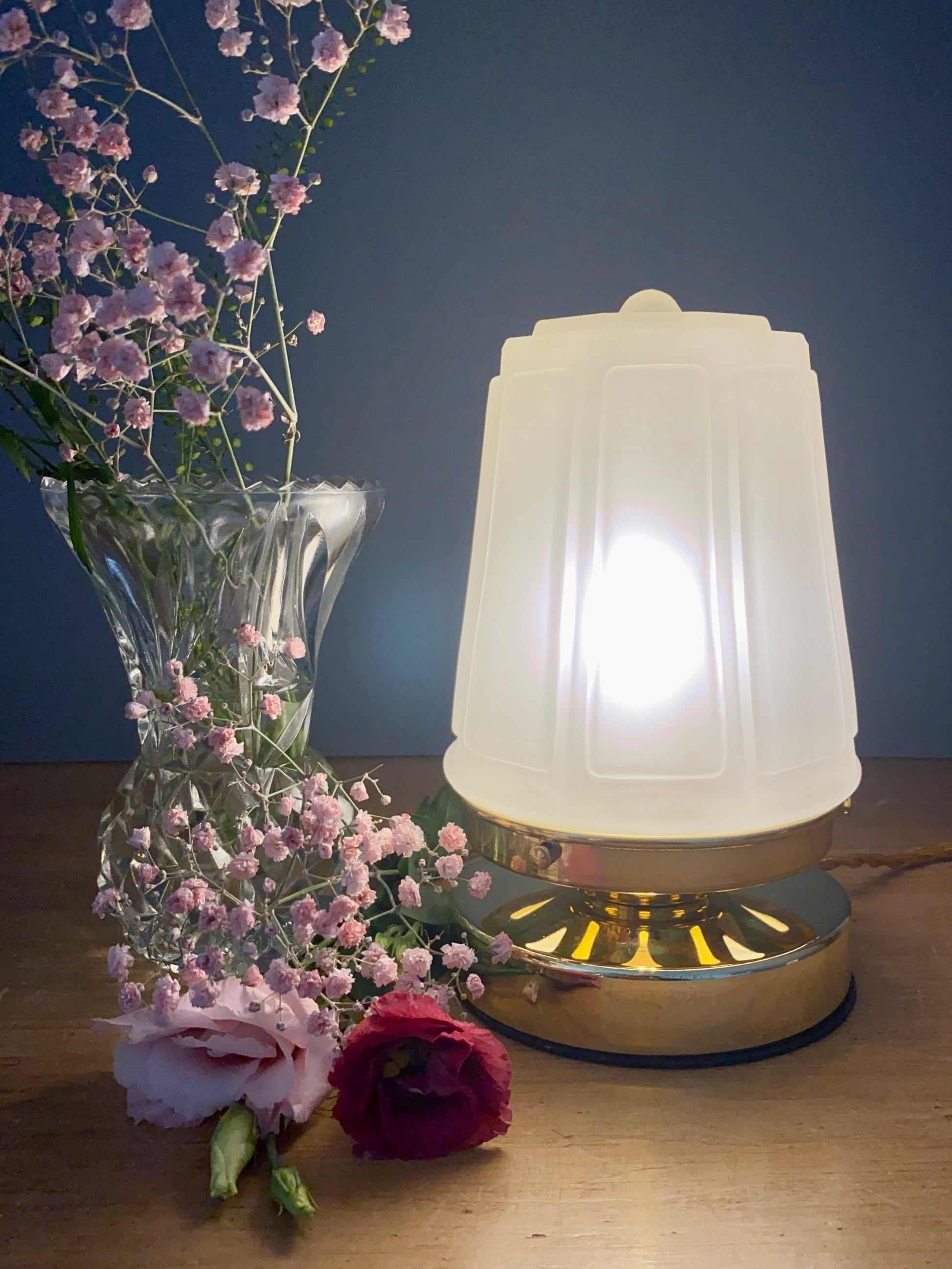 Belle lampe à poser avec globe vintage art déco en verre dépoli.
