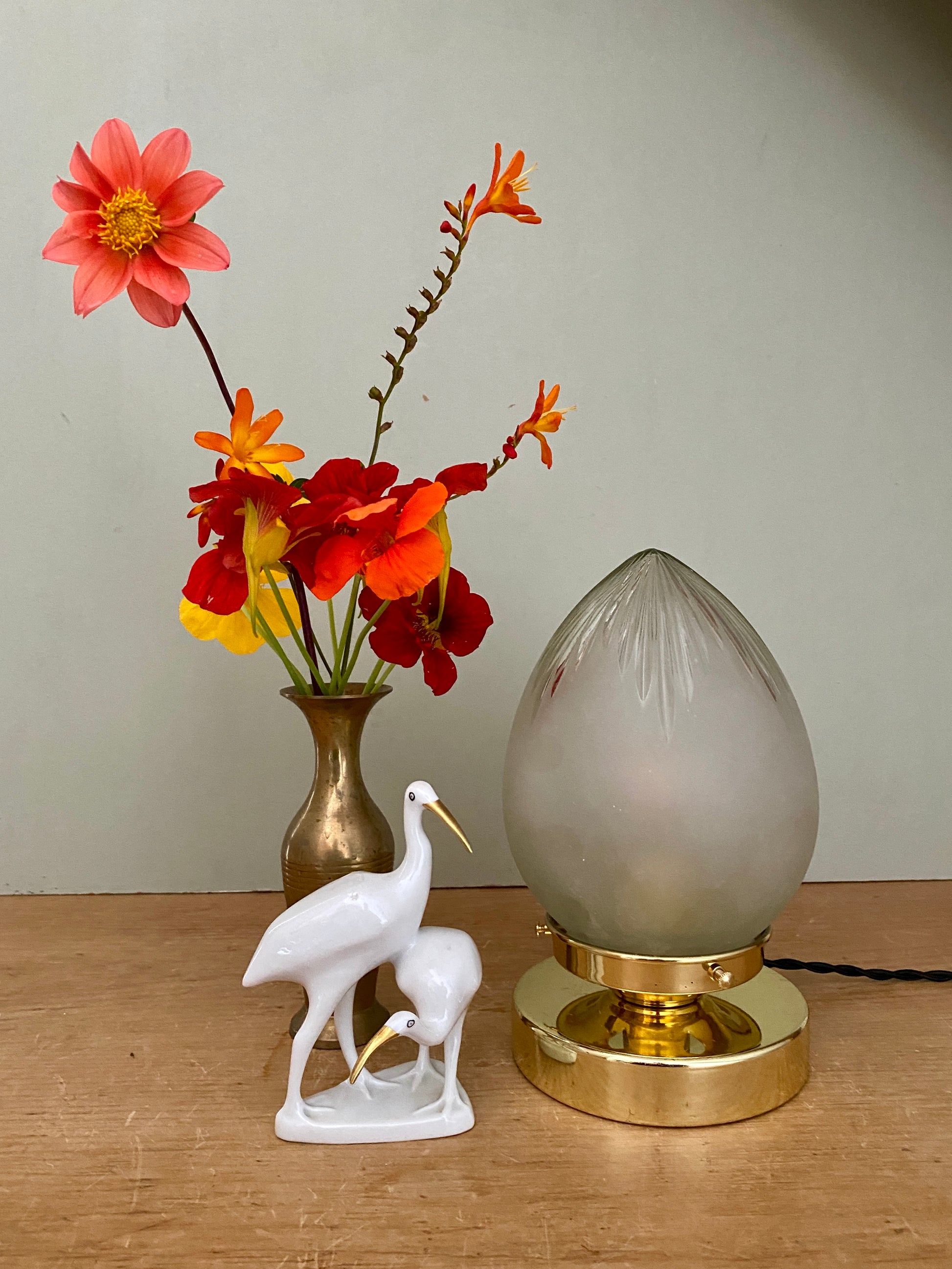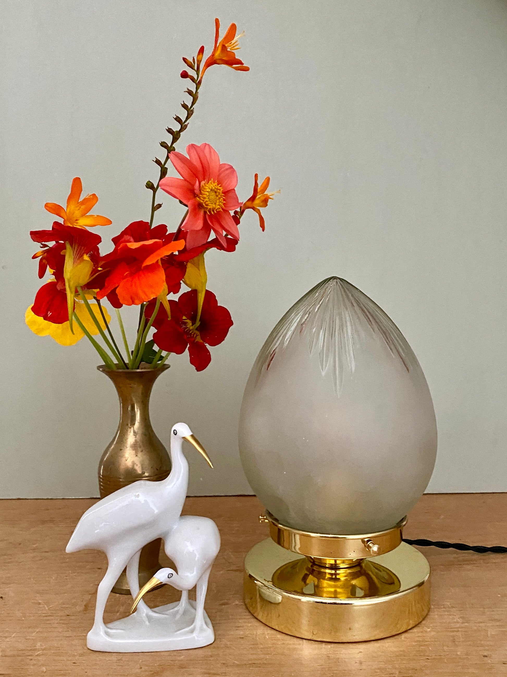 Belle lampe à poser composée d'un globe vintage en verre dépoli art déco et d'un socle en laiton et métal doré.
