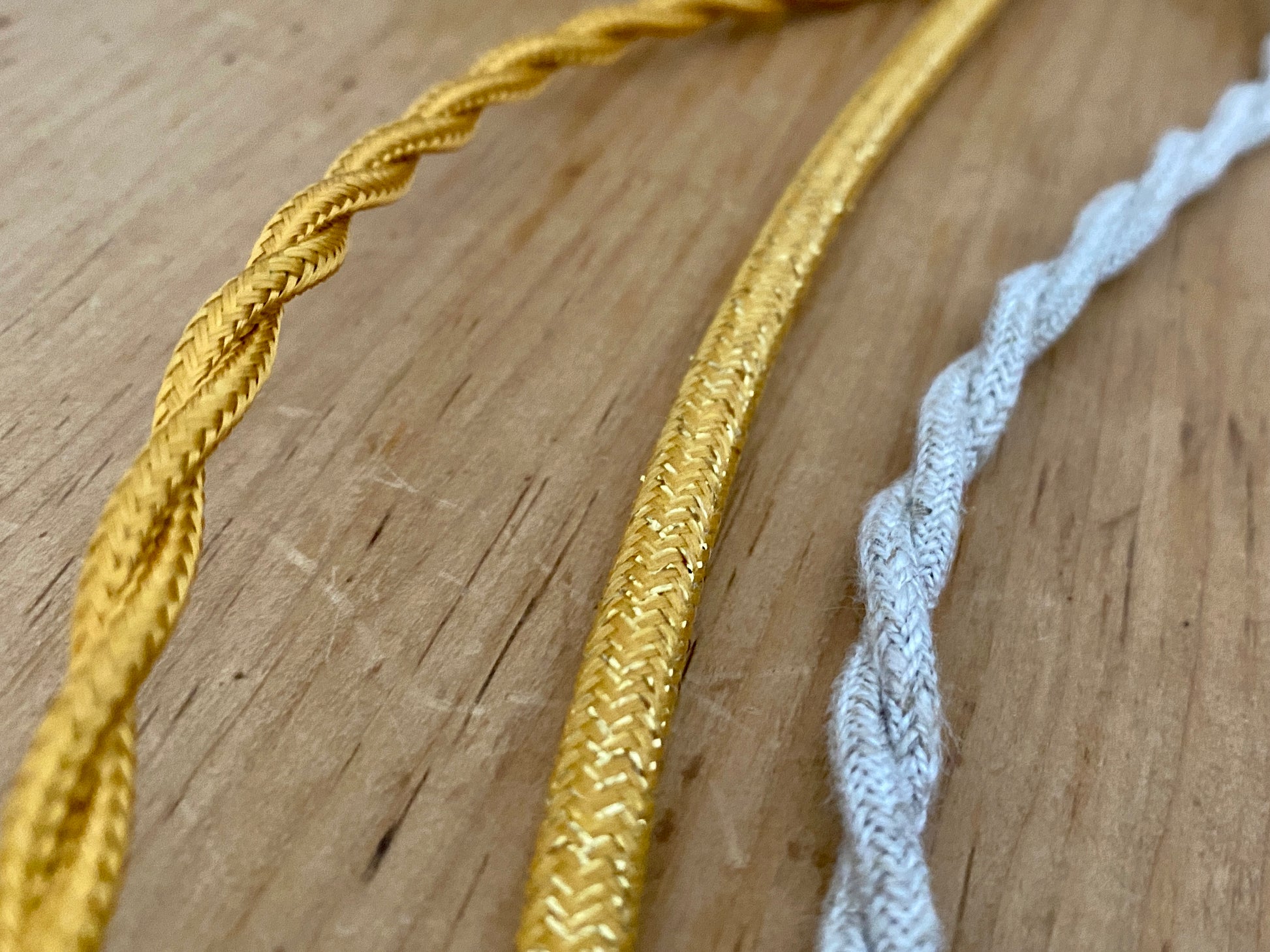 Longueur du câble 2m - couleur au choix sur demande: torsadé doré ou torsadé lin.