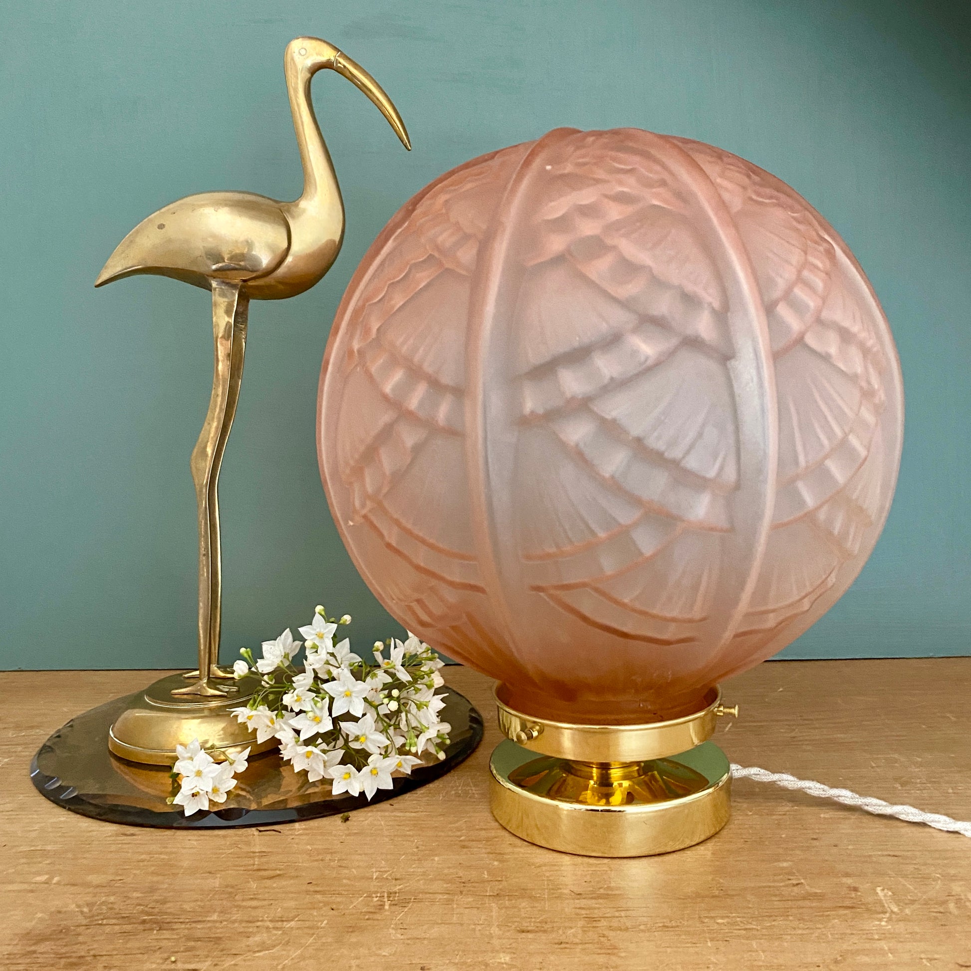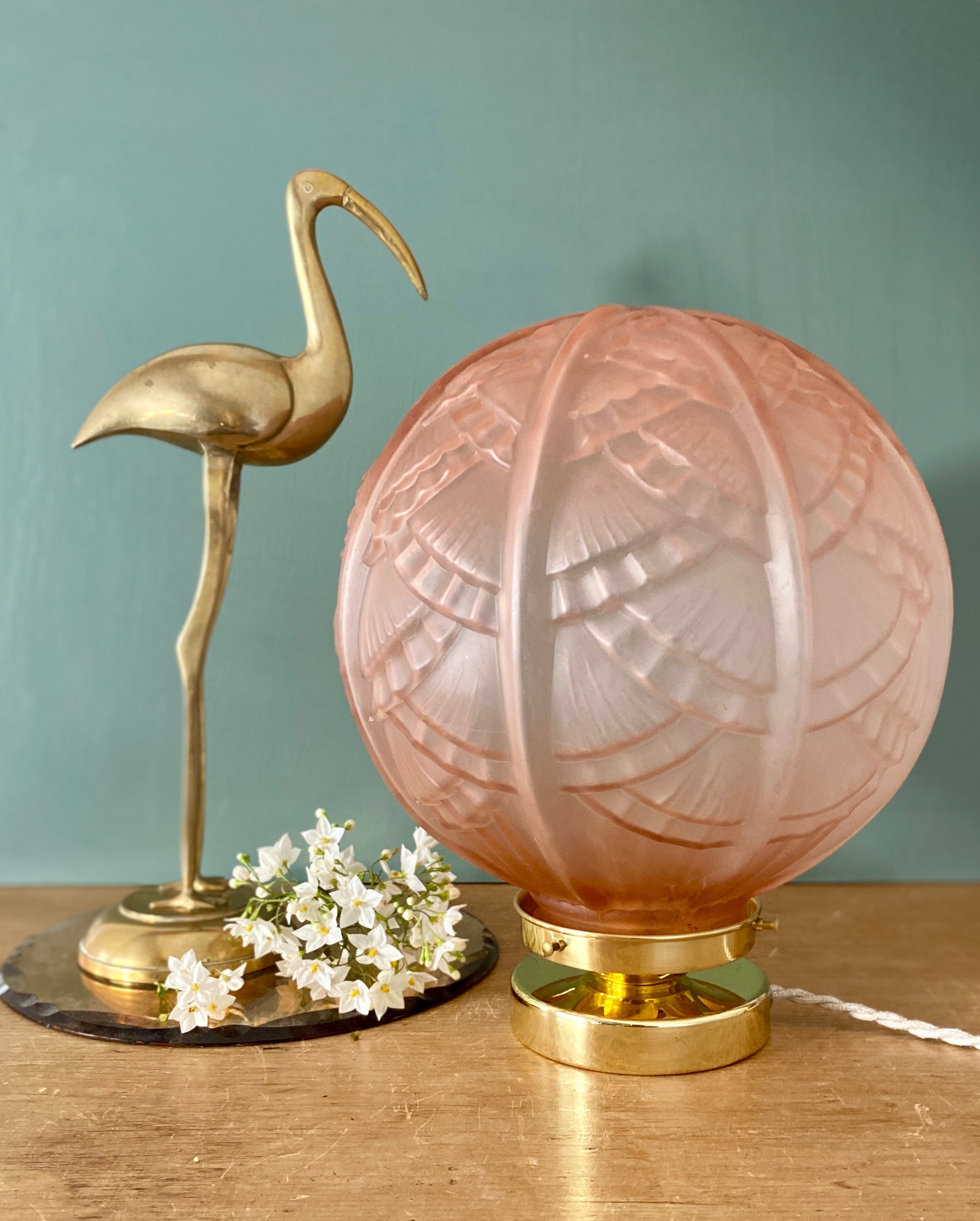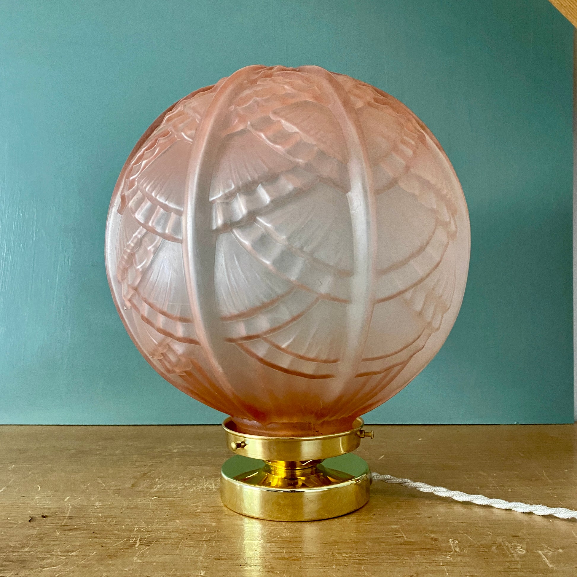 Lampe à poser globe vintage art déco XXL en verre dépoli rose