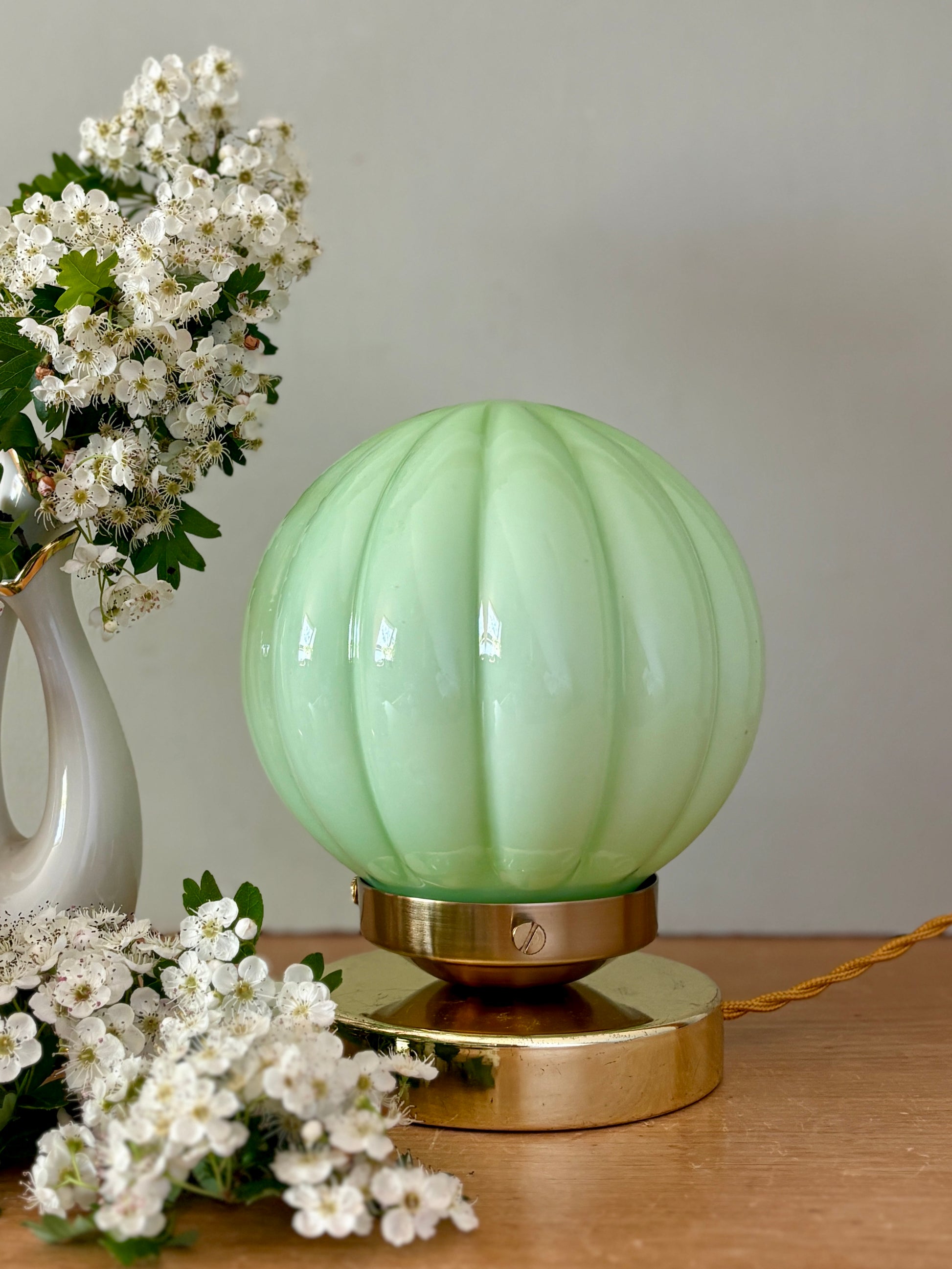 Très belle lampe à poser, globe vintage art déco en opaline vert mint.