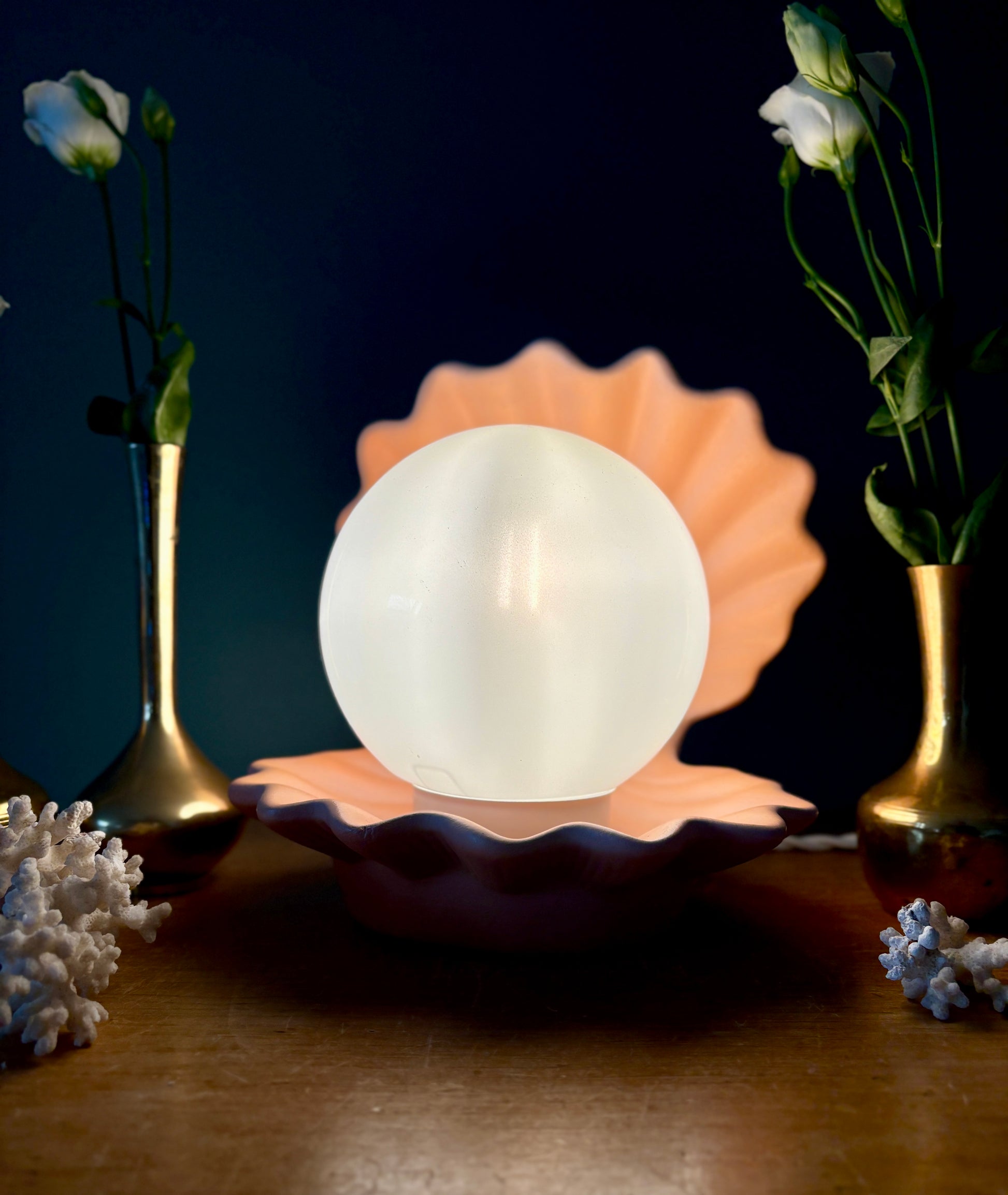 Lampe vintage en forme de coquillage en céramique et opaline.