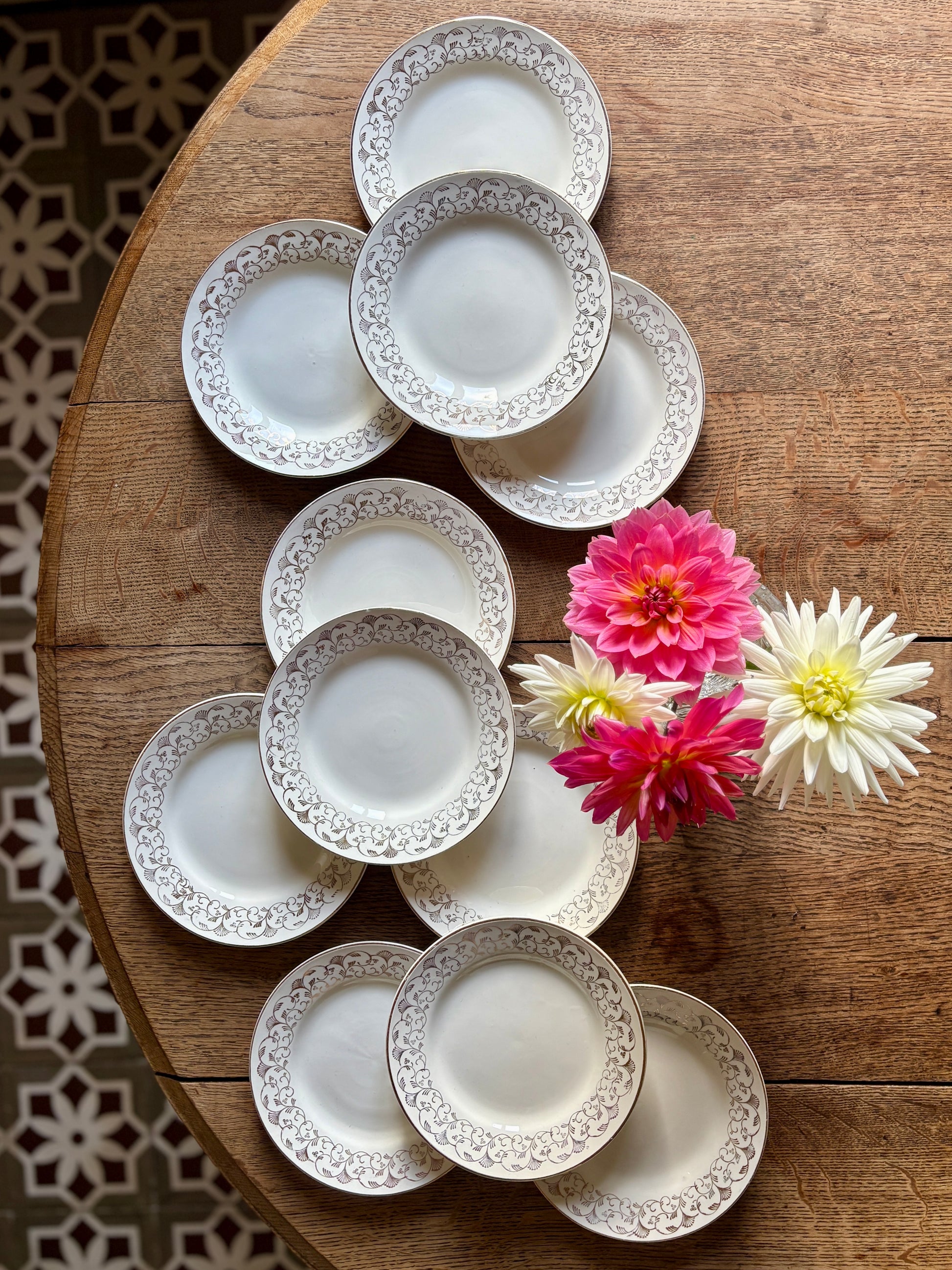 Lot de 11 assiettes à dessert vintage Sarreguemines en porcelaine opaque