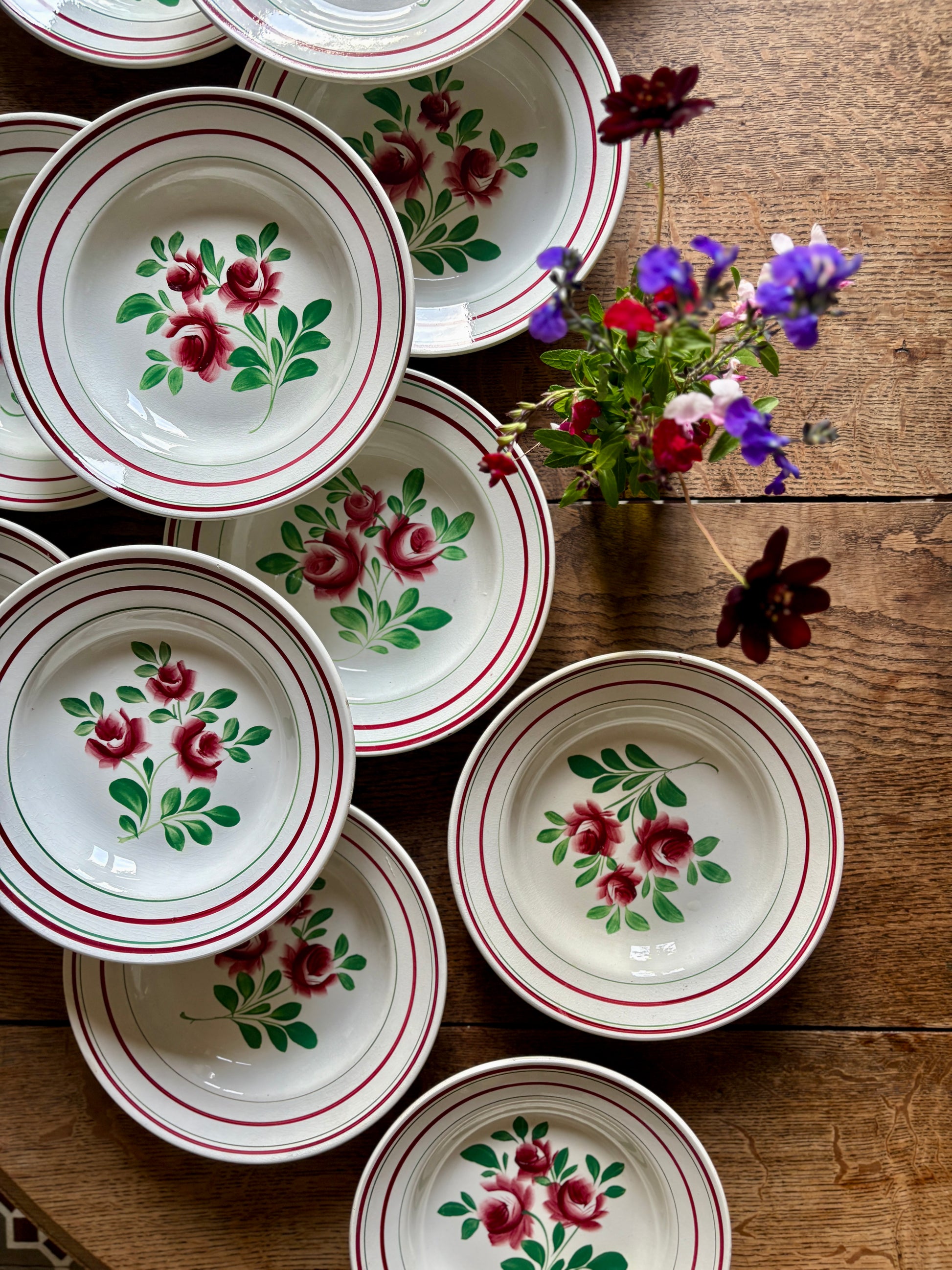 Lot de 12 assiettes creuses vintage - Les Roses -