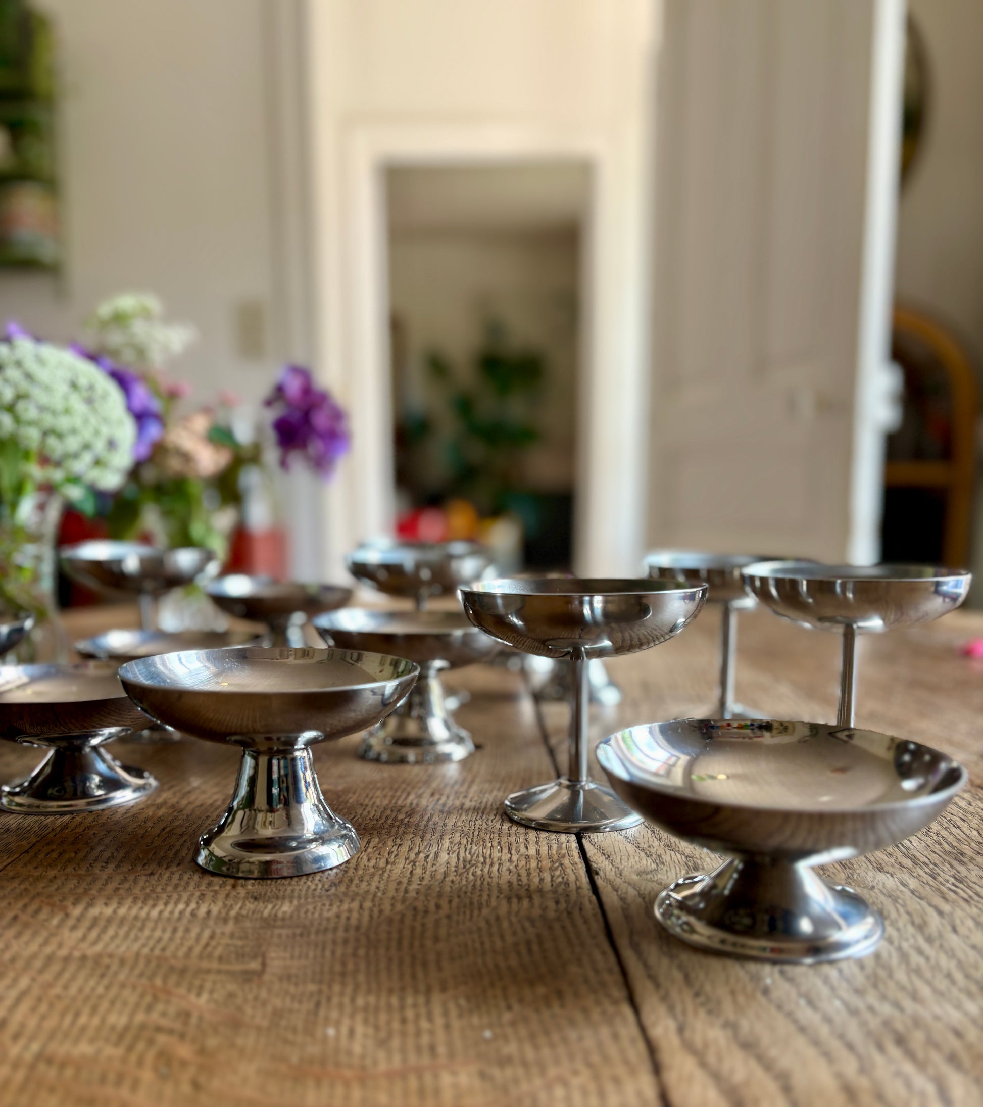Lot de 16 coupes à dessert vintage en inox