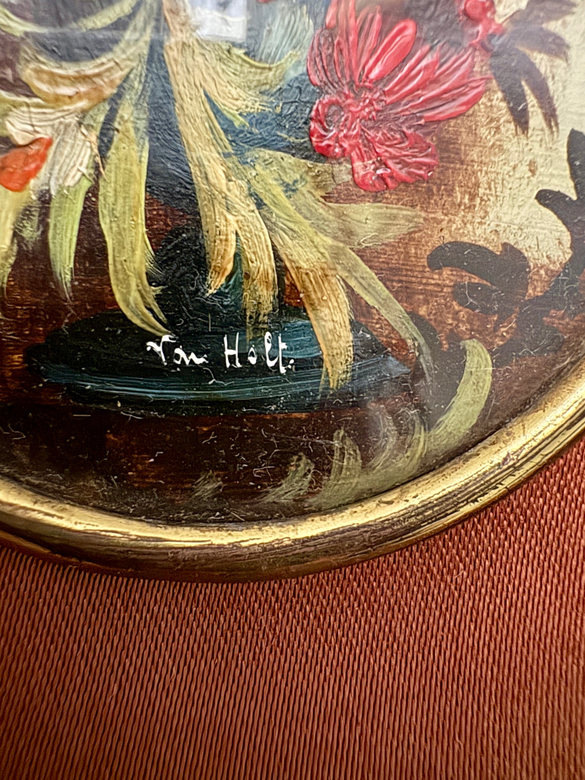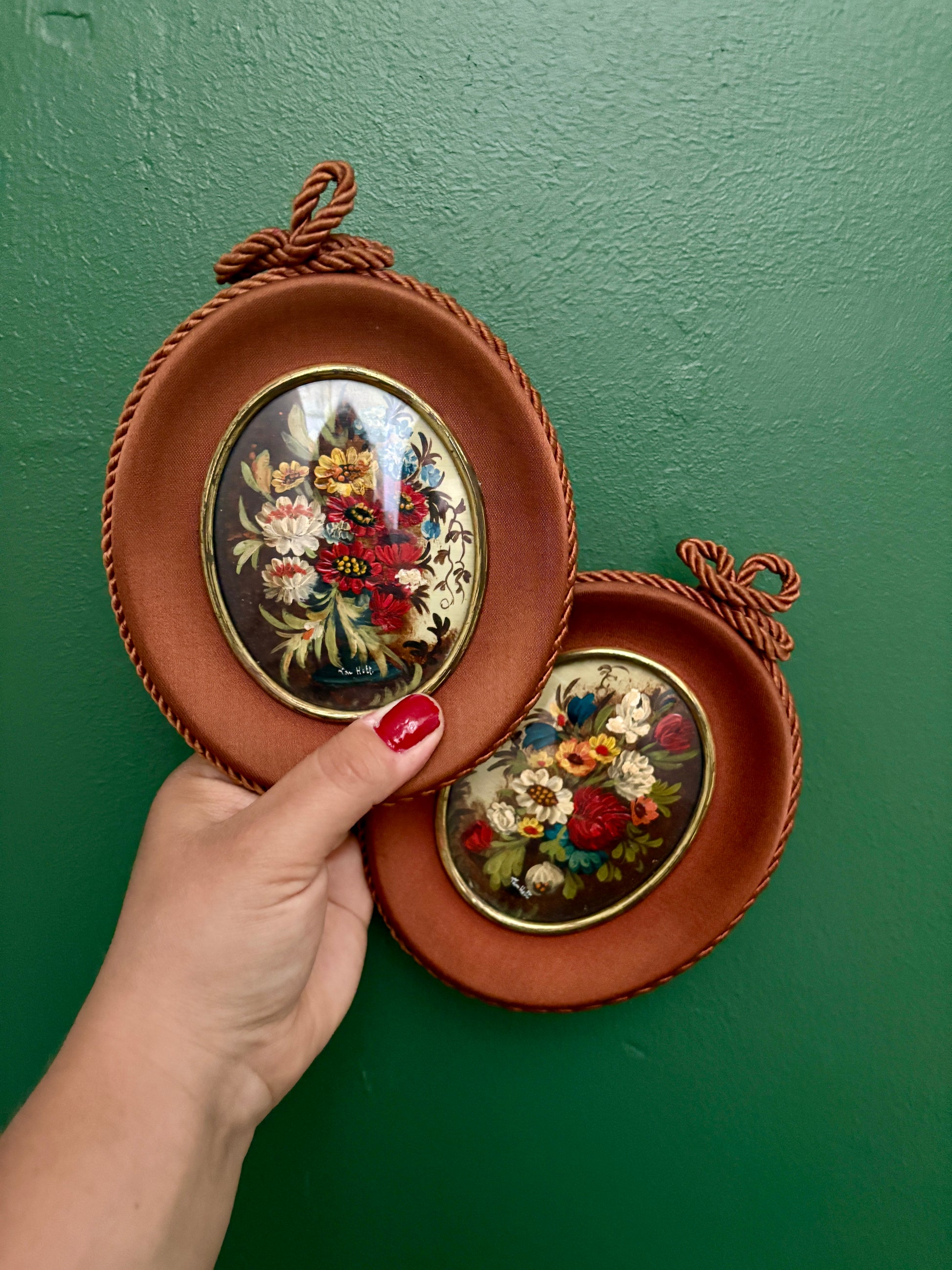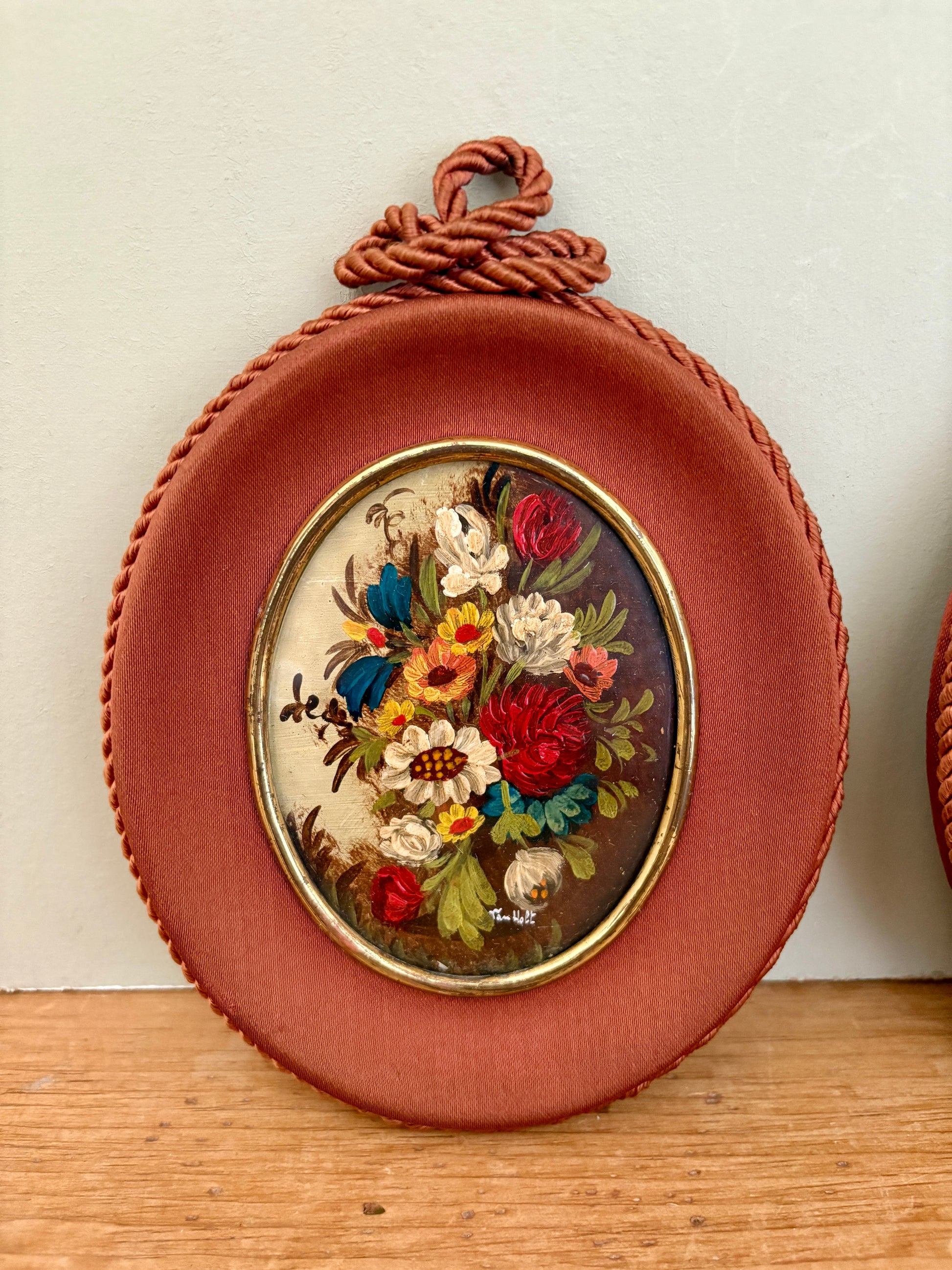 Lot de 2 petits cadres anciens et peintures de fleurs