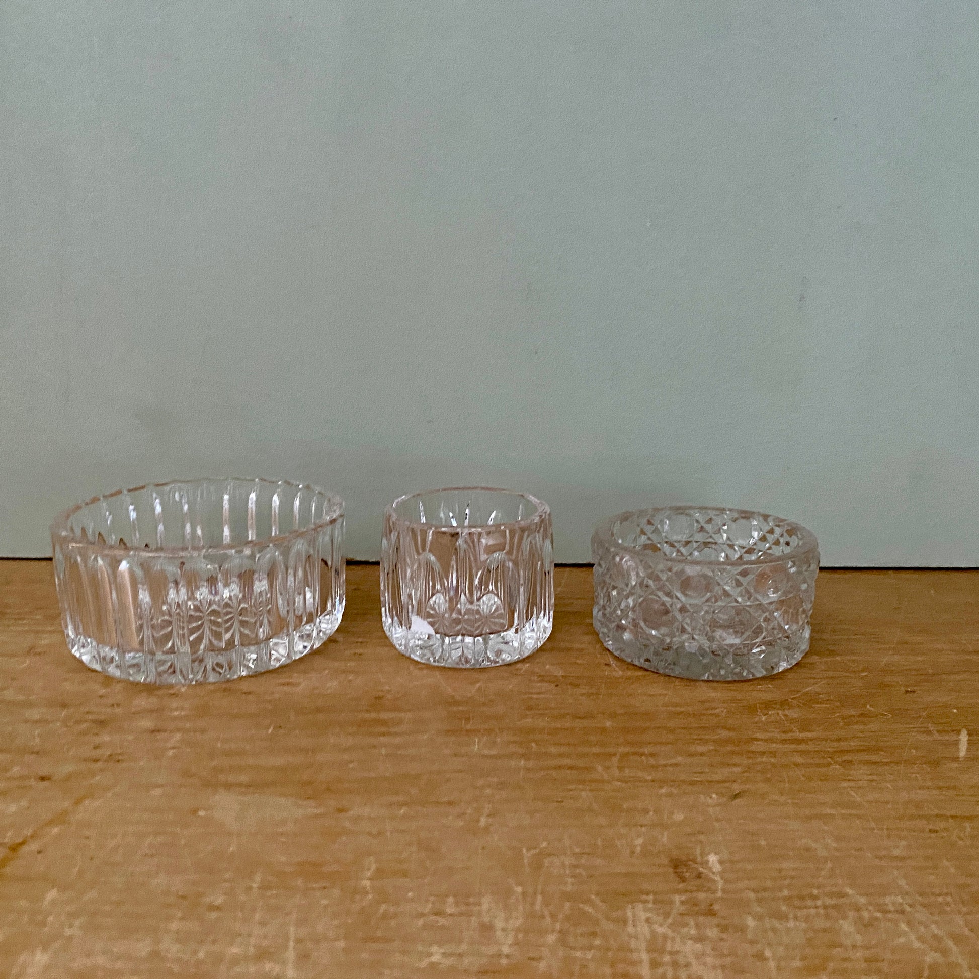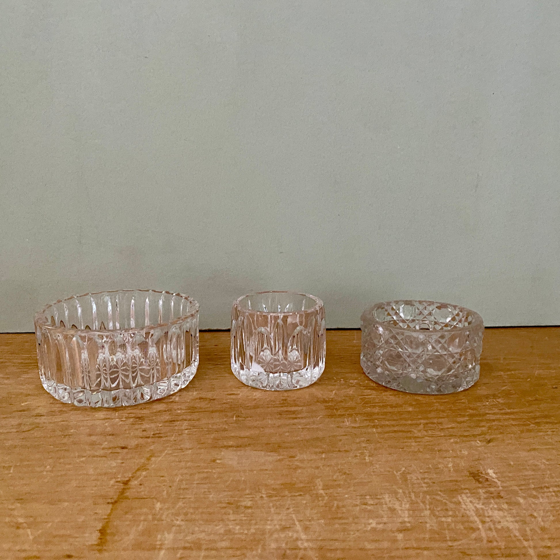 Joli lot des trois ramequins ronds en verre ciselé vintage.