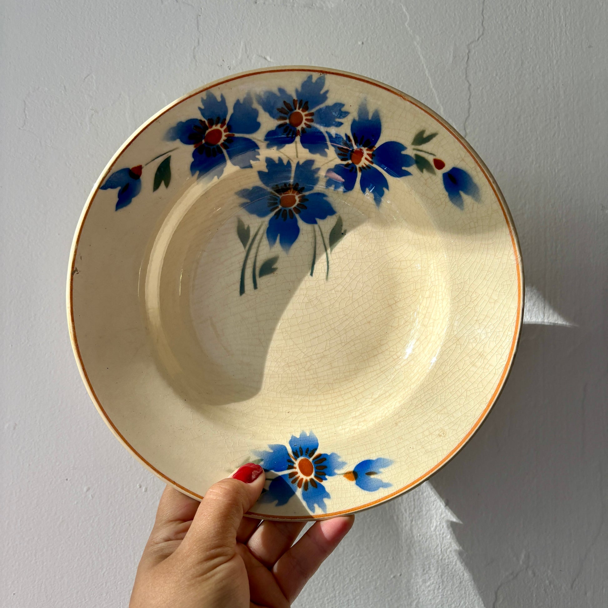 Très joli lot de 6 assiettes creuses vintage, décors de bleuets.