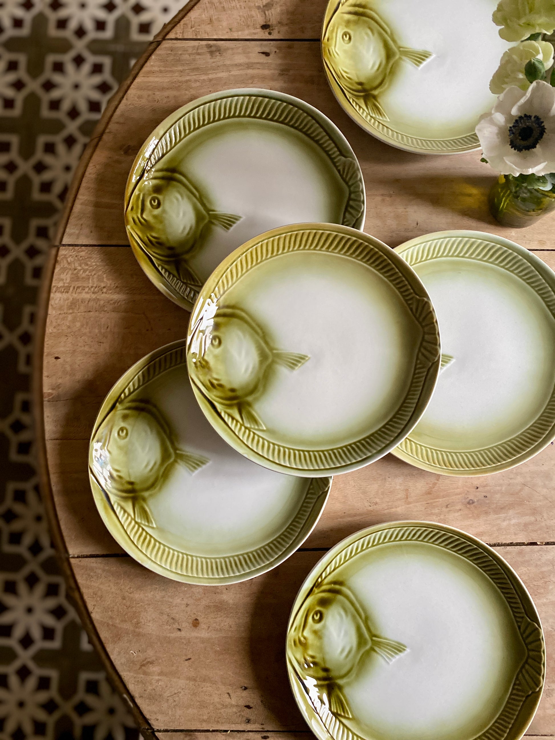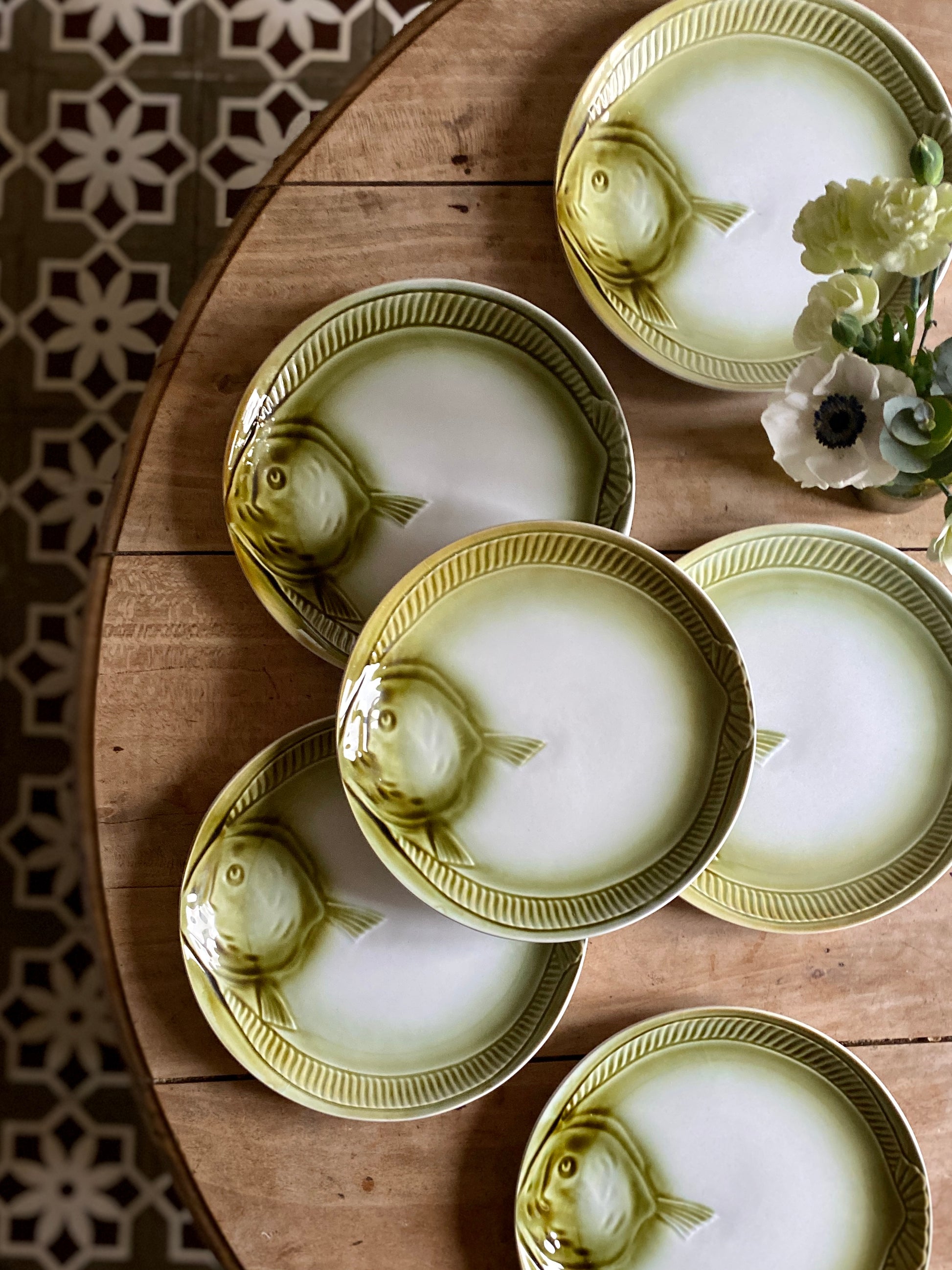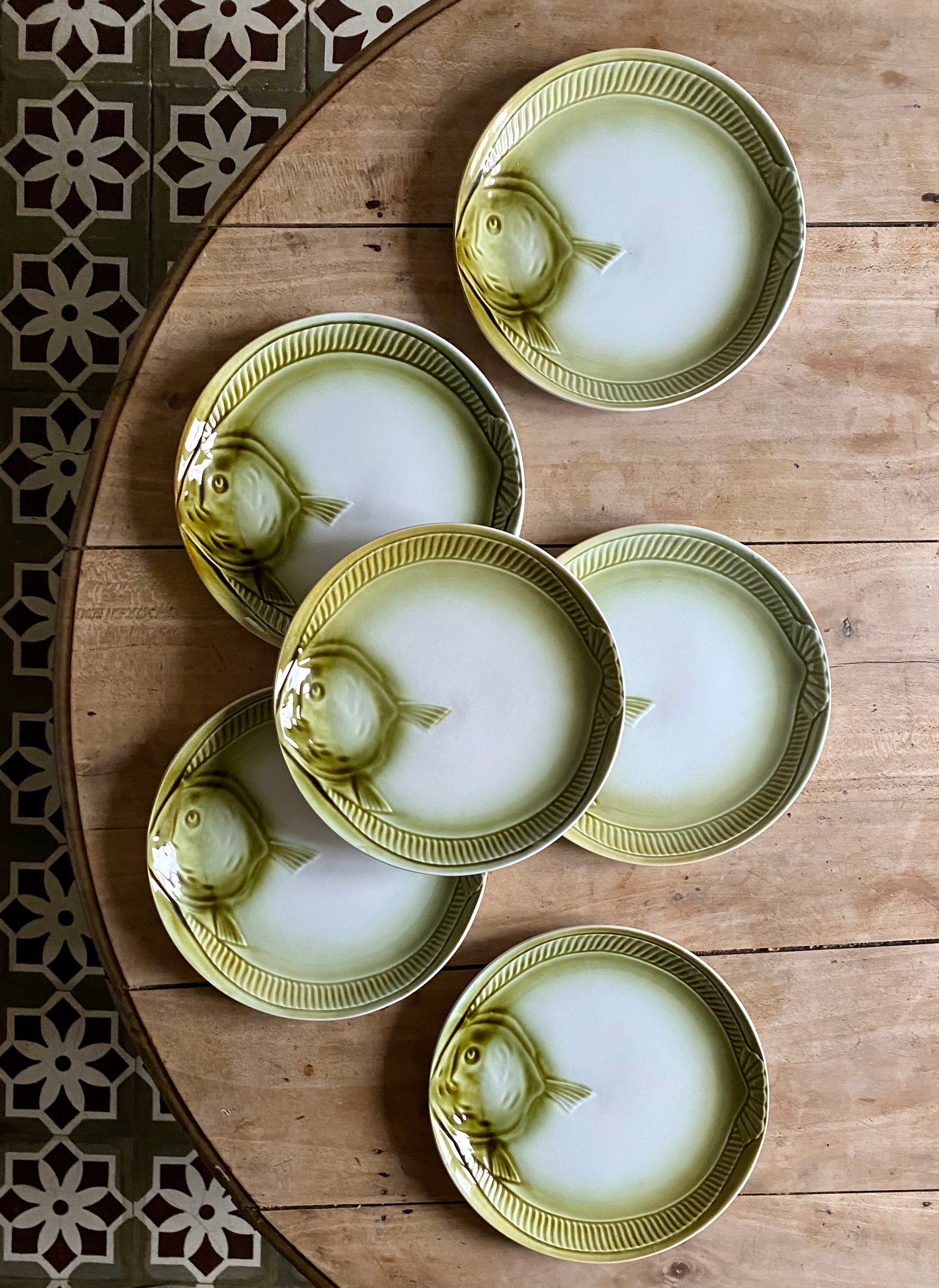 Lot de 6 assiettes plates vintage poisson de Moulin de Loups