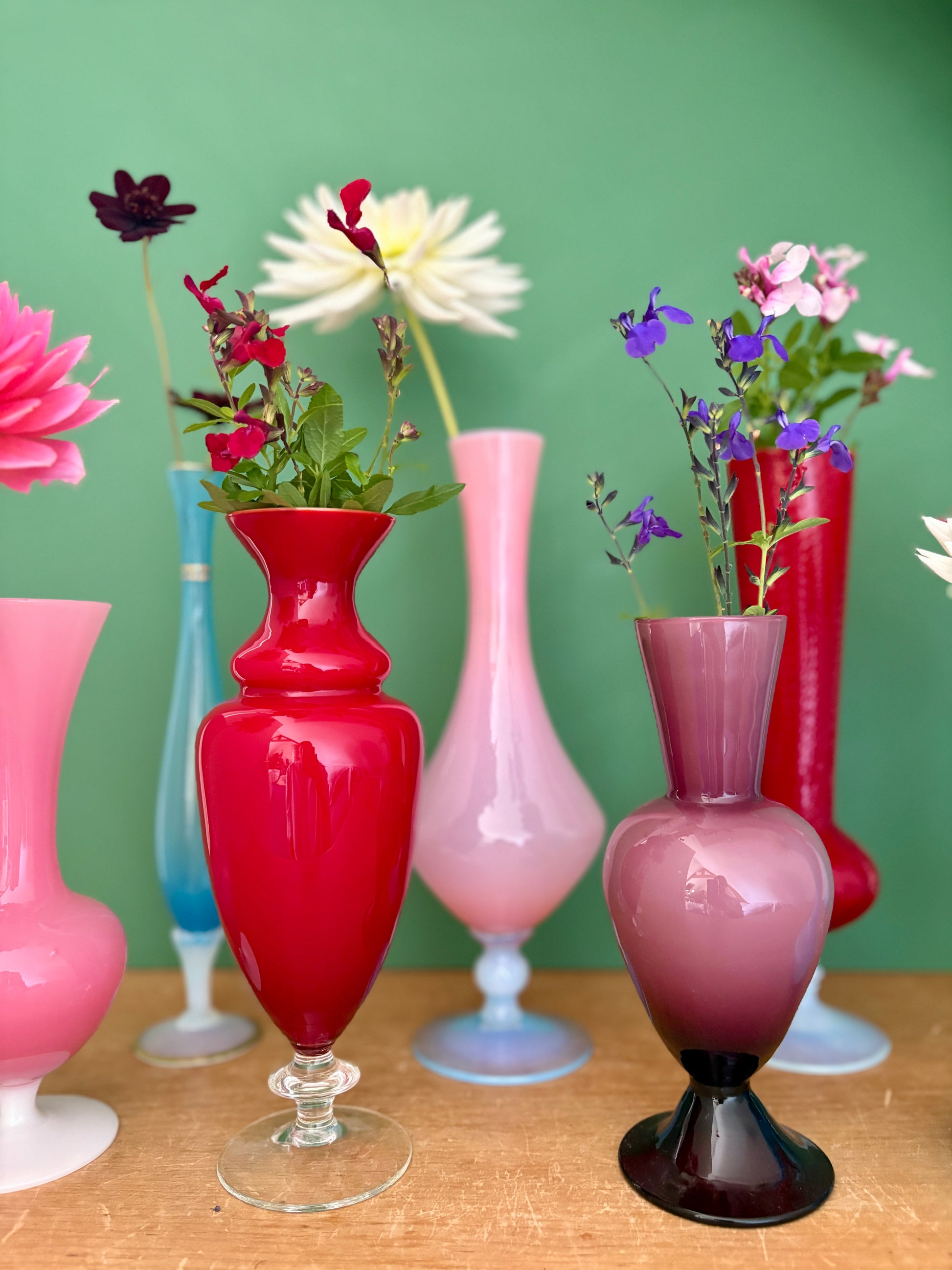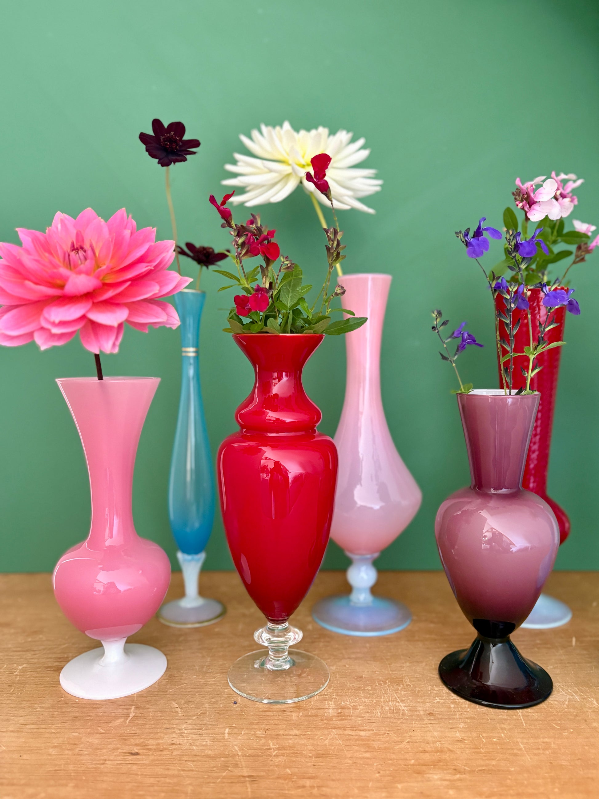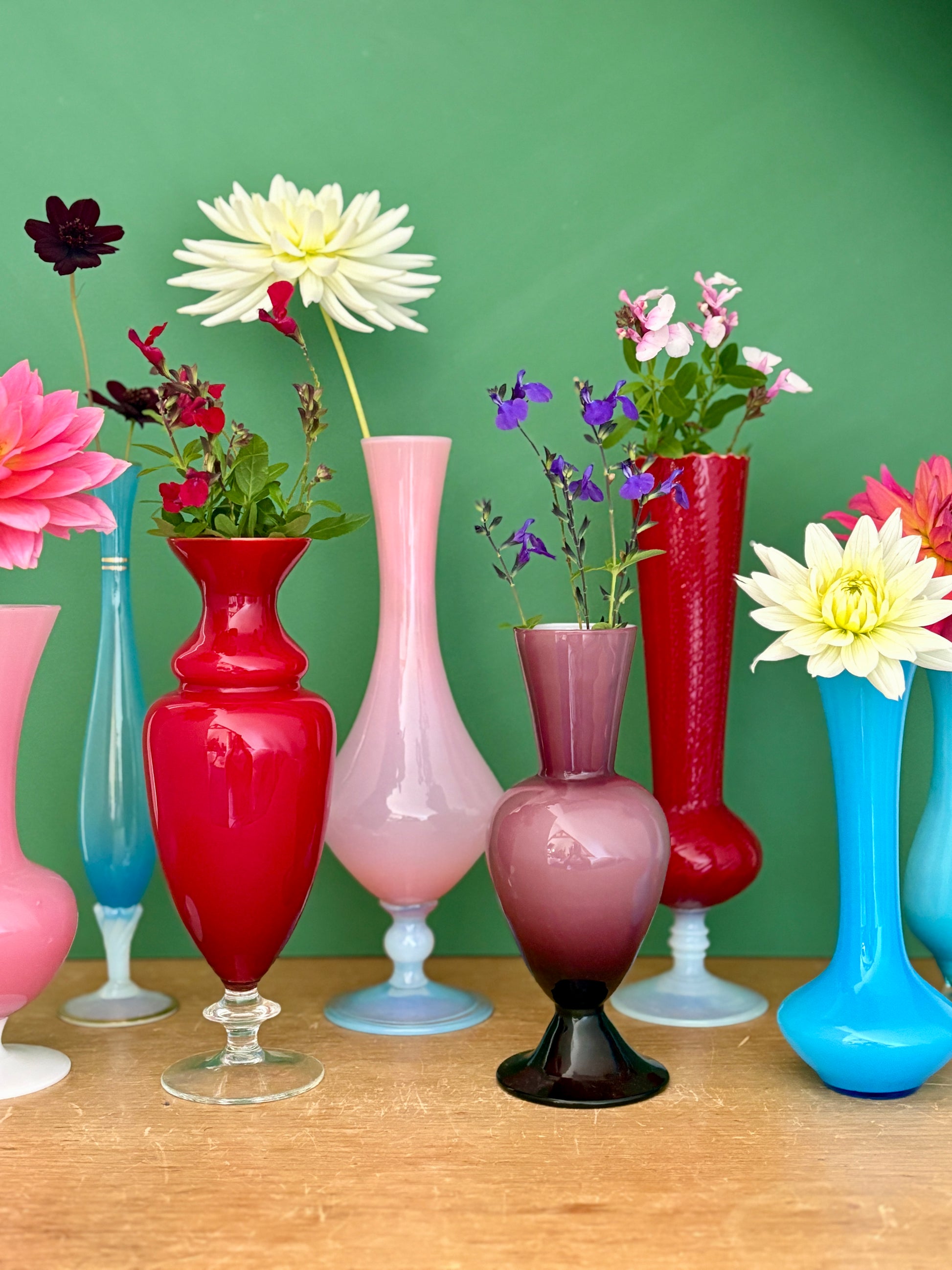 Superbe lot de soliflores vintage en verre et opaline.