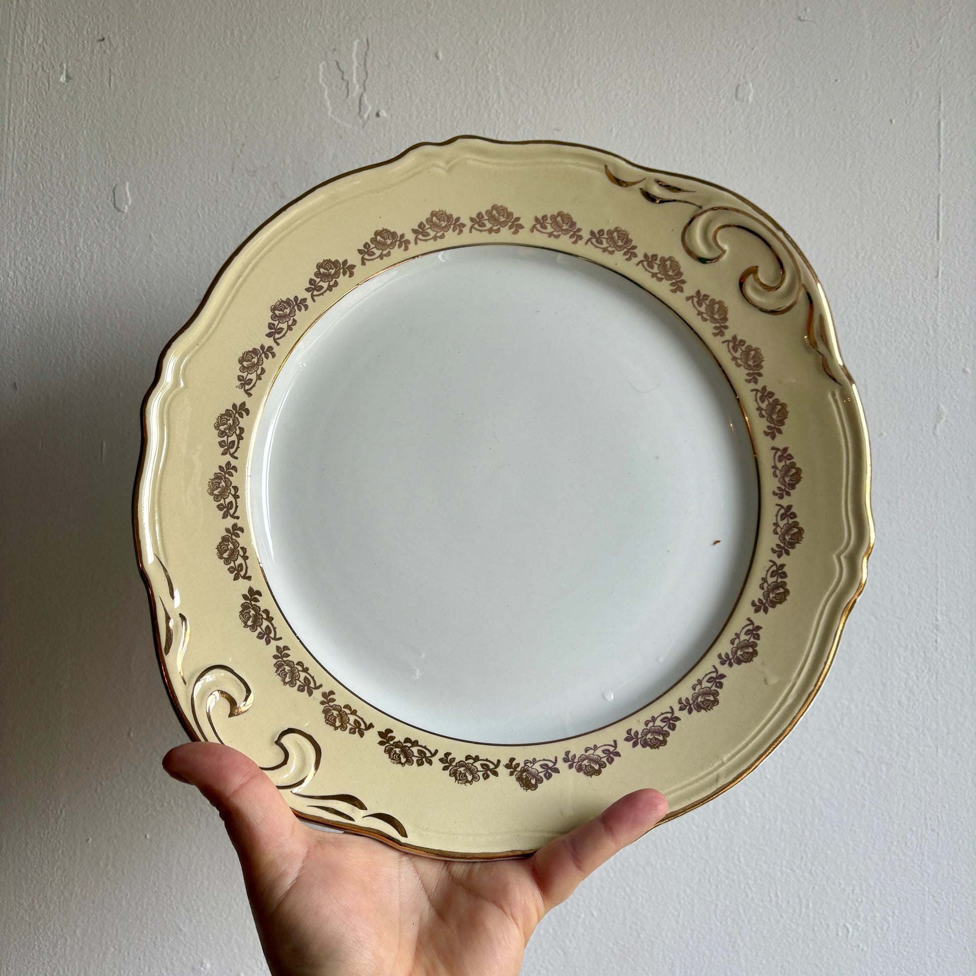 Service à gâteau vintage l'Amandinoise jaune et or