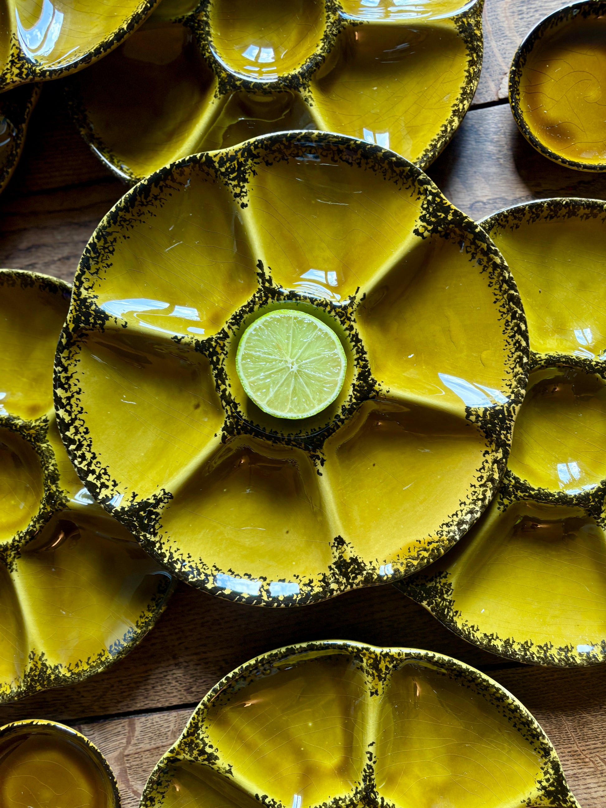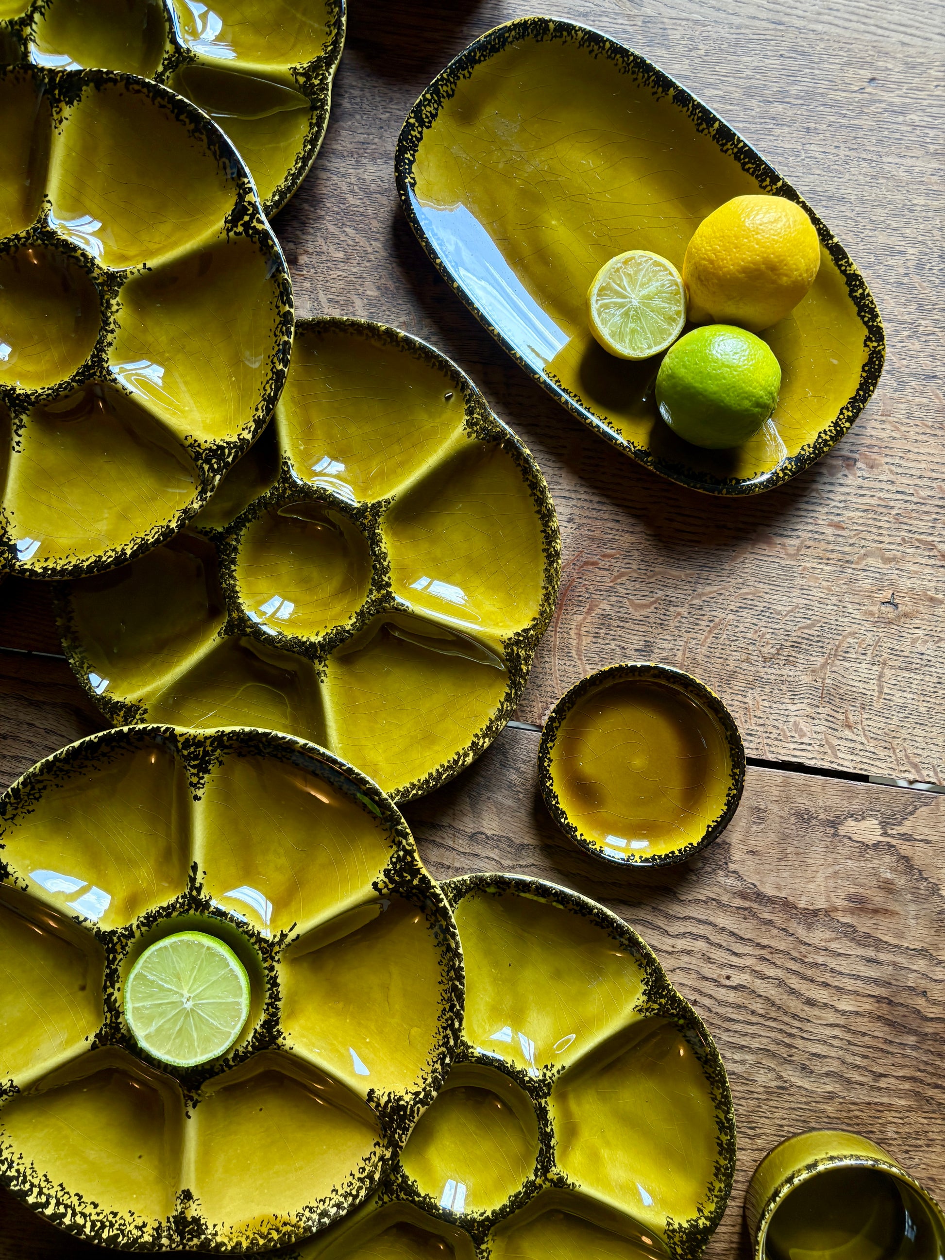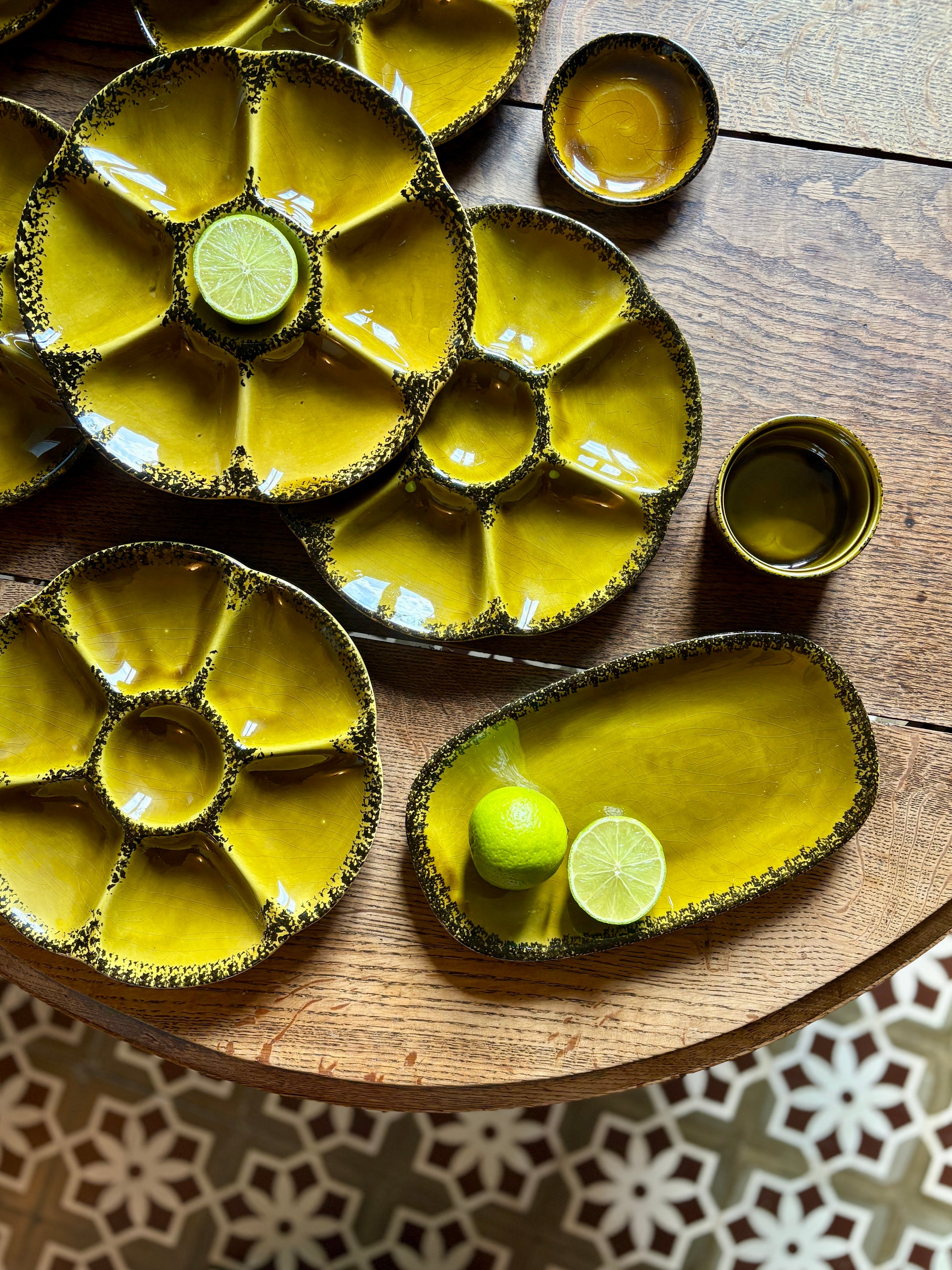 Le lot comprend 8 assiettes en reliefs, kaki.