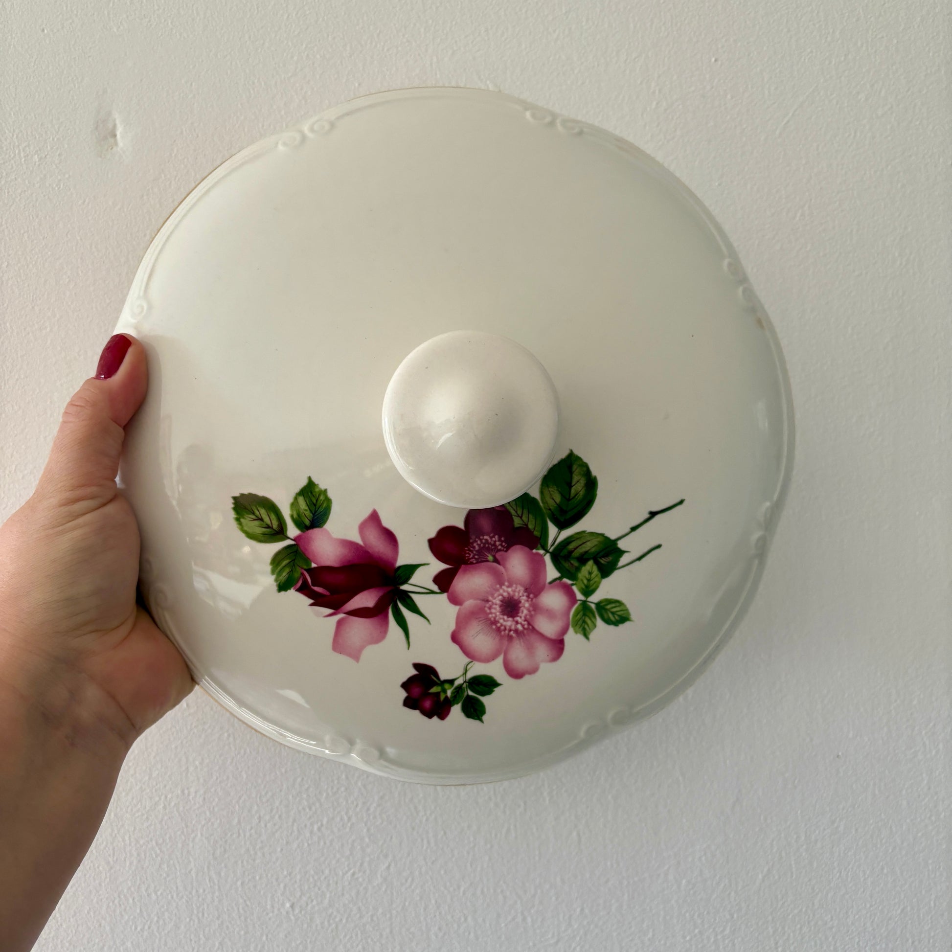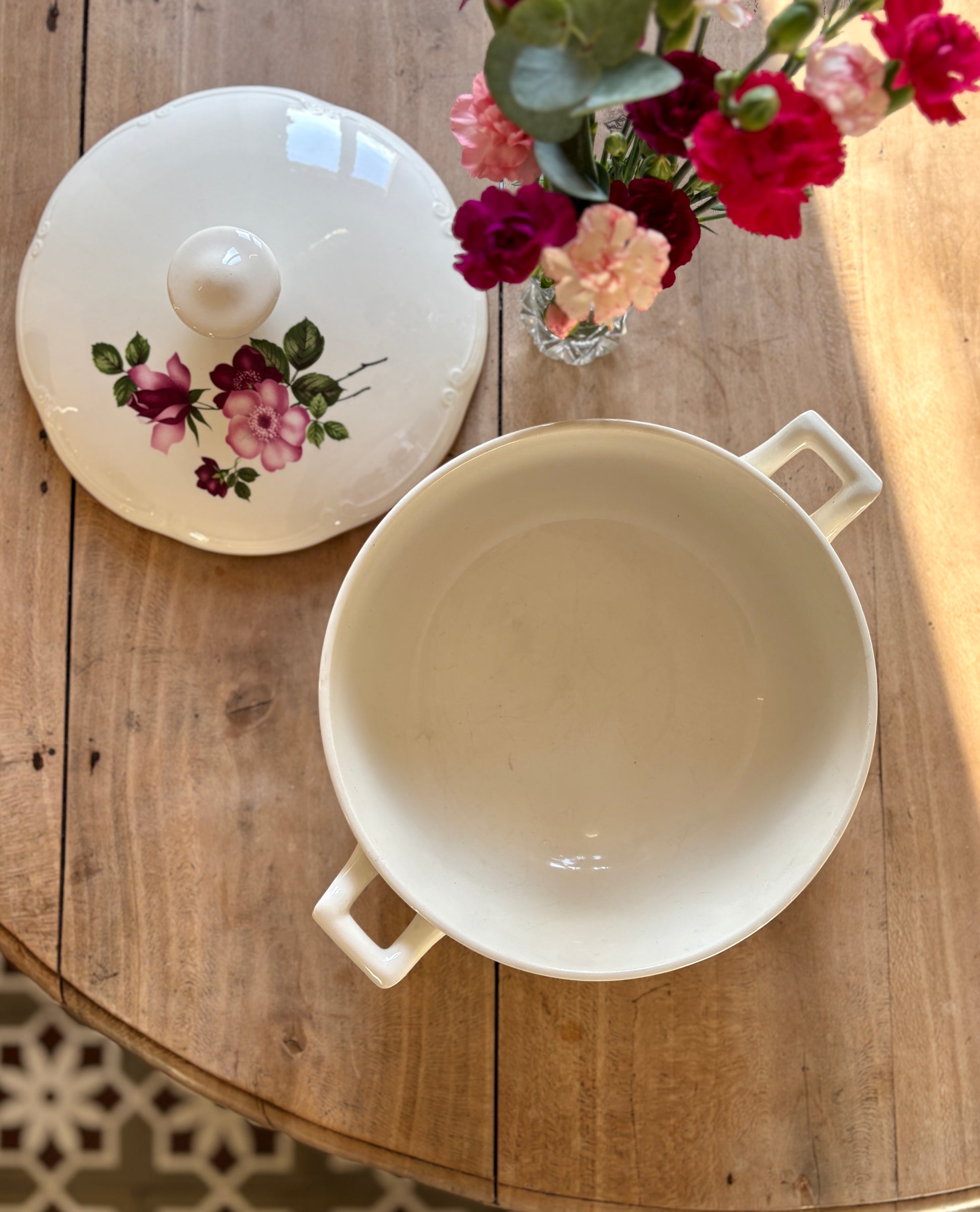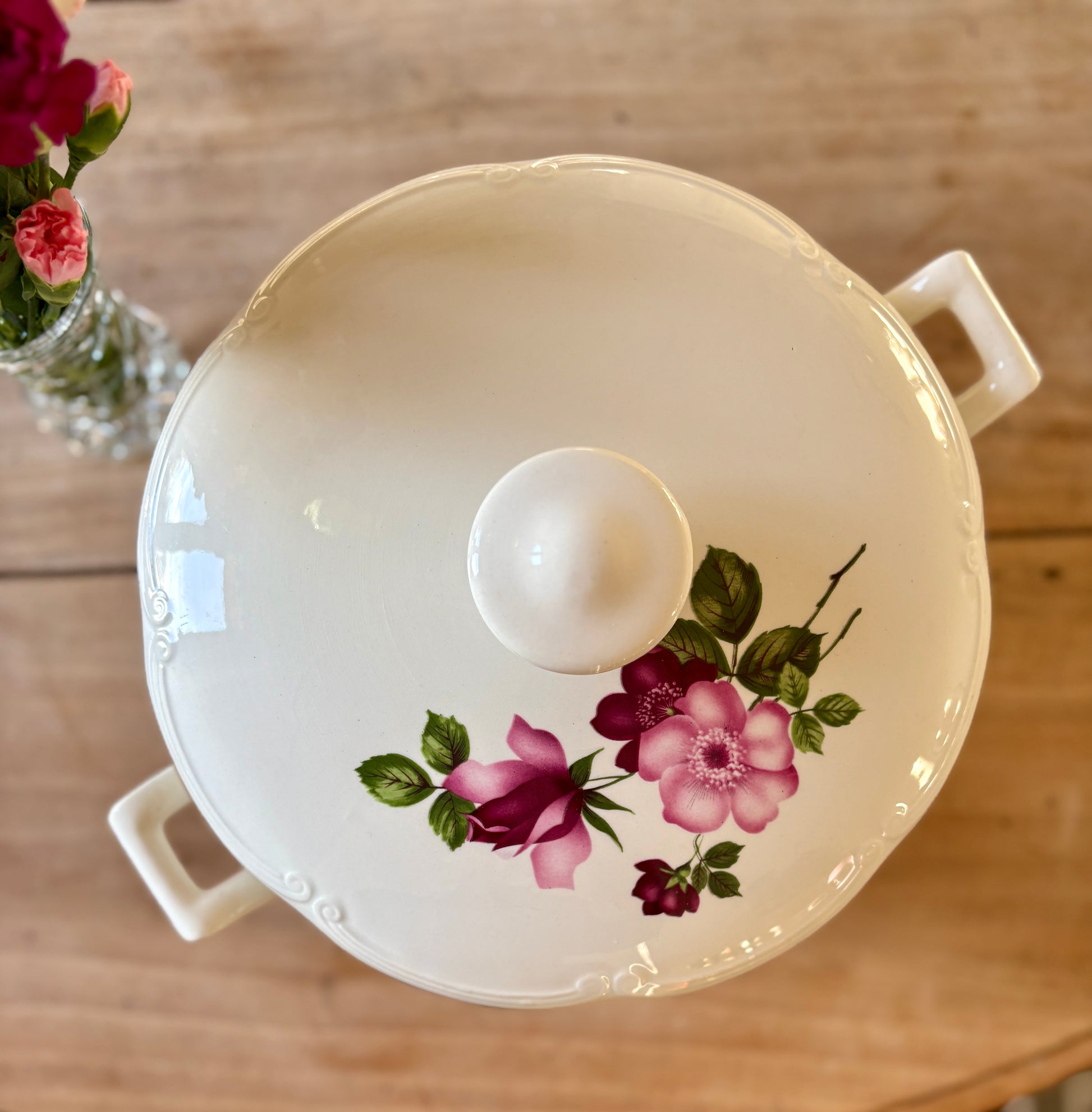 Modèle Chinon de Gien. Décors de fleurs dans les tons roses.