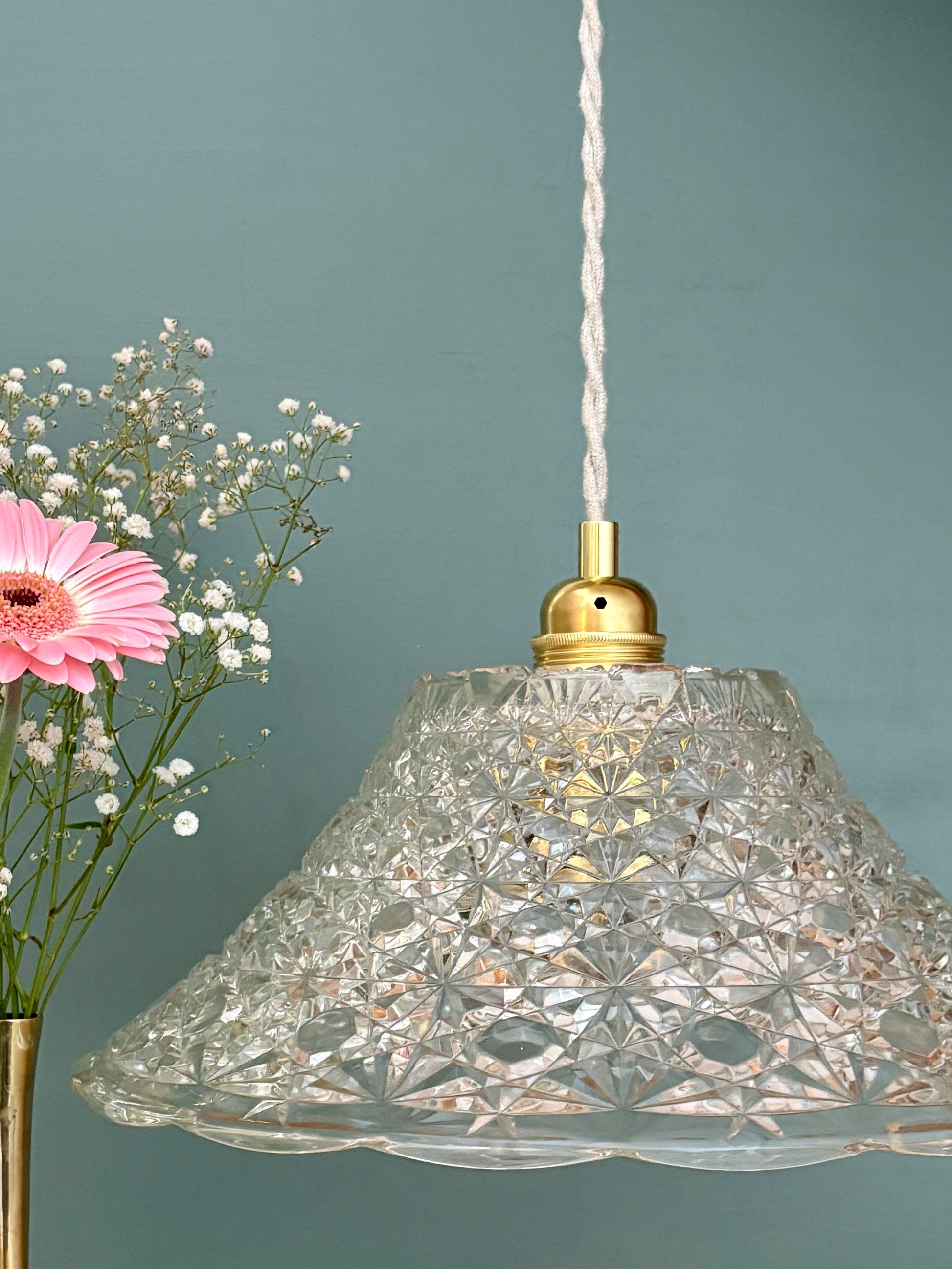 Suspension abat-jour vintage en verre moulé - collection vaisselle -