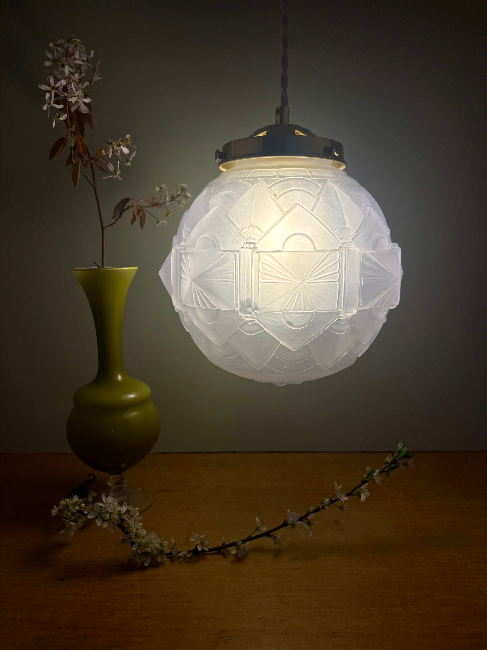 Très belle suspension avec globe vintage art déco en verre dépoli.