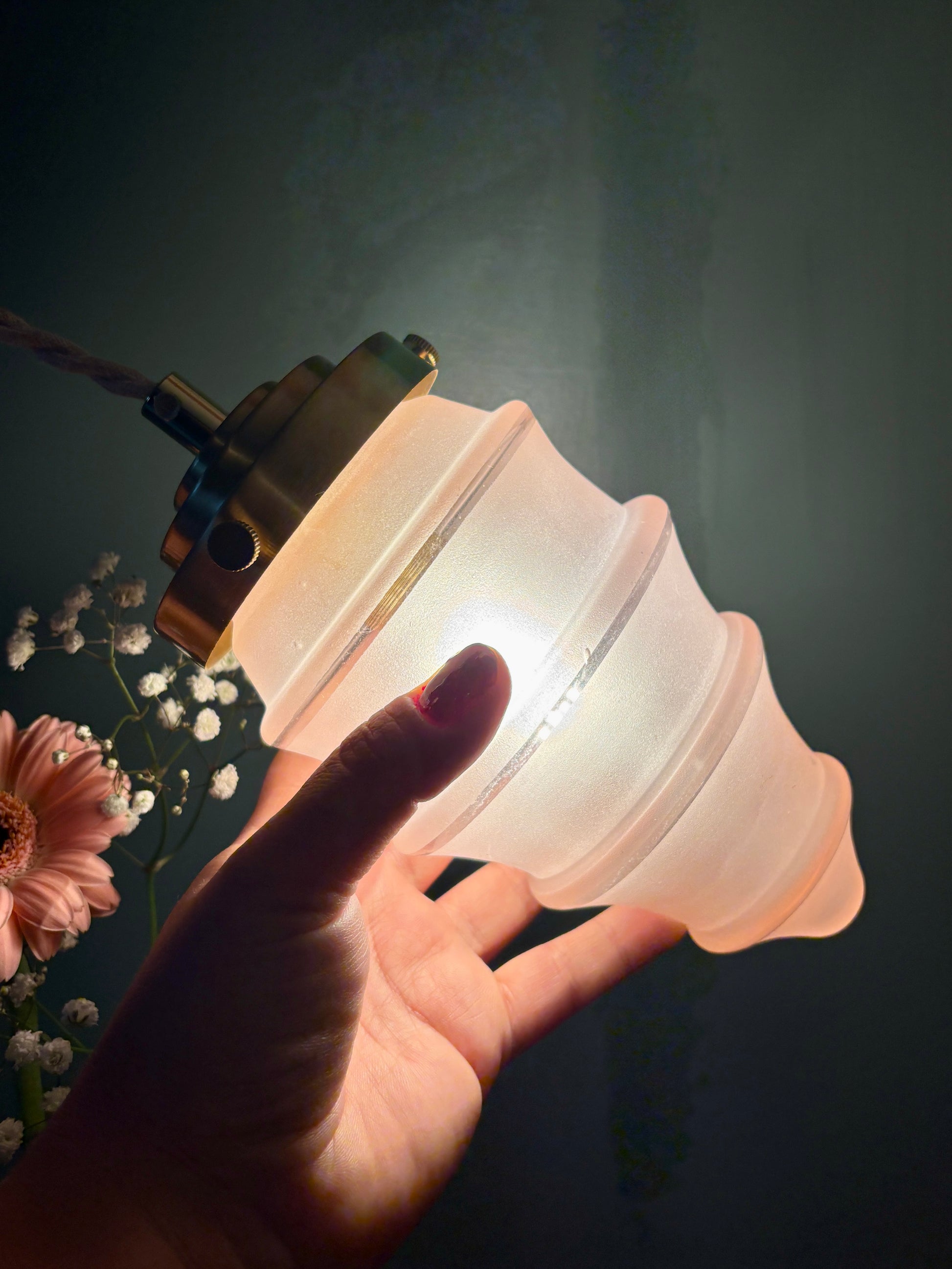 Jolie suspension avec globe vintage en verre dépoli rose