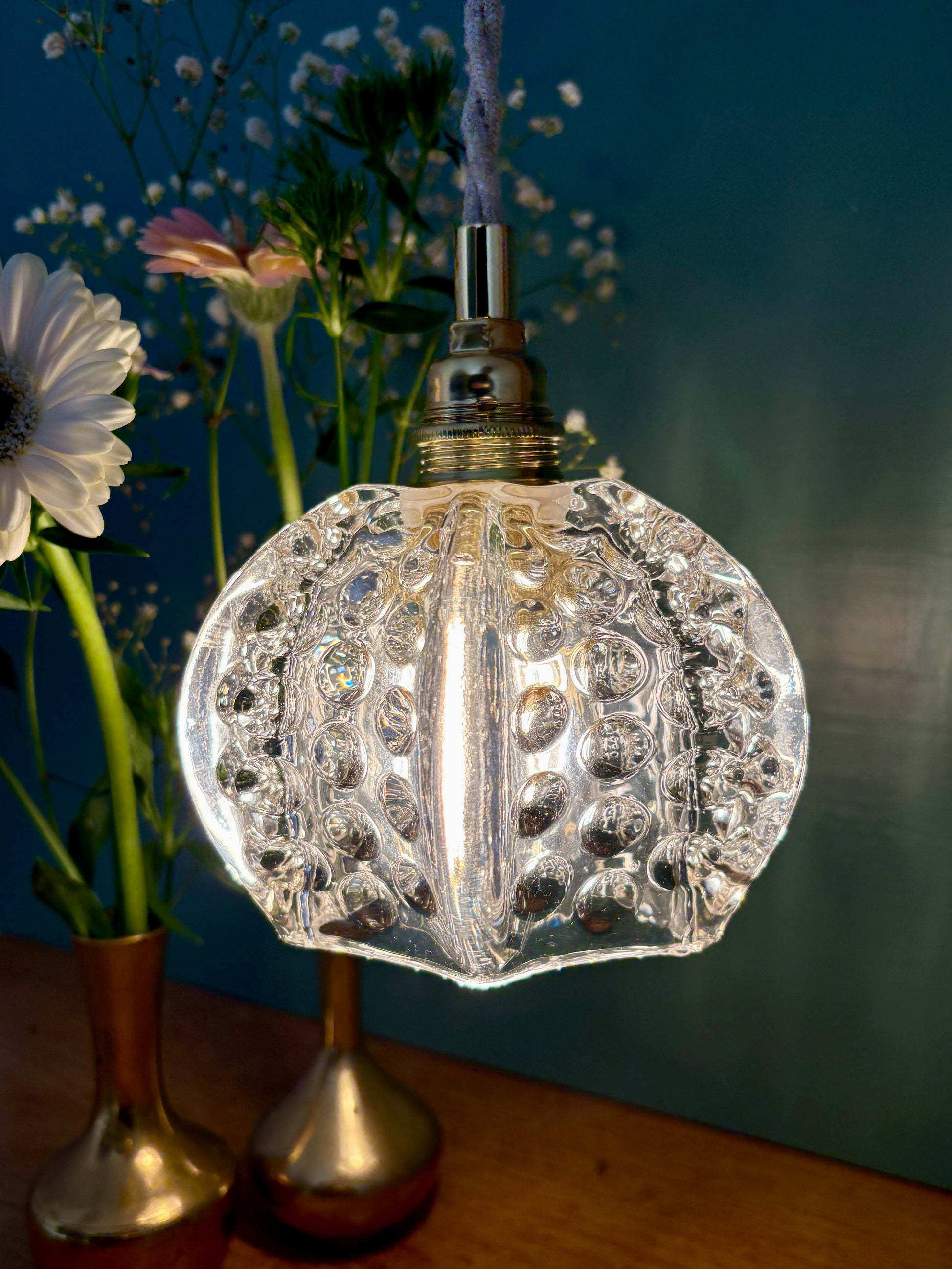 Douille e14 - ampoule non fournie - nos produits sont réalisés à partir de globes anciens, il se peut que ces derniers présentent quelques petites traces du temps.